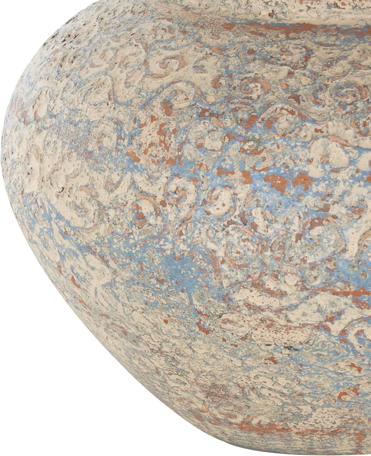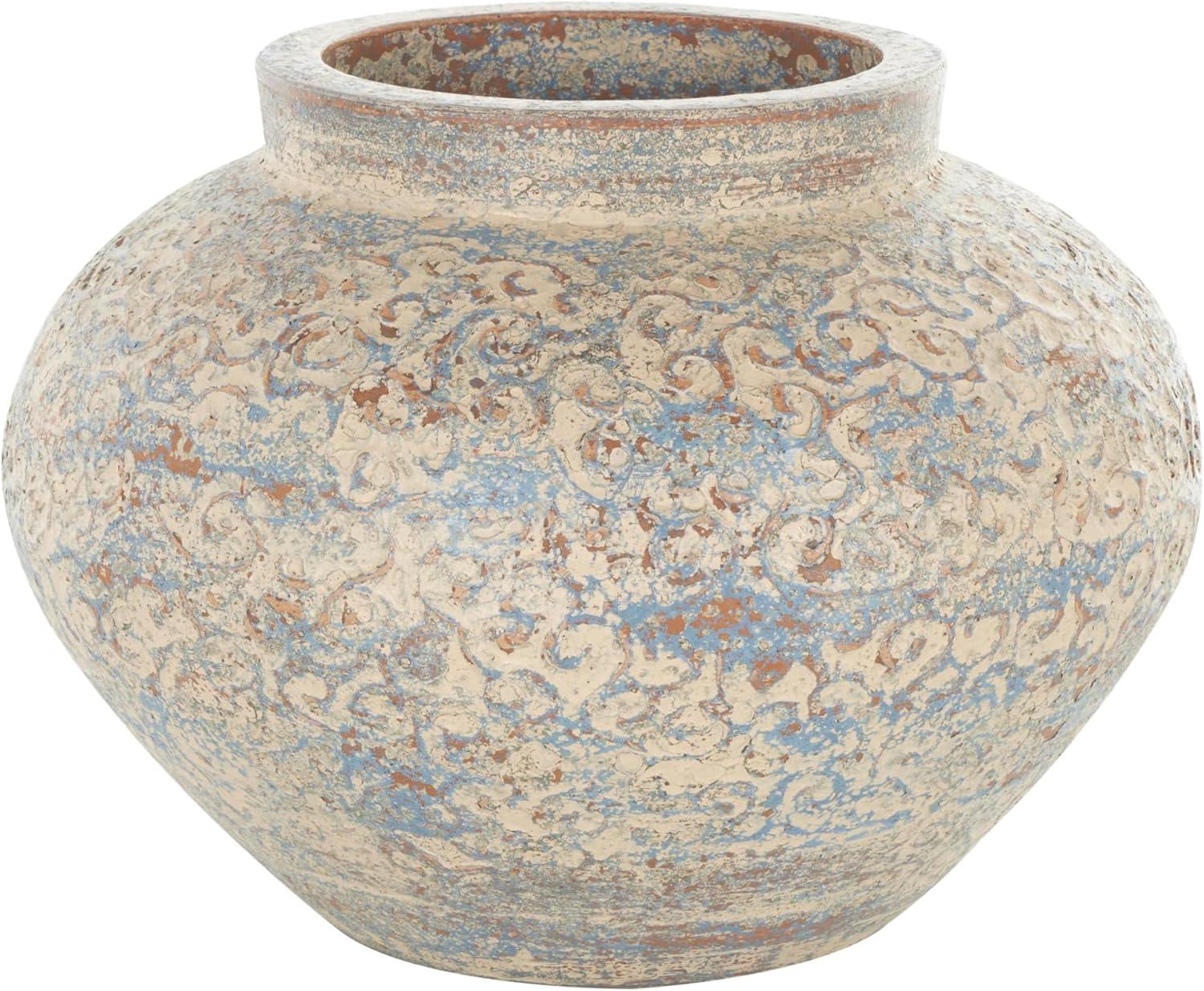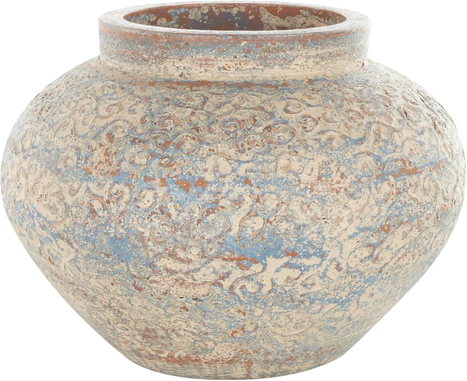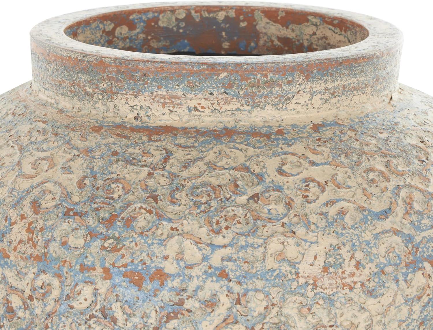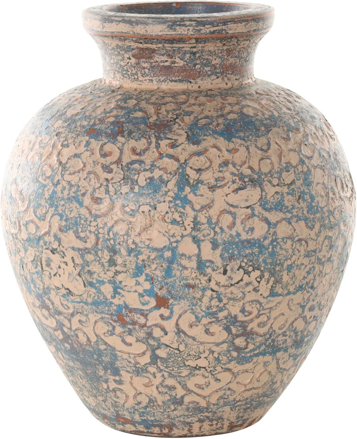 SCROLL ROUND VASE FOR HOME DÉCOR: An exceptional feature of this rustic vase is its distressed finish, which imparts a weathered and antique charm to the piece