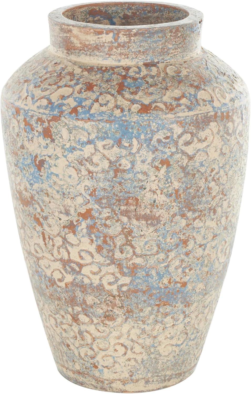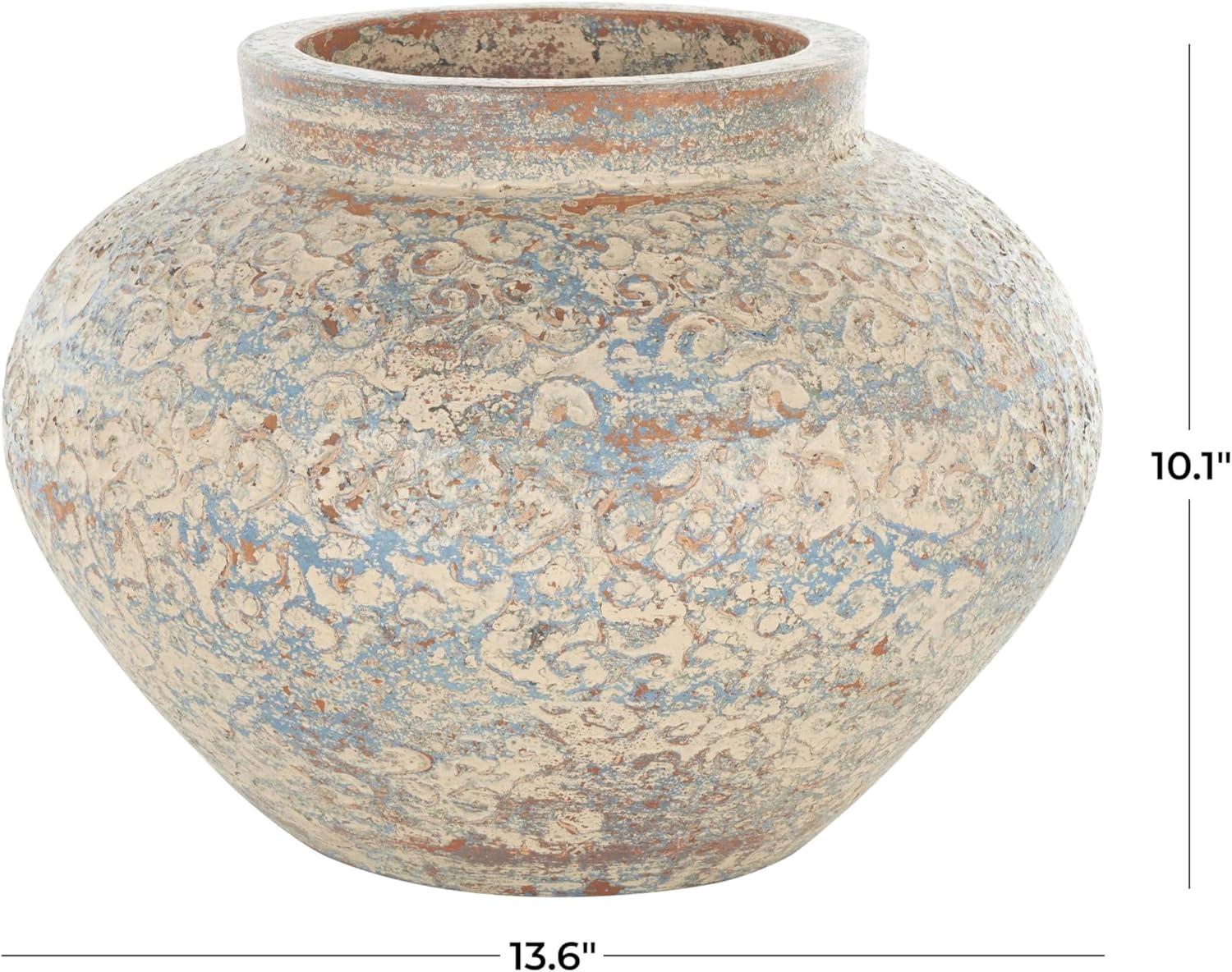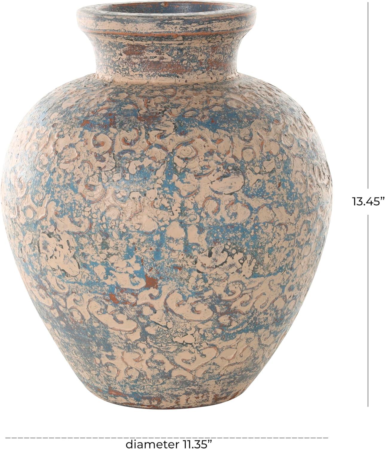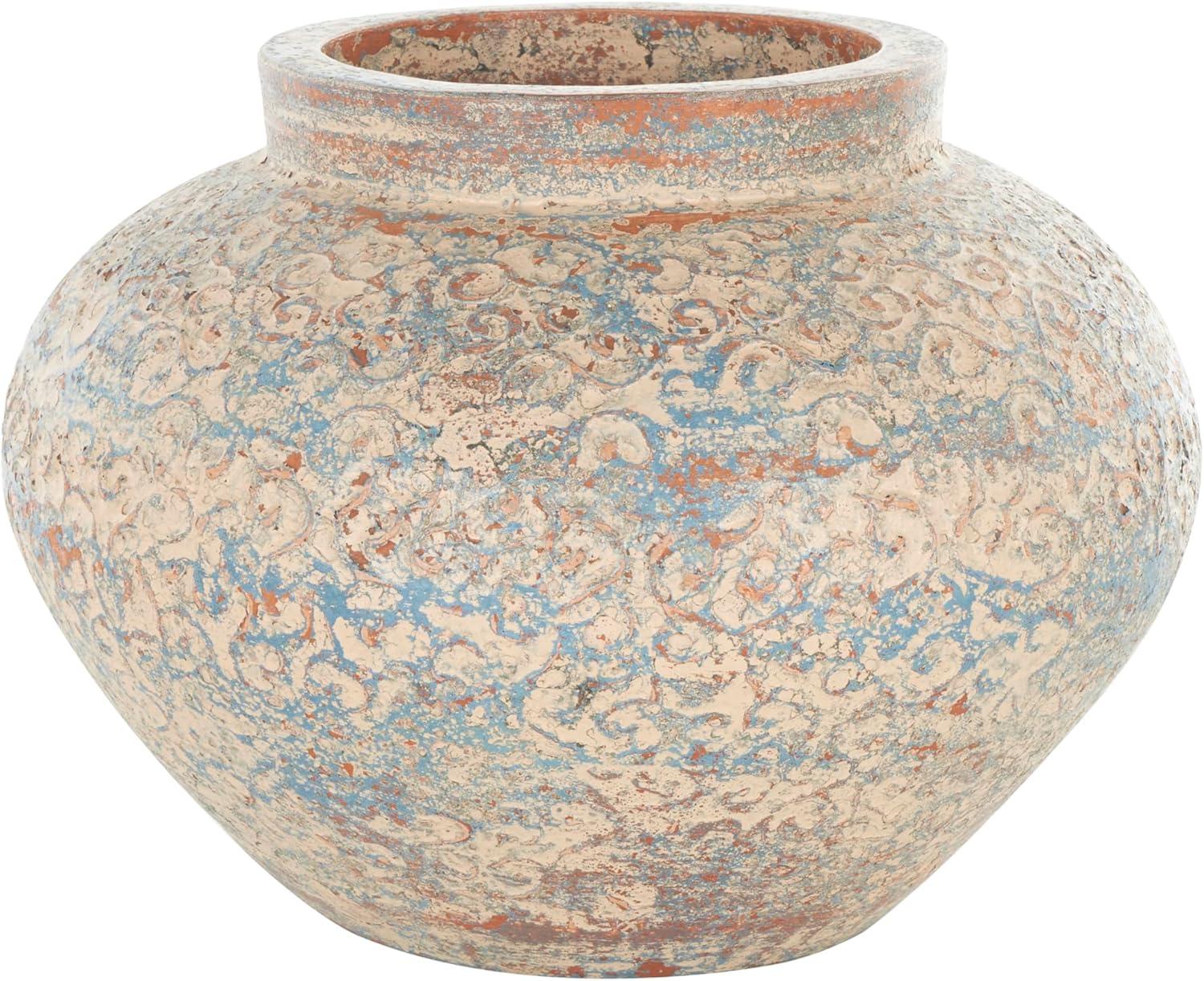 SCROLL ROUND VASE FOR HOME DÉCOR: An exceptional feature of this rustic vase is its distressed finish, which imparts a weathered and antique charm to the piece