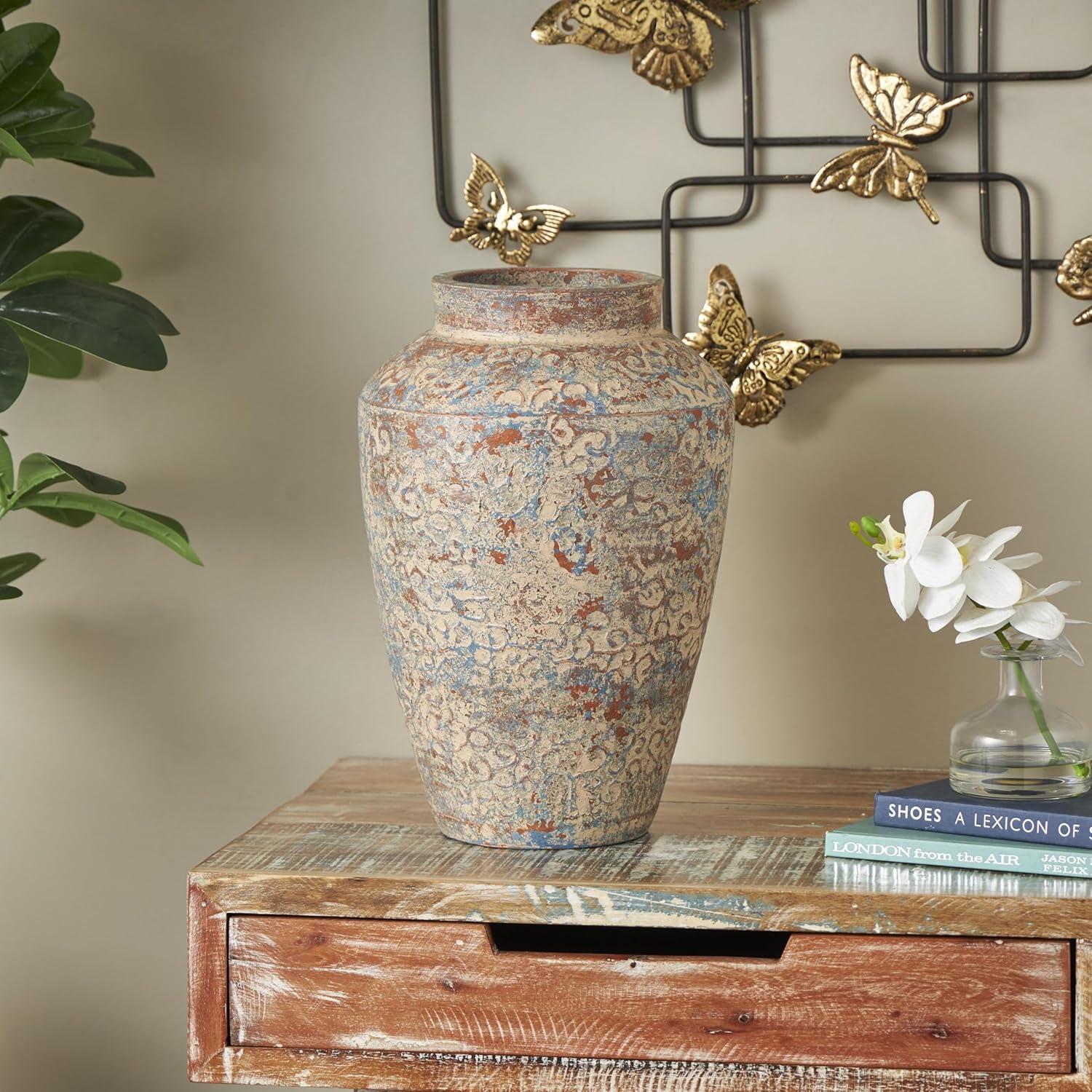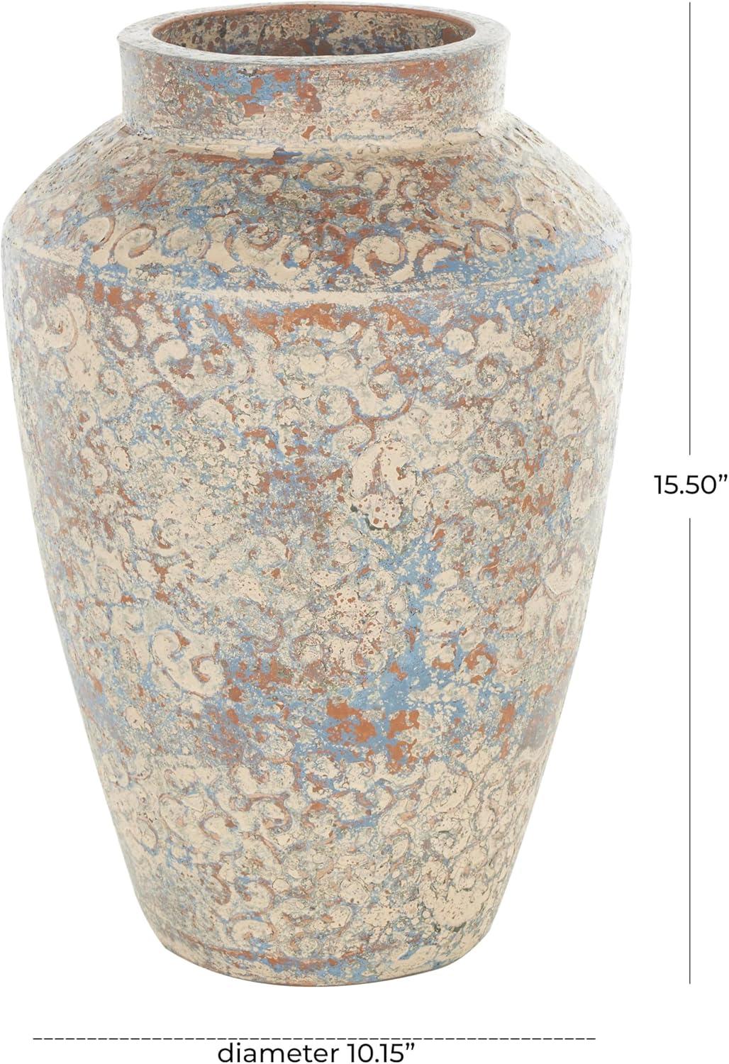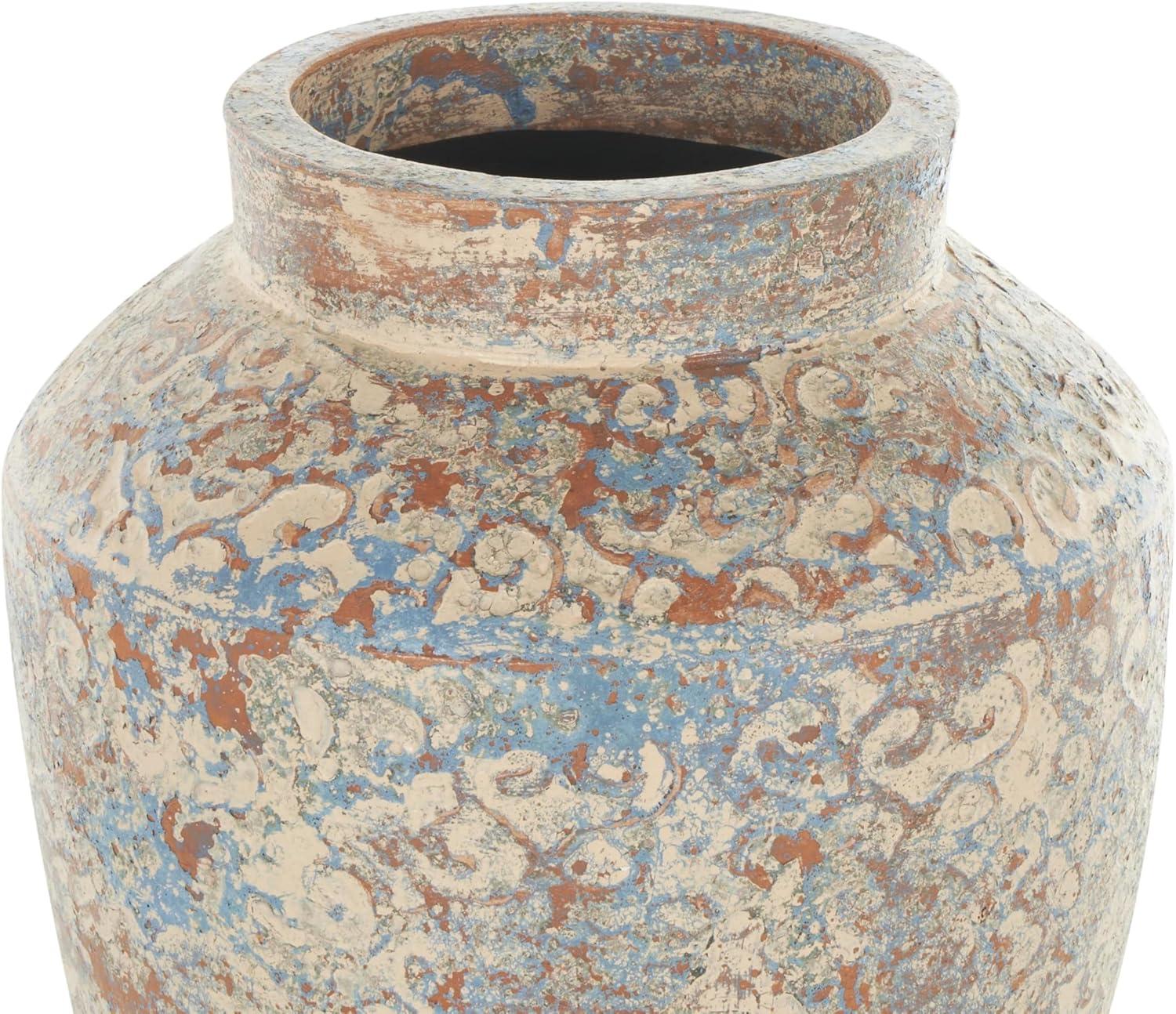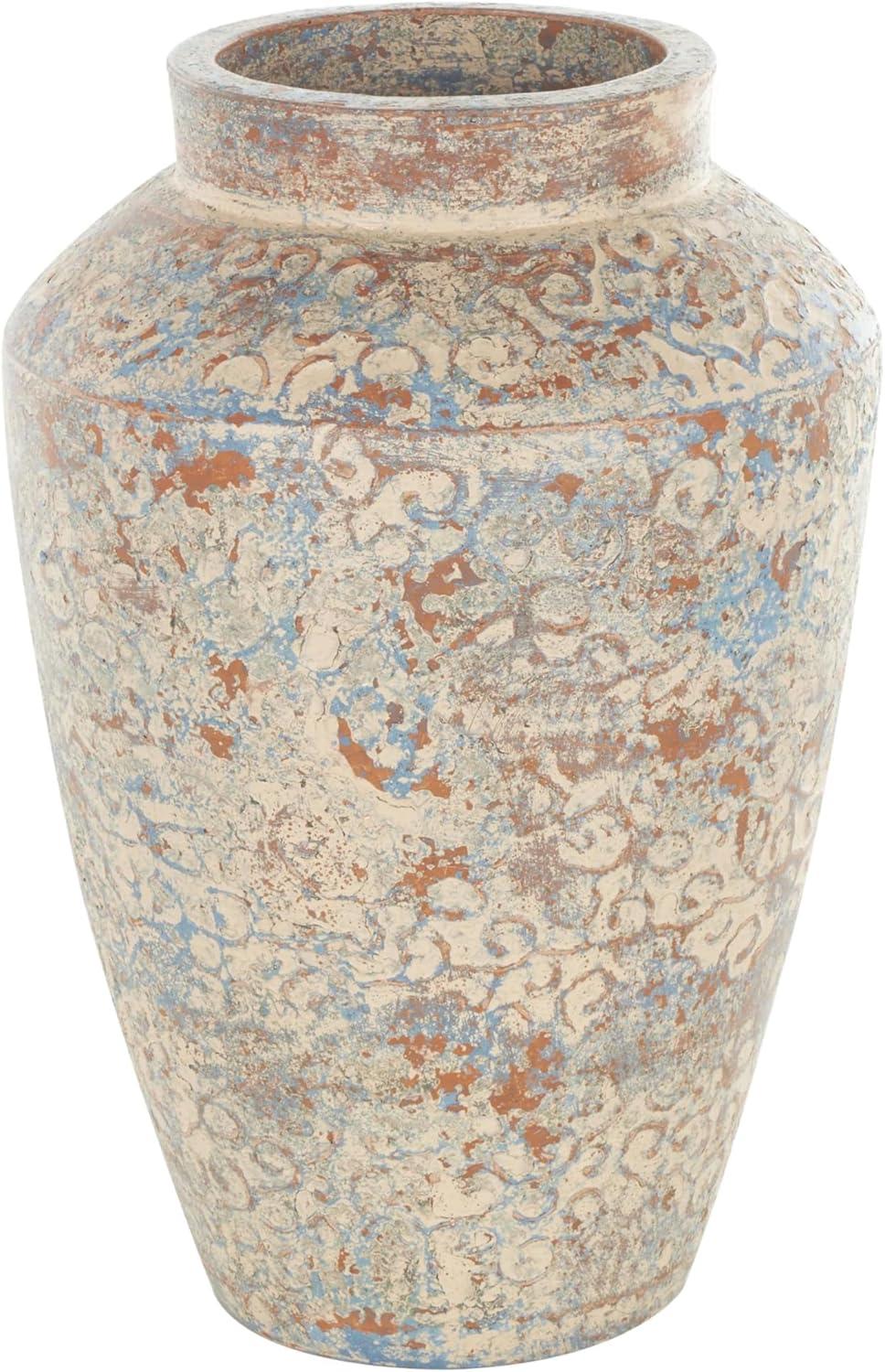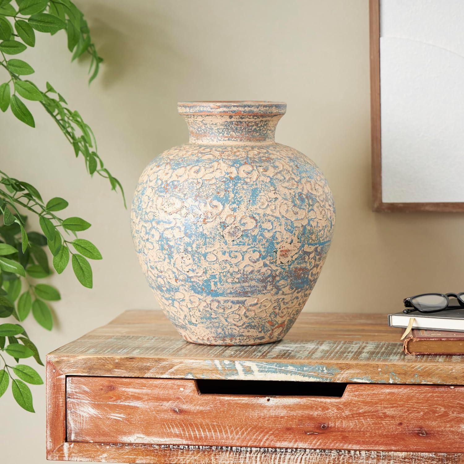 SCROLL ROUND VASE FOR HOME DÉCOR: An exceptional feature of this rustic vase is its distressed finish, which imparts a weathered and antique charm to the piece