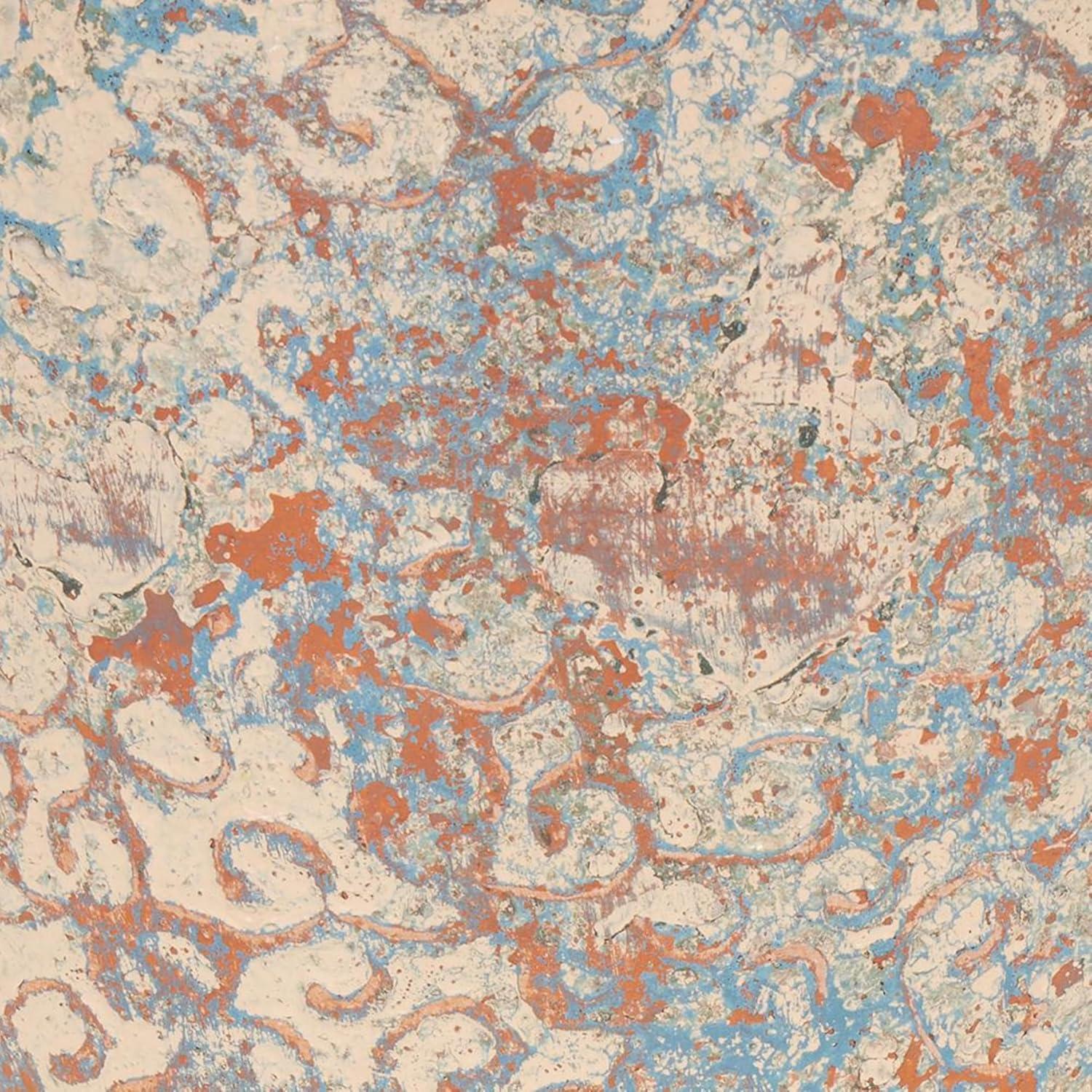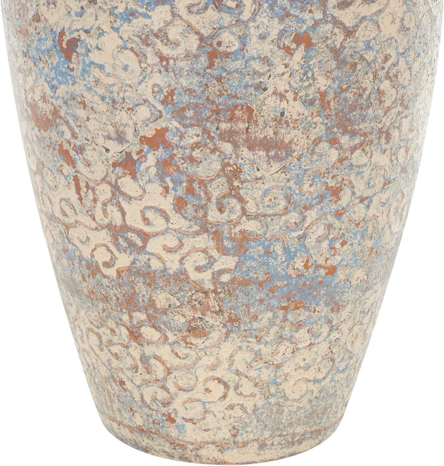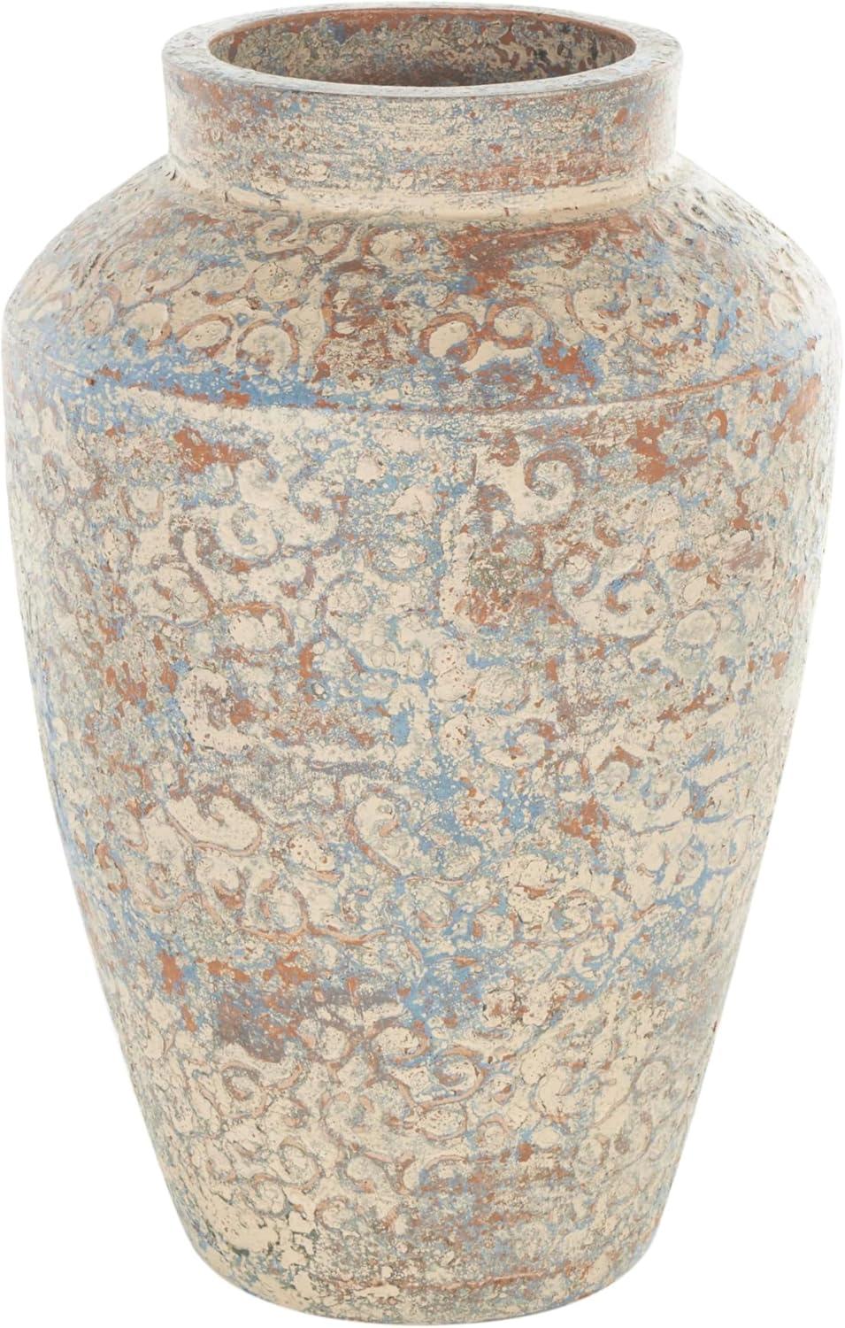 BEIGE AND BLUE VASE FOR FLOWERS: A beige floral vase that features hints of blue and red clay, for an antique and rustic charm