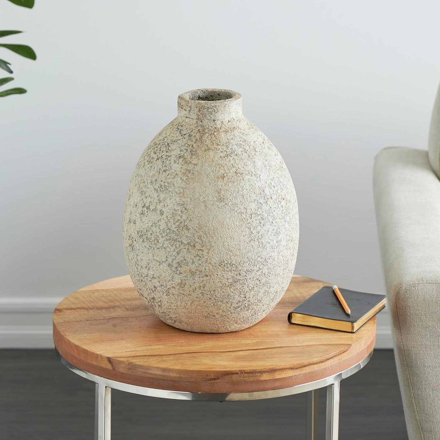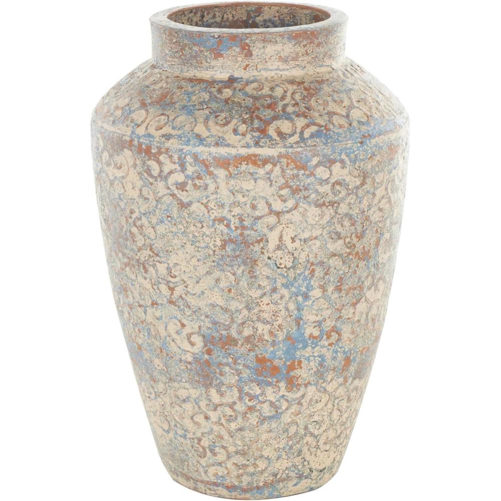 Adorn your mantle or dining table with this antique vase, filled with fresh floral or greenery, to create a timeless centerpiece that enhances your home decor. Designed with felt or rubber stoppers at the base that prevent scratching furniture and table tops, as well as sliding around. This item ships in 1 carton. Suitable for indoor use only. This item ships fully assembled in one piece. Made in Indonesia. This is a single beige colored vase. Farmhouse style. Vase has a 6.30 in mouth opening.