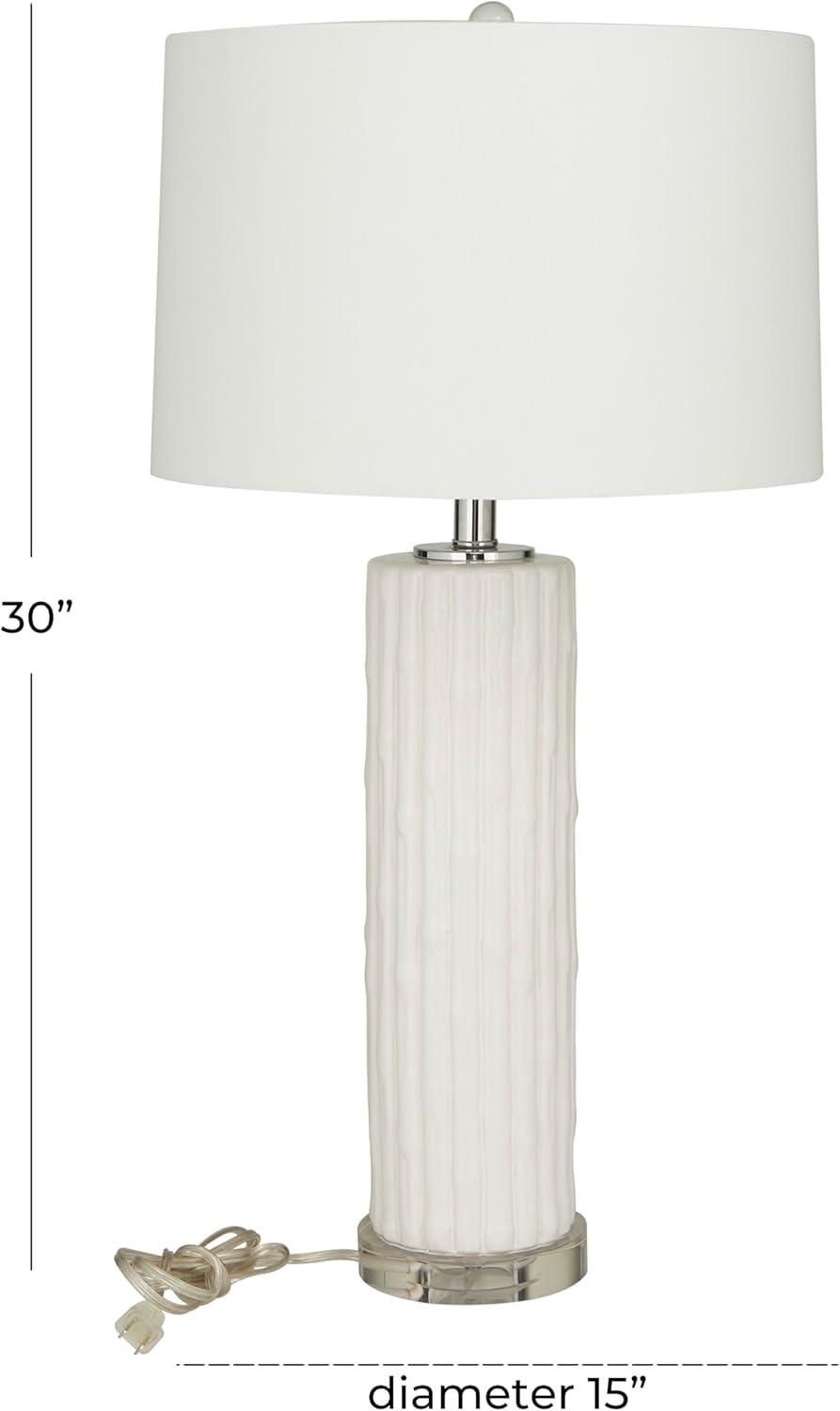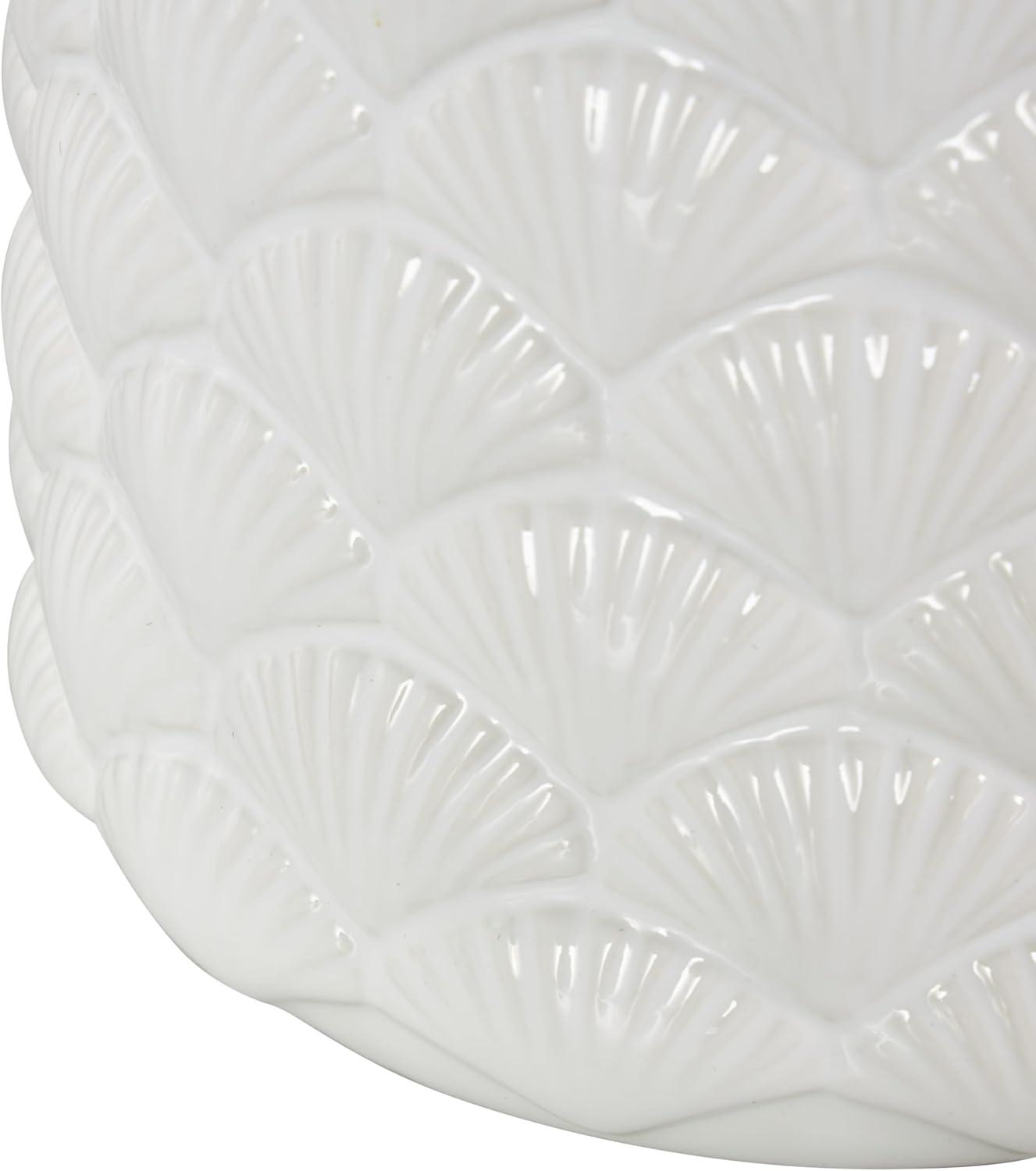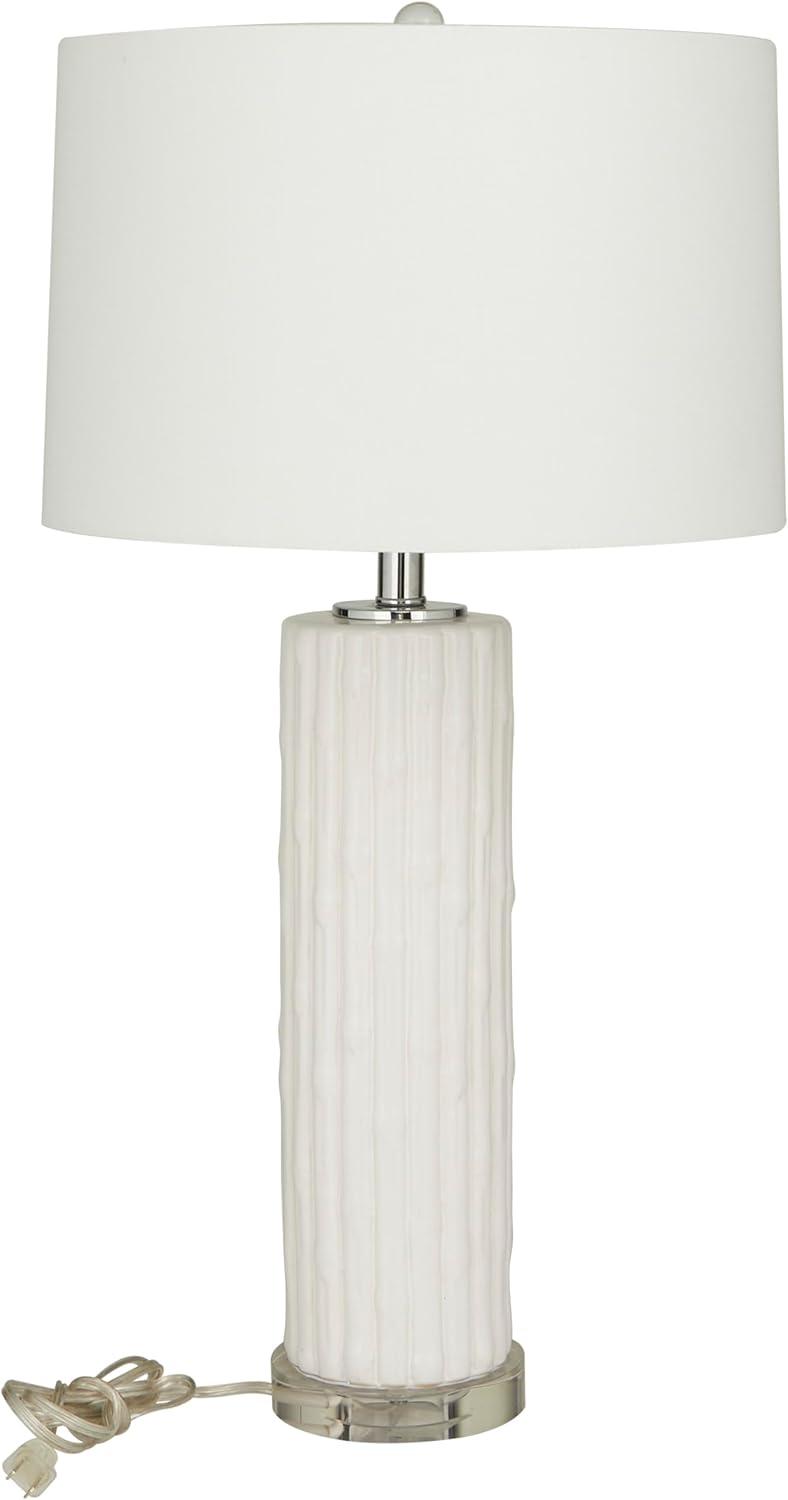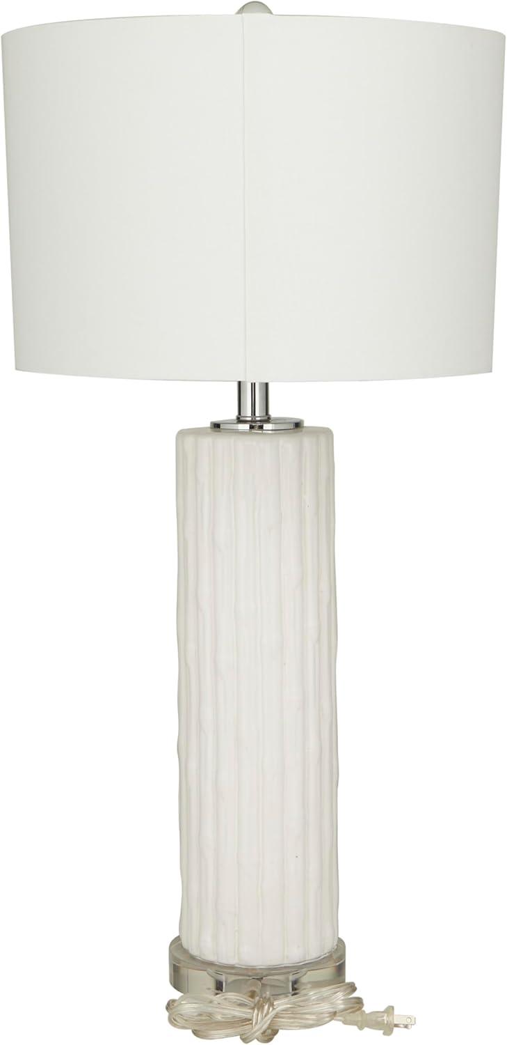 Coastal living room table lamp is masterfully crafted from high-quality ceramic, featuring delicately embedded seashells, and finished with a lustrous white glaze that captures the essence of seaside elegance. The shiny white accent lamp for table has a round shape, drum shade, and embedded shell patterns that complements various decor styles. Wipe clean with a dry cloth. The shell accent lamp is perfect for bringing light to coastal-themed living rooms or bedrooms. Requires 1 60W Type A E26/Medium (Standard) bulb. This item ships in 1 carton. Comes with a 77″ cord length. Suitable for indoor use only. This item ships fully assembled in one piece. Table lamp comes with a white drum shaped shade that measures 15 x 15 x 10 inches. Includes a rotary switch. This is a single white colored accent lamp. Coastal style.