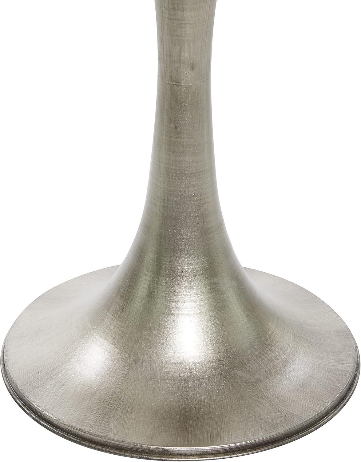 Bring a finishing touch to your home with an inviting appeal with this beautifully crafted accent table. A compact friendly table providing you with additional surface storage space any where in your home. This silver end table will make a stylish addition to any space, whether it's adorned with fresh cut flowers in a glass vase or positioned next to an armed upholstered chair. This item ships in 1 carton. Suitable for indoor use only. This item ships fully assembled in one piece. Maximum weight limit is 100 lbs. This is a single silver colored end table. Industrial style.