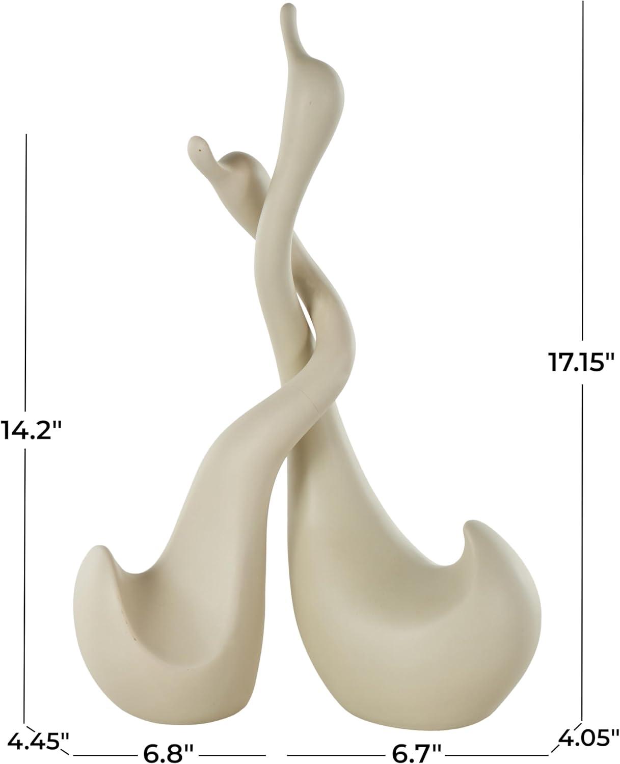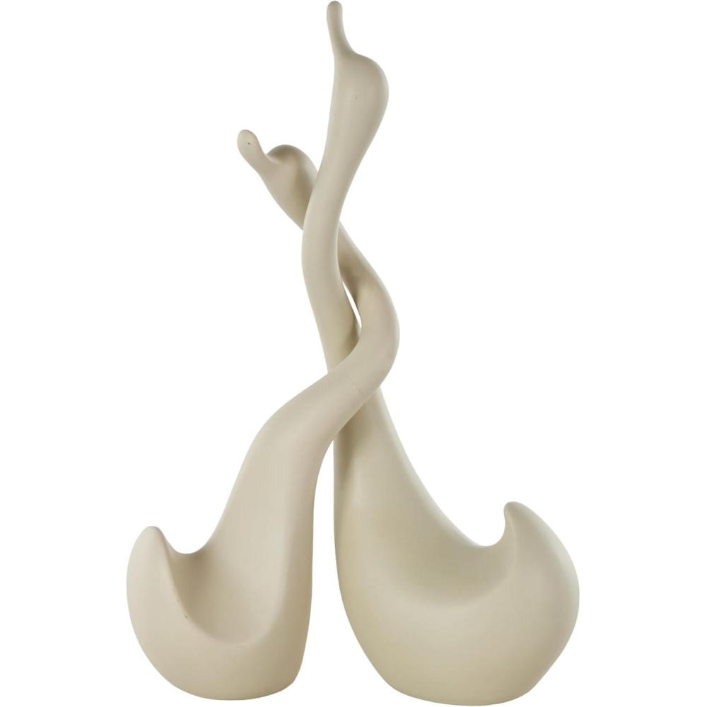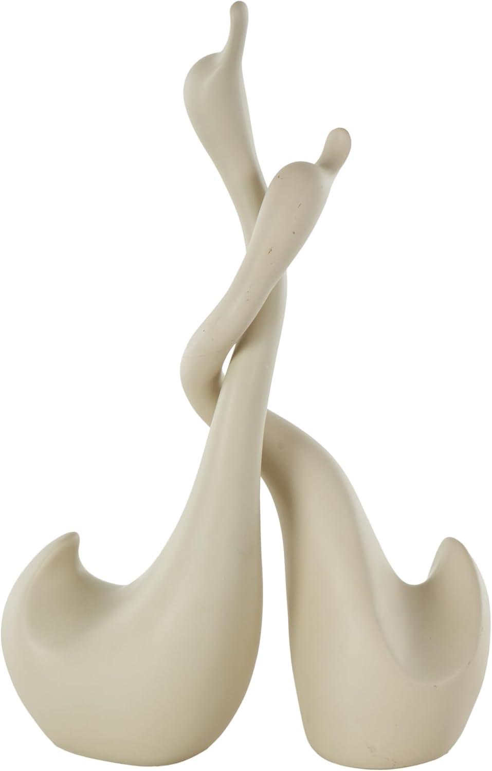This contemporary set of 2 accent statues is molded with ceramic and shaped with smooth lines and fine details to enhance its artistic appeal. This matte beige home decor figurines are shaped into graceful, intertwined swans, symbolizing elegance, and unity. Wipe clean with a dry cloth. The swan set of 2 home decor statues can be an elegant addition to living rooms or offices. Designed with felt or rubber stoppers at the base that prevent scratching furniture and table tops, as well as sliding around. This item ships in 1 carton. Please note that this item is for decorative use only. Suitable for indoor use only. This item ships fully assembled in one piece. This beige colored ceramic statue comes as a set of 2. Contemporary style.