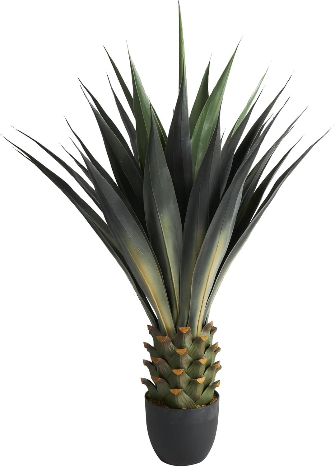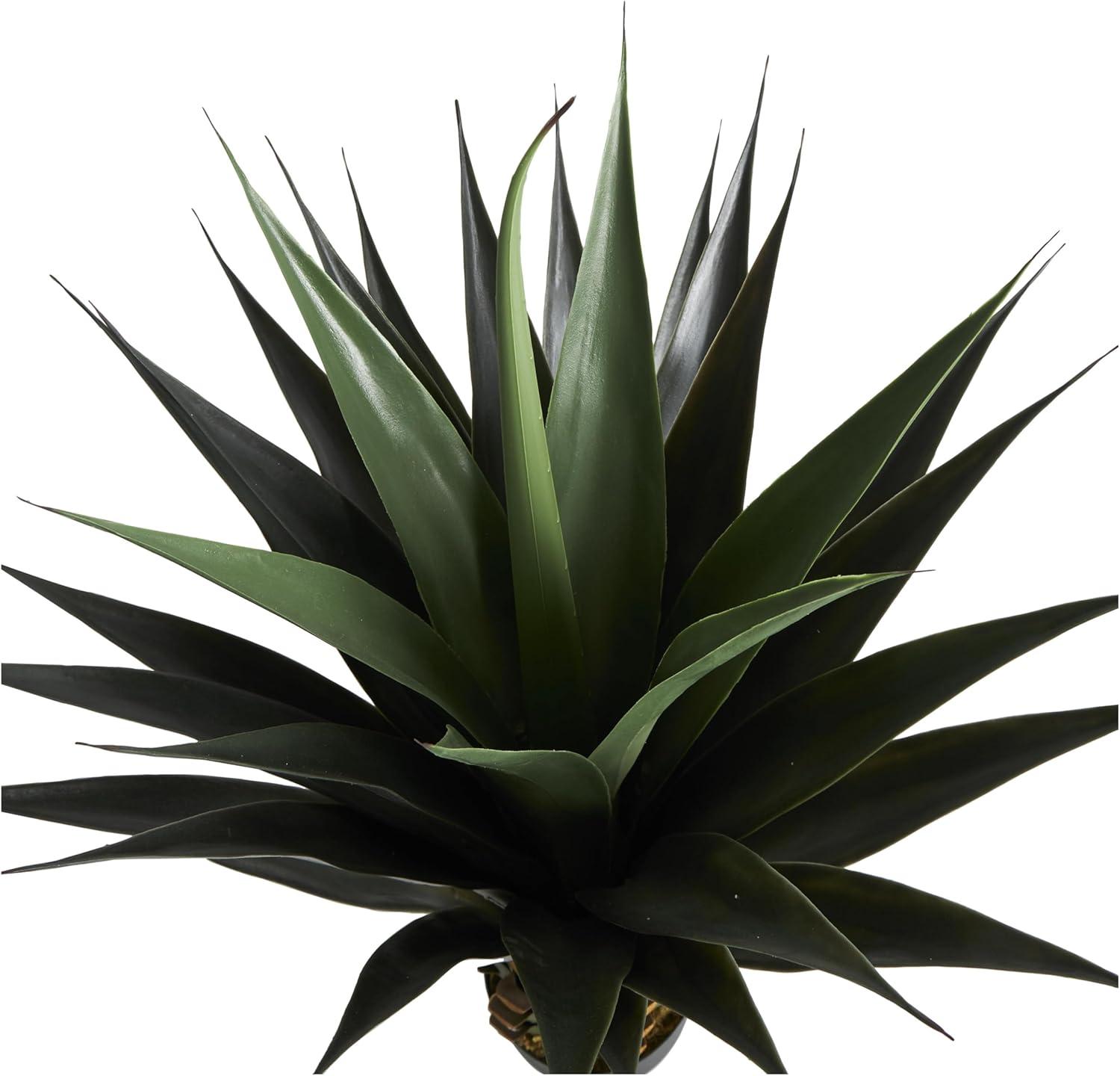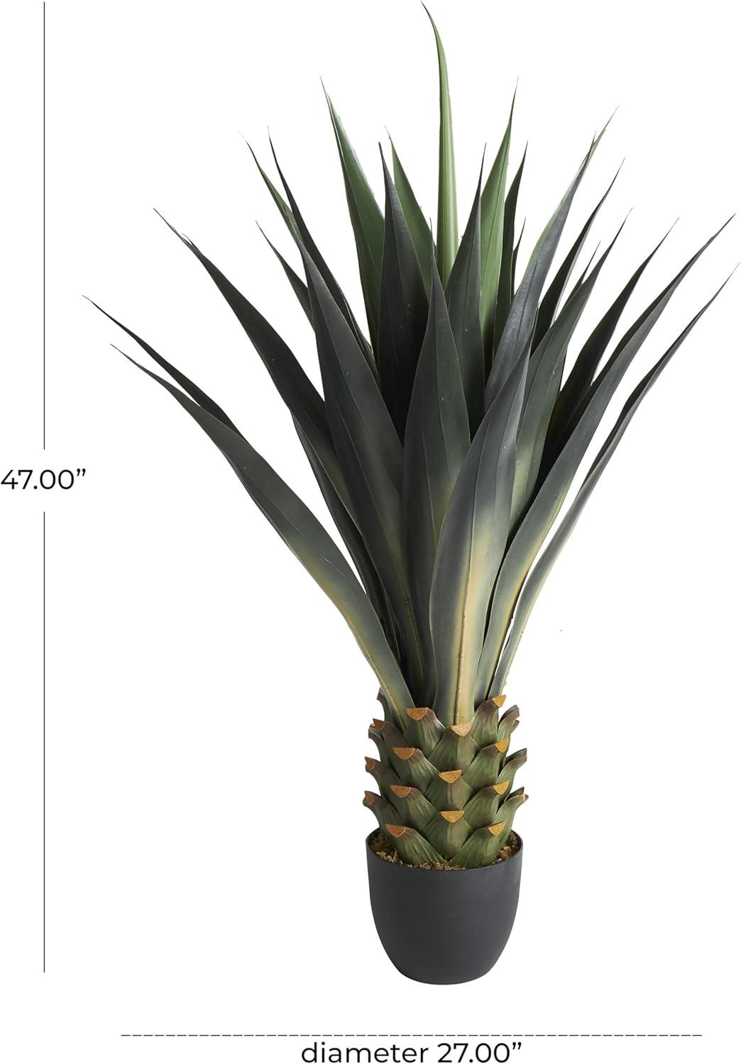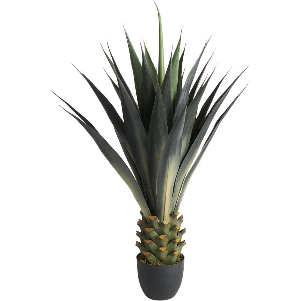 Faux plant decor is shaped and crafted from plastic, with intricate details to give it a realistic design, then secured in a black pot for support and structure. Indoor fake potted plant comes in a traditional agave plant shape with a round tapered pot and added moss for style. Wipe clean with a dry cloth. Give your indoor space a refreshing look with this artificial potted plant that adds a pop of color to your space and can easily fill empty corner spaces and bring life to your entryway. Designed with felt or rubber stoppers at the base that prevent scratching furniture and table tops, as well as sliding around. This item ships in 1 carton. Faux foliage artificial tree makes a great gift for any occasion. Suitable for indoor use only. This item ships fully assembled in one piece. This is a single green colored fake tree. Traditional style.