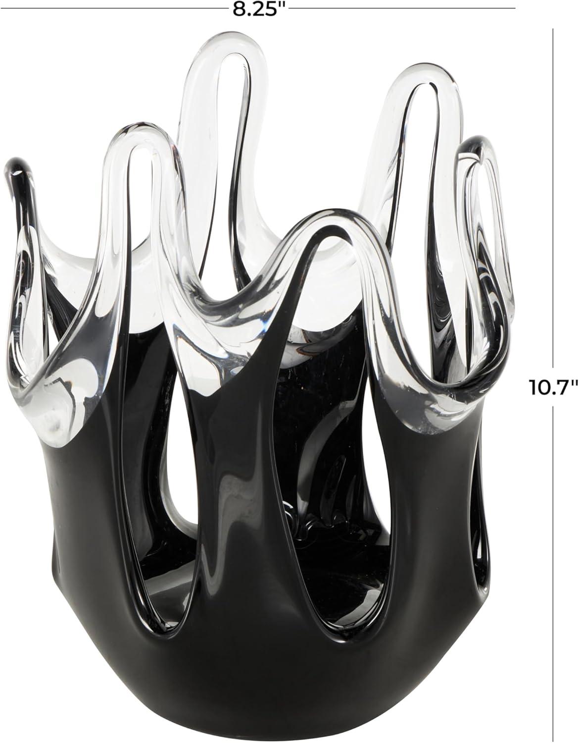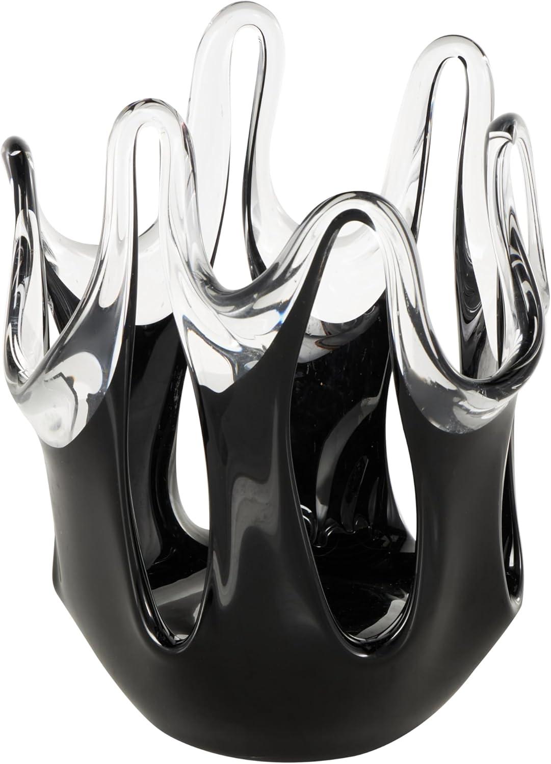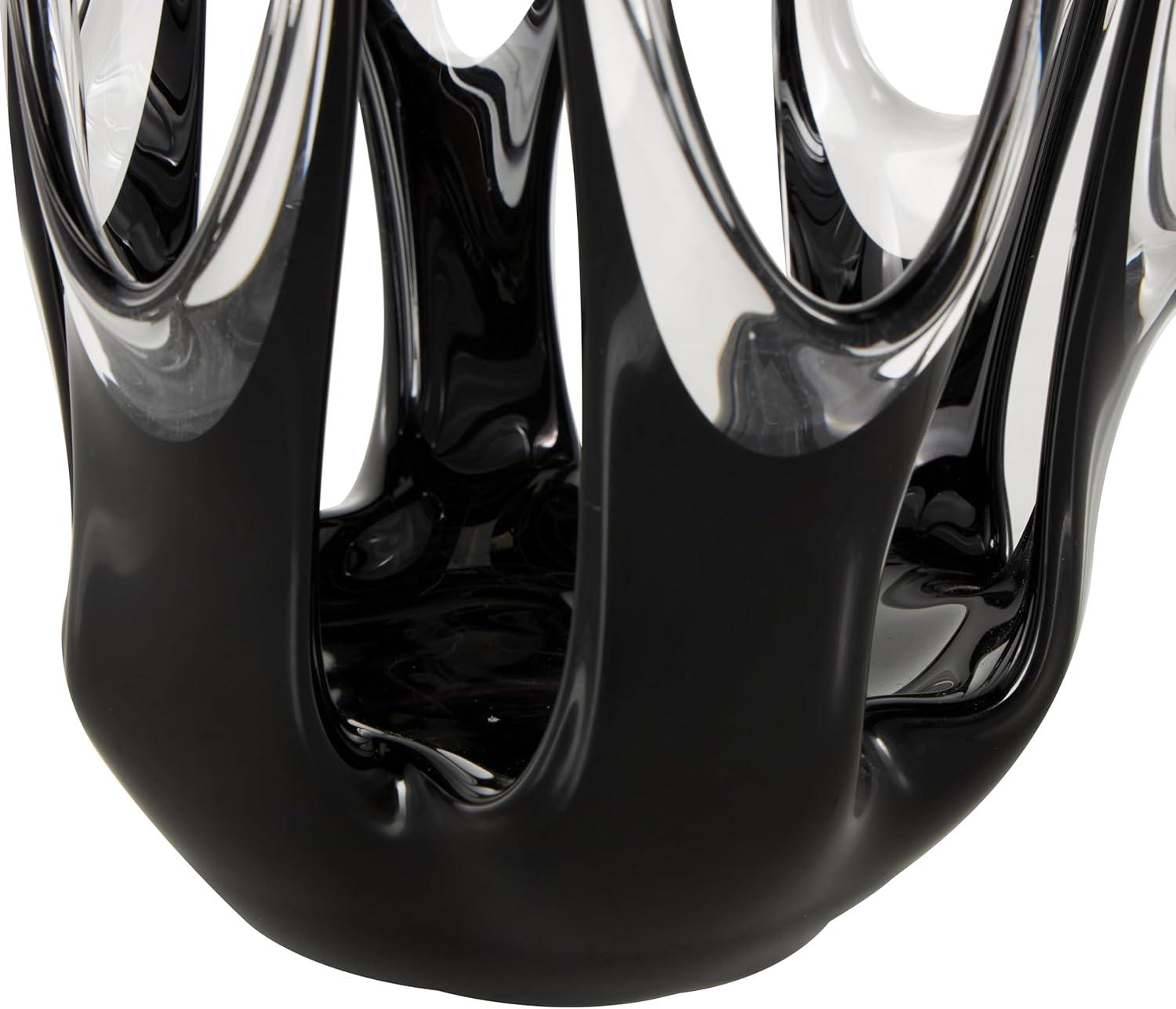Deco 79 Glass Abstract Decorative Vase Ombre Centerpiece Vase with Wavy Oval Cutouts, Flower Vase for Home Decoration 9″ x 8″ x 12″, Orange(Black)