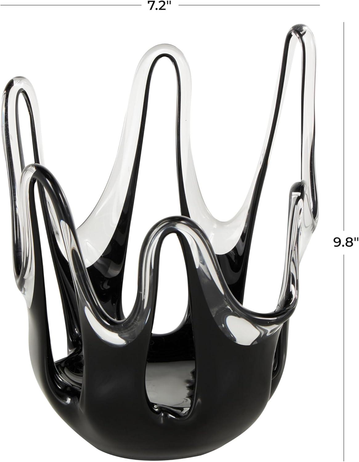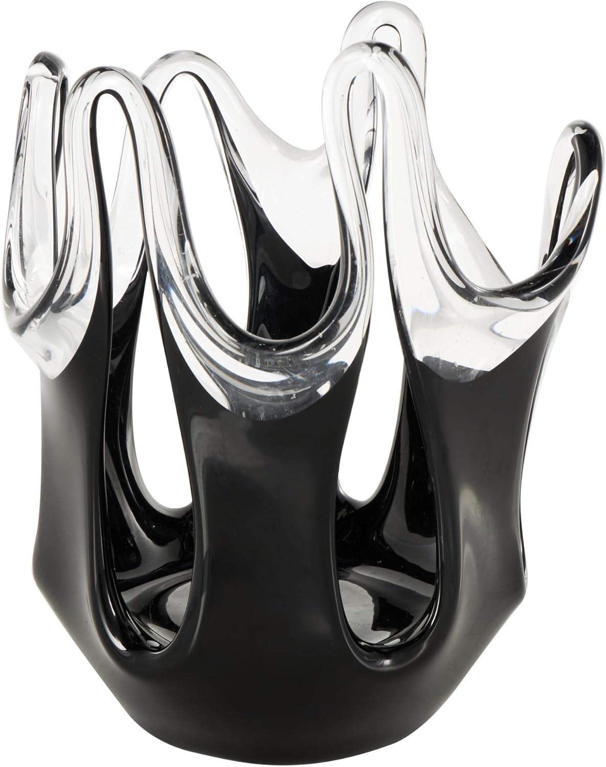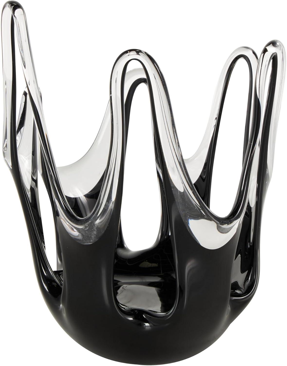 Deco 79 Glass Abstract Decorative Vase Ombre Centerpiece Vase with Wavy Oval Cutouts, Flower Vase for Home Decoration 9″ x 8″ x 12″, Orange(Black)