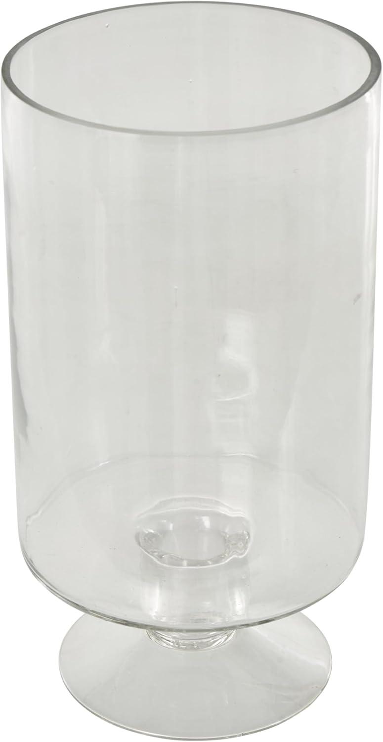 Expertly crafted, the modern candlestand features molded blown glass to create a stunning visual piece. The polished clear candle holder has a tall cylindrical shape and elevated round base that adds a touch of refinement to any decor. Spot clean. The clear candle holder is perfect for enhancing the beauty of your living room coffee table or mantle, to create a warm and inviting aesthetic. Designed with felt or rubber stoppers at the base that prevent scratching furniture and table tops, as well as sliding around. Can hold 1 wax candle candle, not included. This item ships in 1 carton. Glass candle holder makes a great gift for any occasion. Suitable for indoor use only. This item ships fully assembled in one piece. Made in India. This is a single clear colored hurricane candle holder. Modern style.