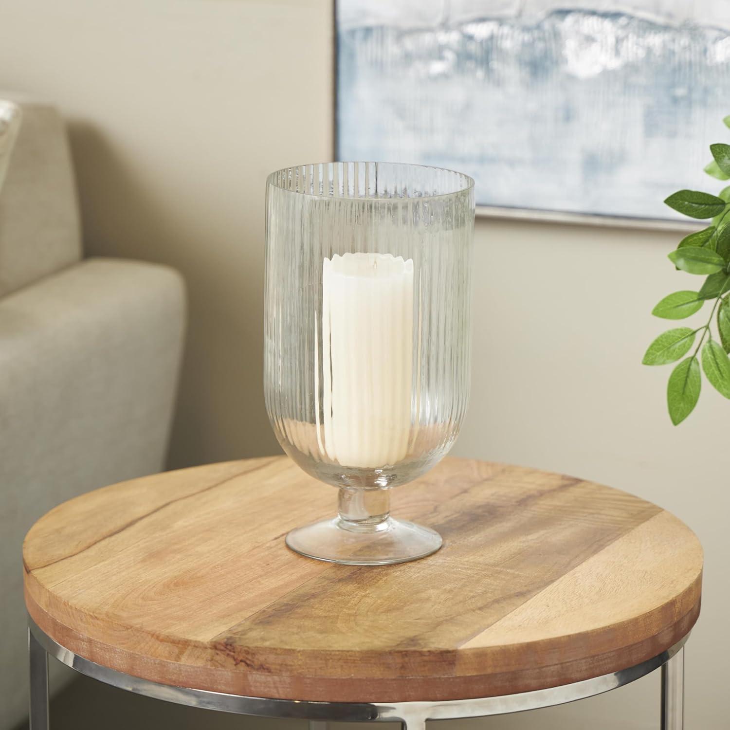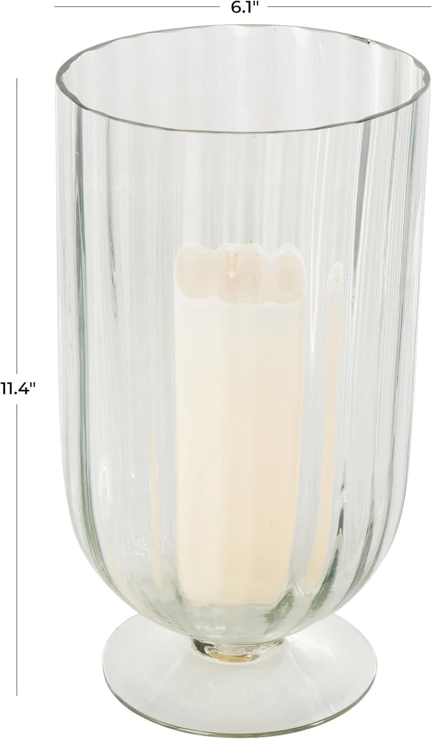 Deco 79 Glass Decorative Candle Holder Ribbed Candle Stand, Candlestick Holder 6" x 6" x 8", Clear(6.1" x 6.1" x 11.4")