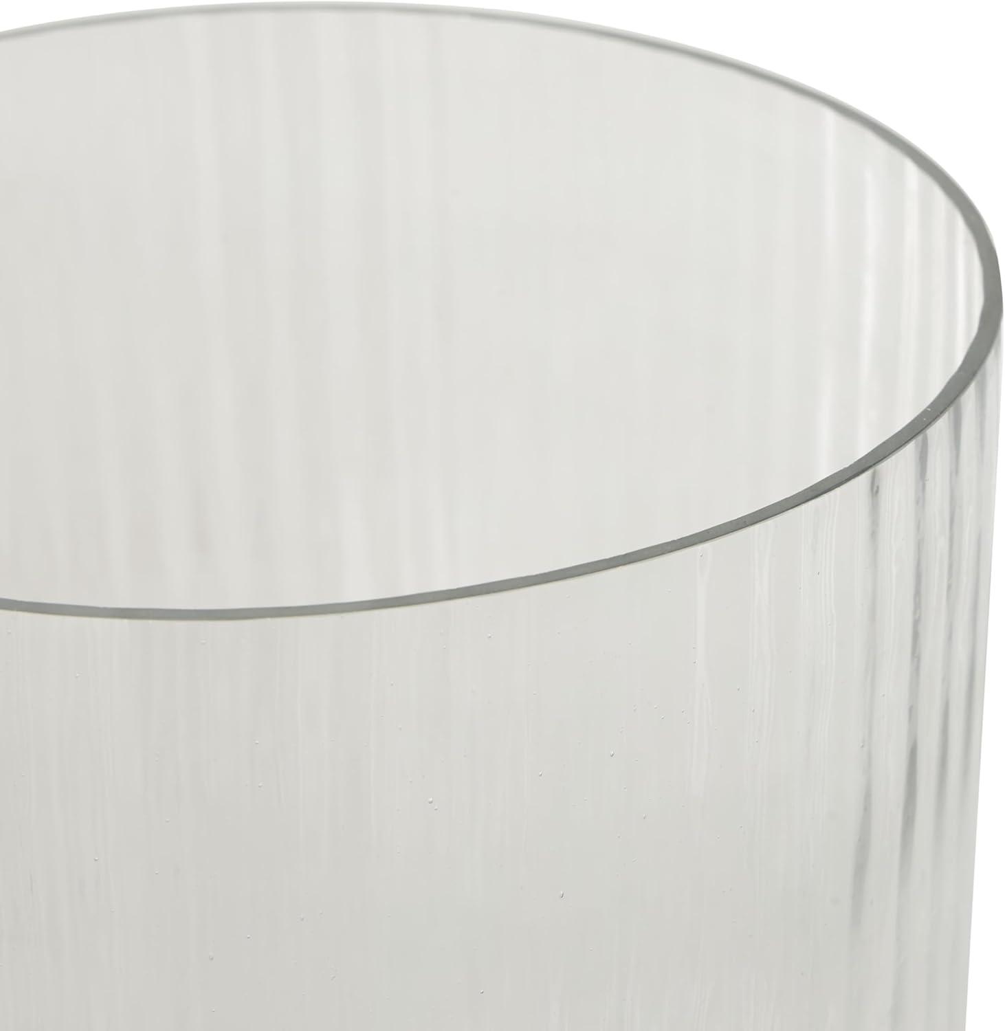 This modern candle holder for home decor has been molded from blow glass with ribbed body, showcasing its fine craftsmanship. With its round shape, these polished clear candle holders for centerpiece adds a touch of elegance to any space it graces. Wipe clean with a dry cloth. This clear candle stand is versatile enough to enhance any room's decor, be it your living room, dining area, or bedroom. Designed with felt or rubber stoppers at the base that prevent scratching furniture and table tops, as well as sliding around. Can hold 1 pillar candle, not included. This item ships in 1 carton. Suitable for indoor use only. This item ships fully assembled in one piece. Made in India. This is a single clear colored candle stand. Modern style. Vase has a 5.50 in mouth opening.