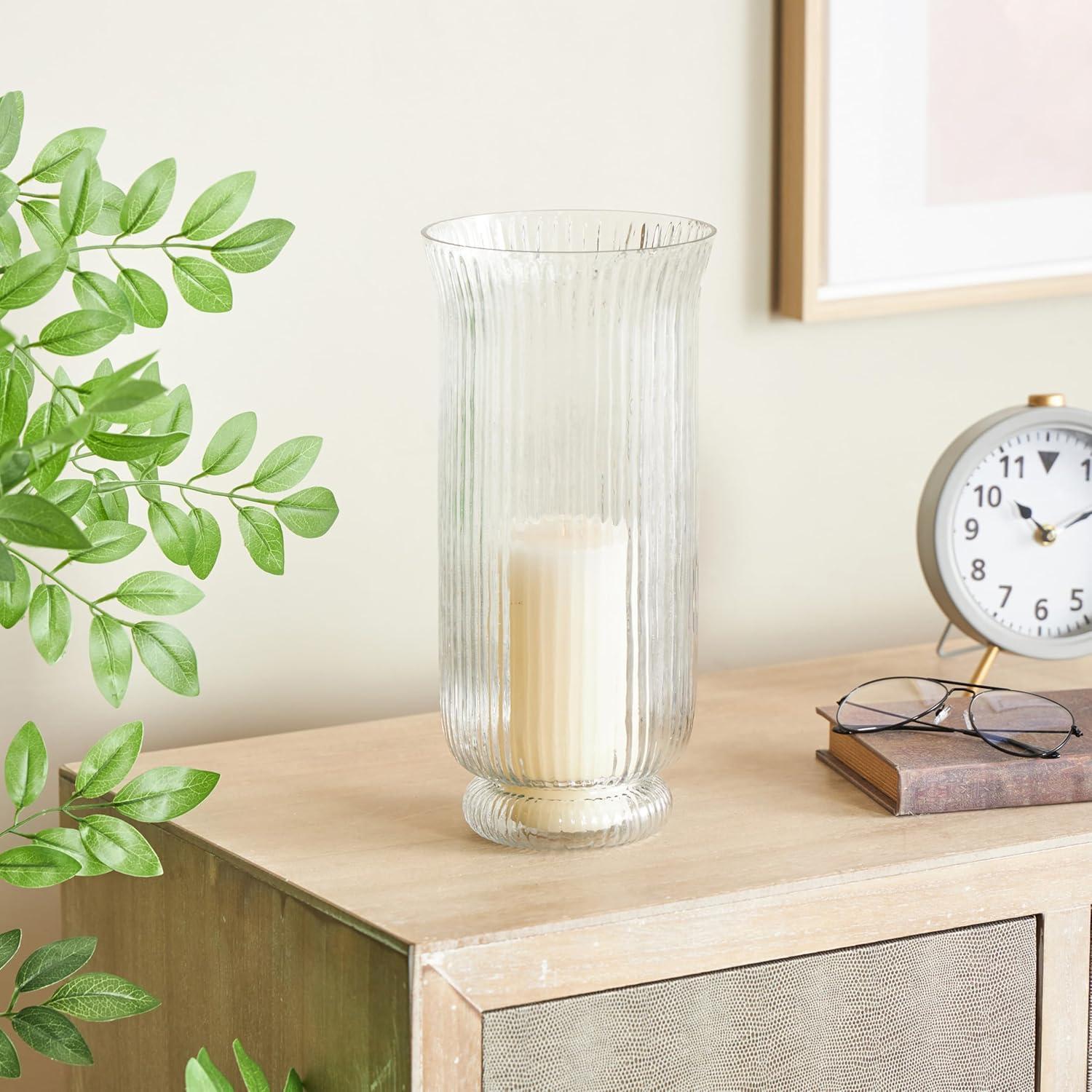Deco 79 Glass Decorative Candle Holder Ribbed Candle Stand, Candlestick Holder 6" x 6" x 8", Clear(6" x 6" x 13")