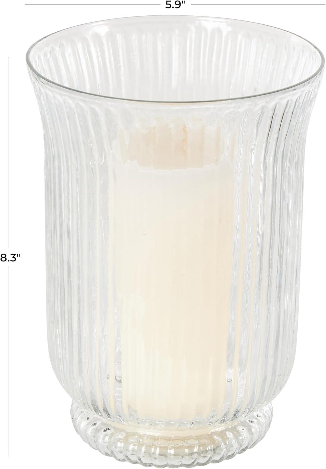 Deco 79 Glass Decorative Candle Holder Ribbed Candle Stand, Candlestick Holder 6" x 6" x 8", Clear(6" x 6" x 8")