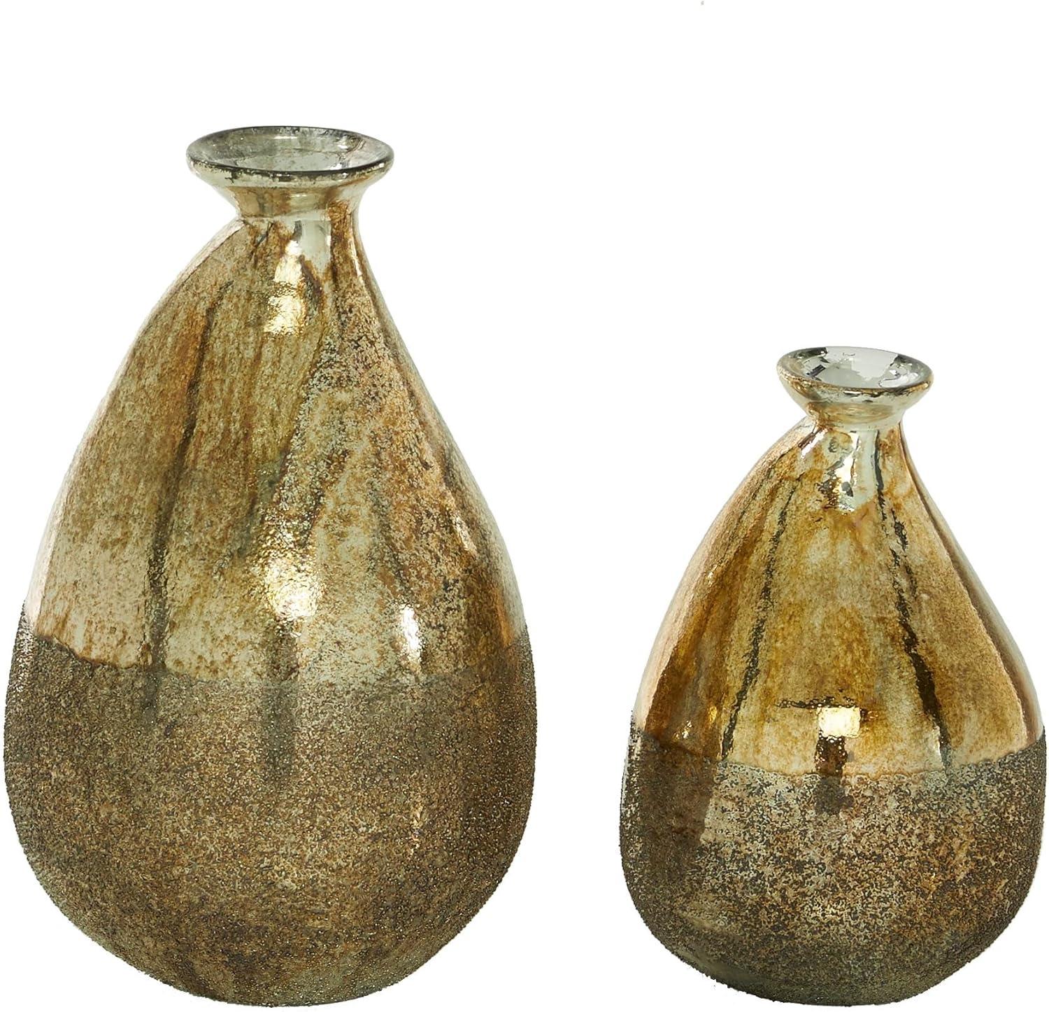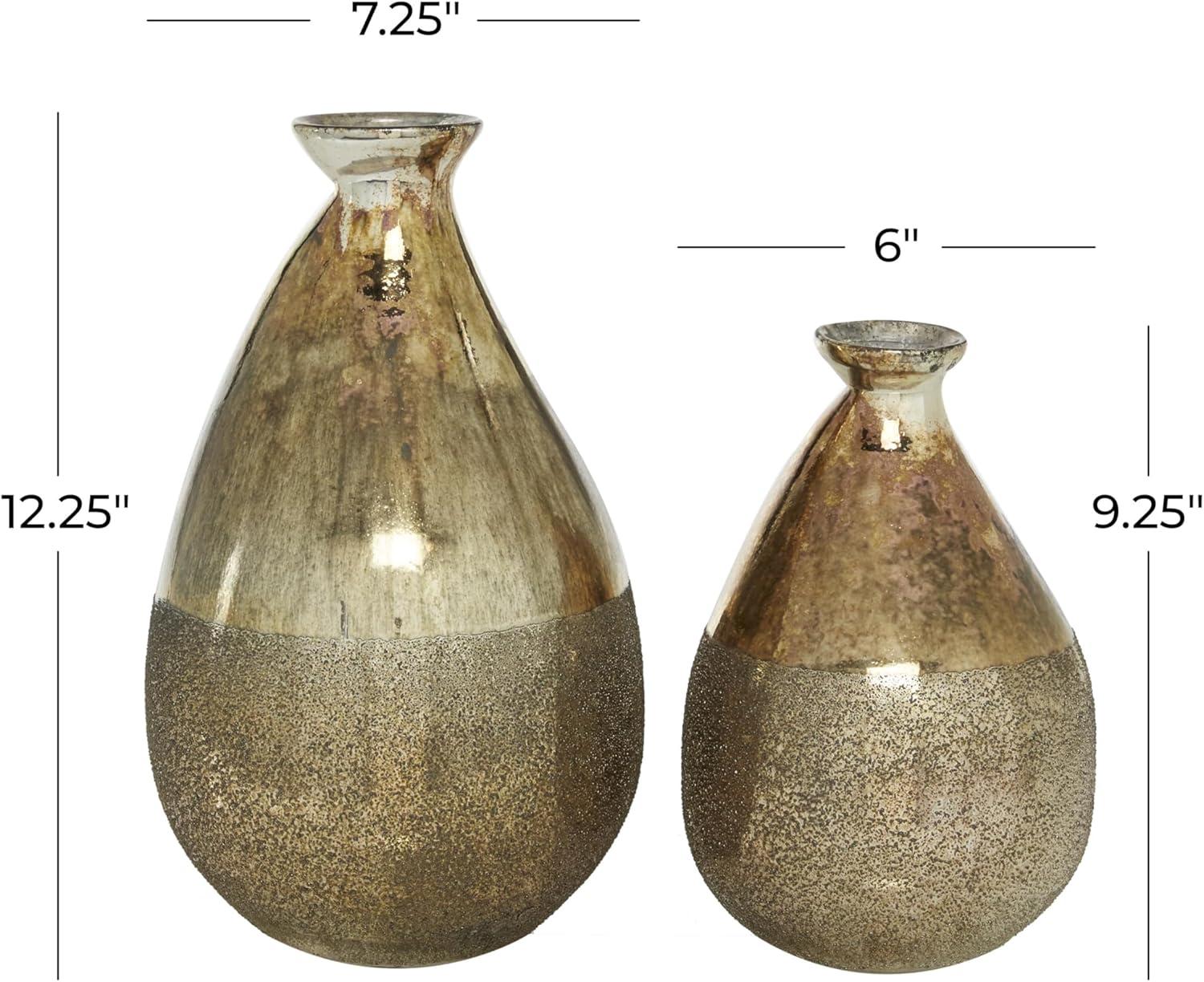 Deco 79 Glass Decorative Vase Blown Centerpiece Vases, Set of 2 Flower Vases for Home Decoration 12", 9"H, Gold(Gold)