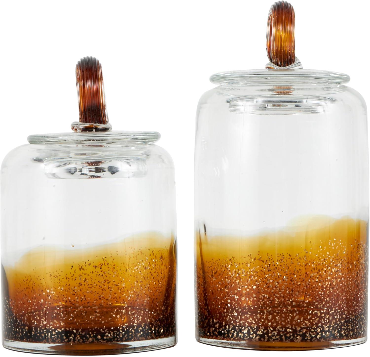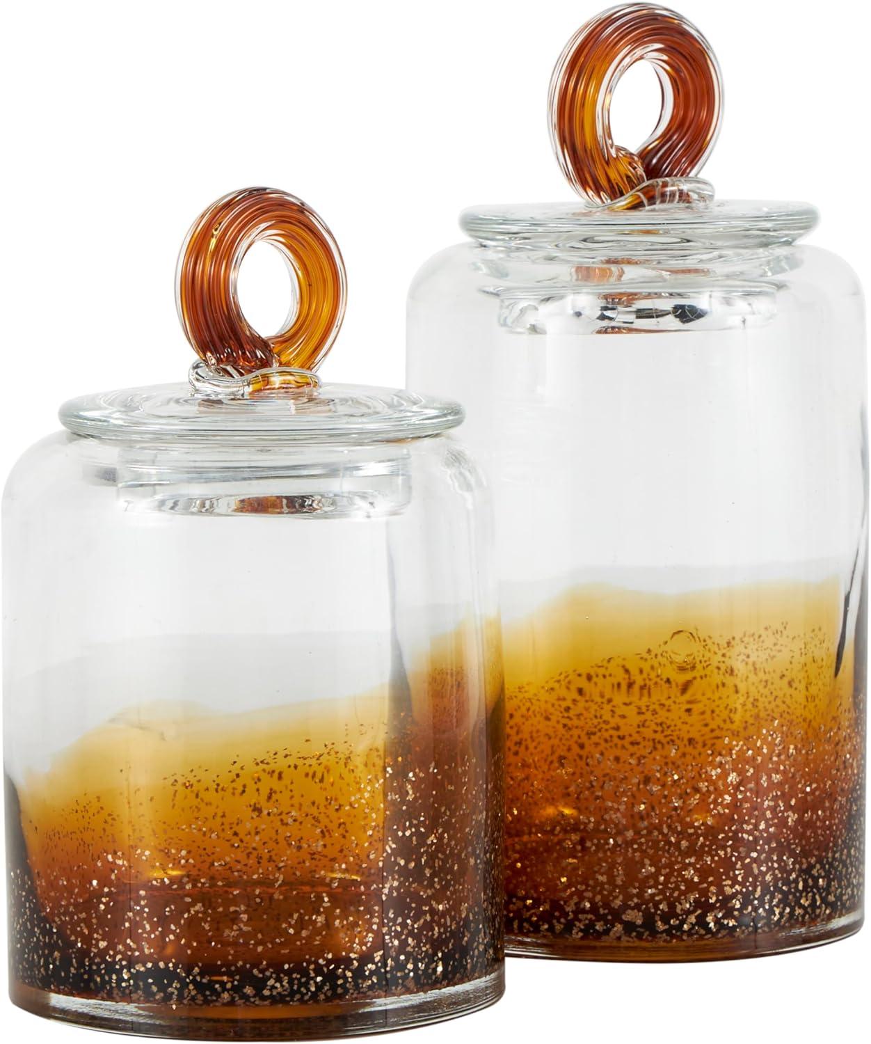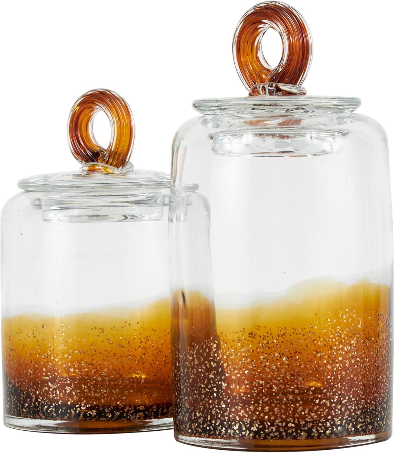 GEOMETRIC CYLINDER DECORATIVE JARS With a faceted surface for added visual interest and luxurious diamond knobs atop, this glass set of 2 decorative jars embodies elegance and sophistication