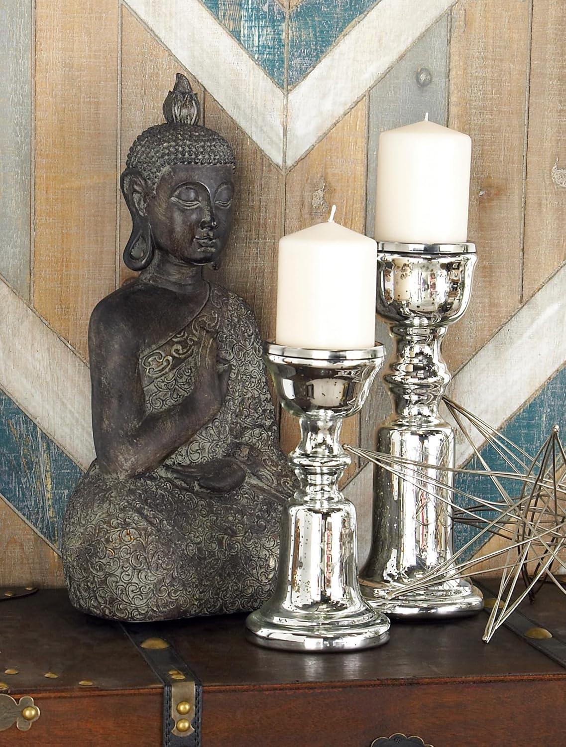 Deco 79 Glass Handmade Decorative Candle Holder Turned Style Pillar Candle Stand, Set of 2 Candlestick Holder 9″, 12″H, Silver(Silver)