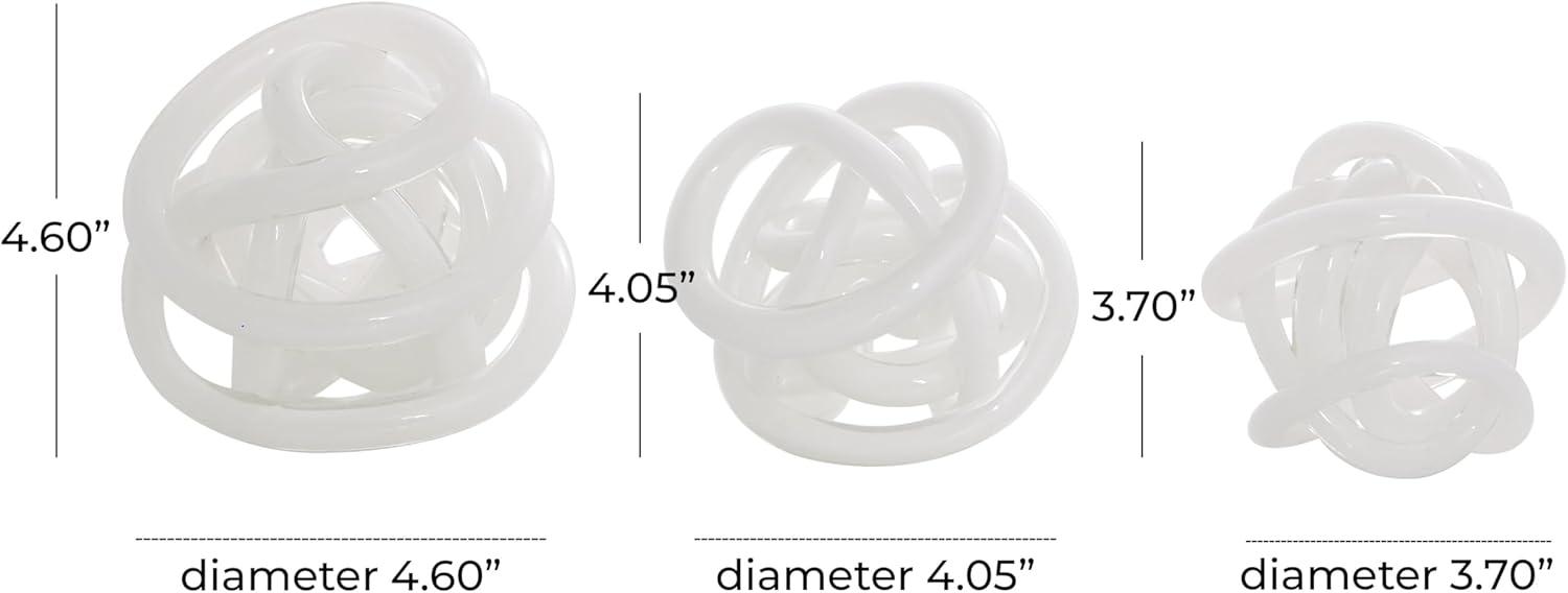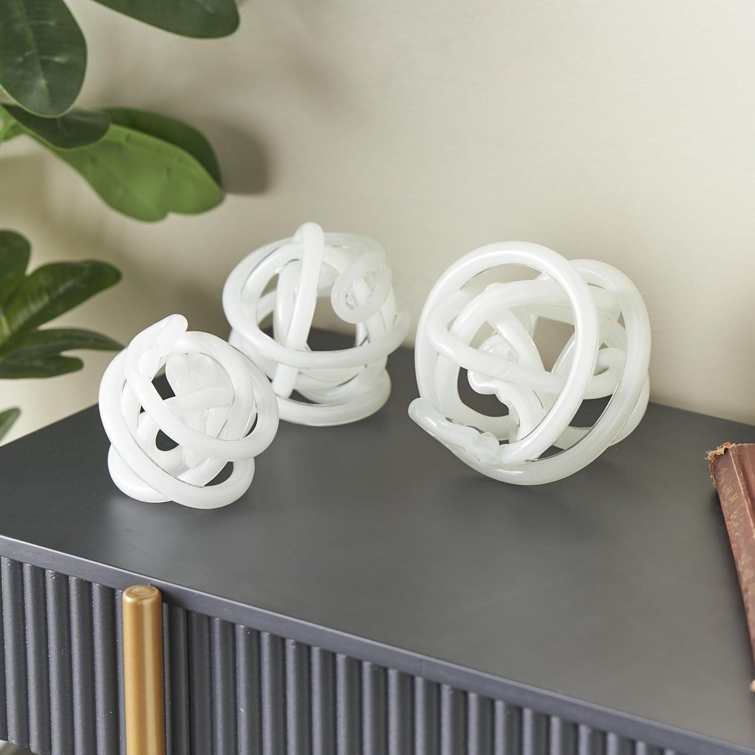 Deco 79 Glass Knot Decorative Sculpture Knotted Ball Home Decor Statues, Set of 3 Accent Figurines 5", 4", 4"W, Black(White)