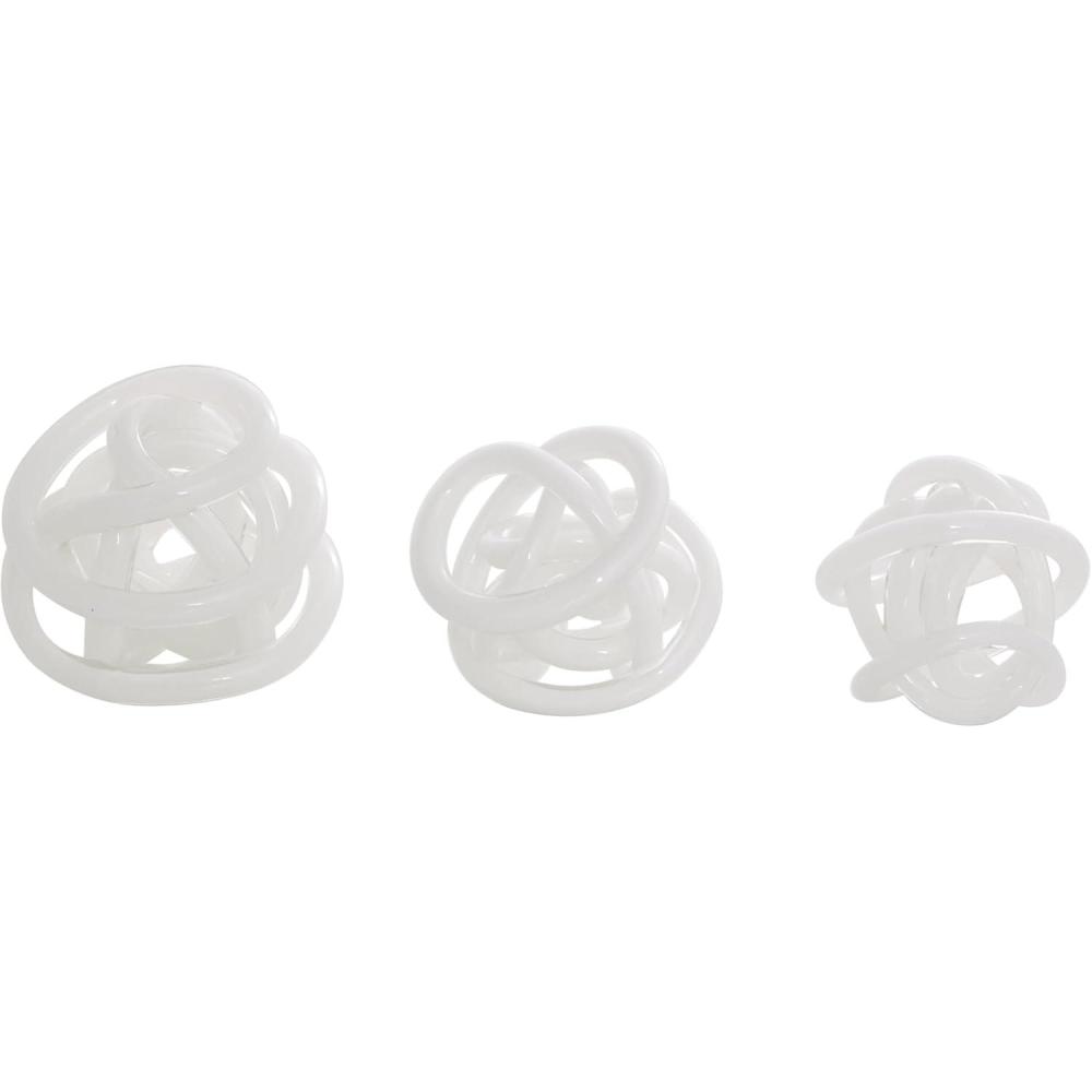 Deco 79 Glass Knot Decorative Sculpture Knotted Ball Home Decor Statues, Set of 3 Accent Figurines 5″, 4″, 4″W, Black(White)