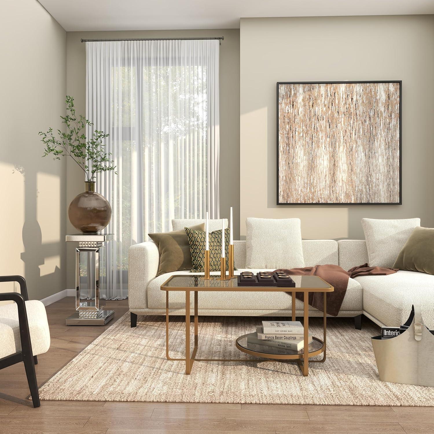 MADE OF GLASS: A glam-inspired side table crafted of solid and polished wood and mdf and glass materials