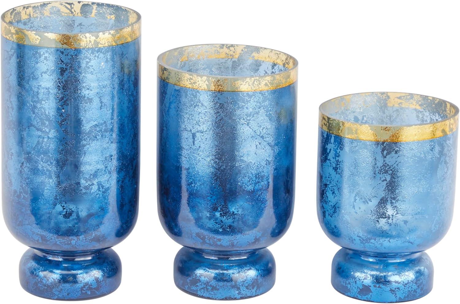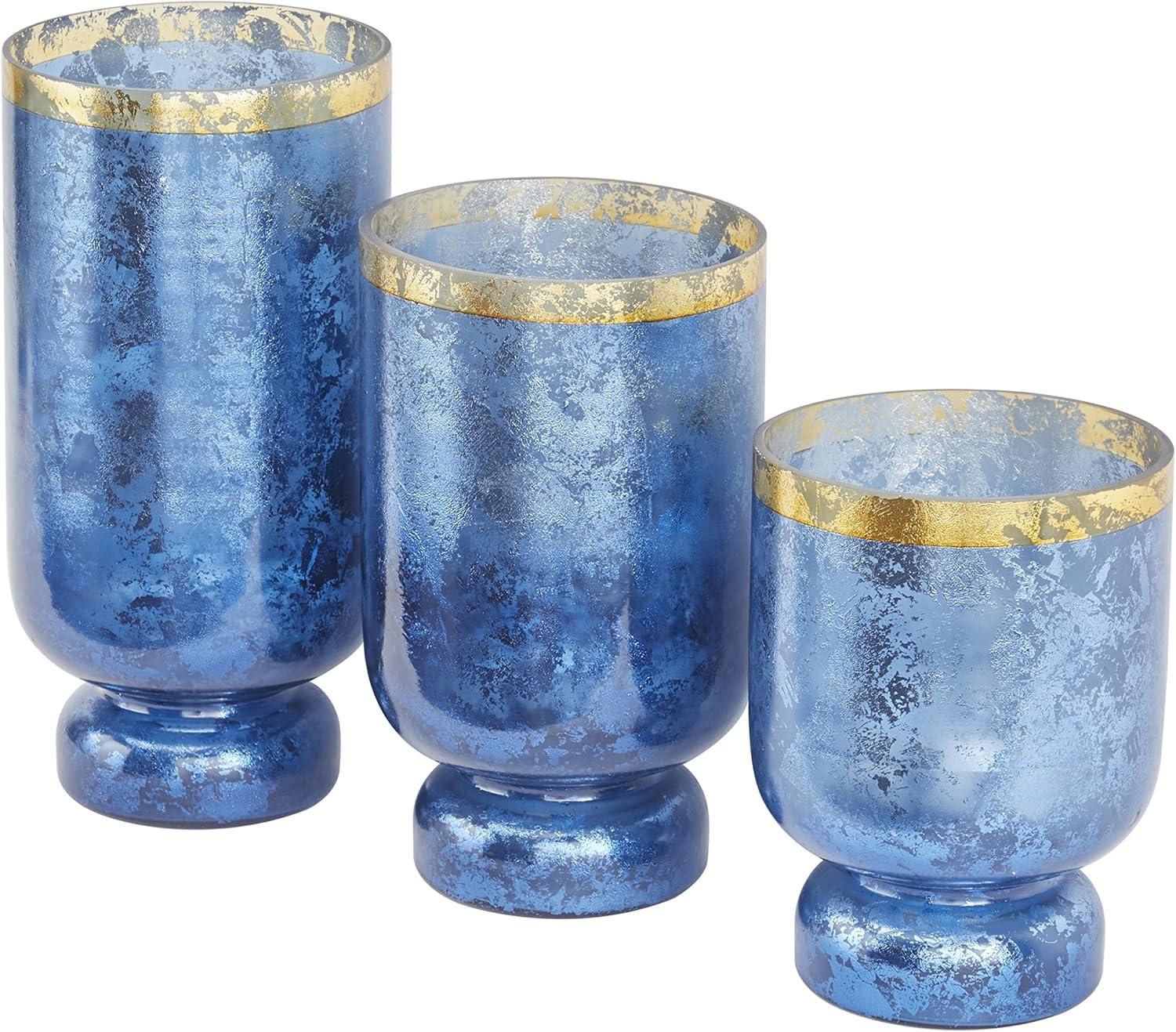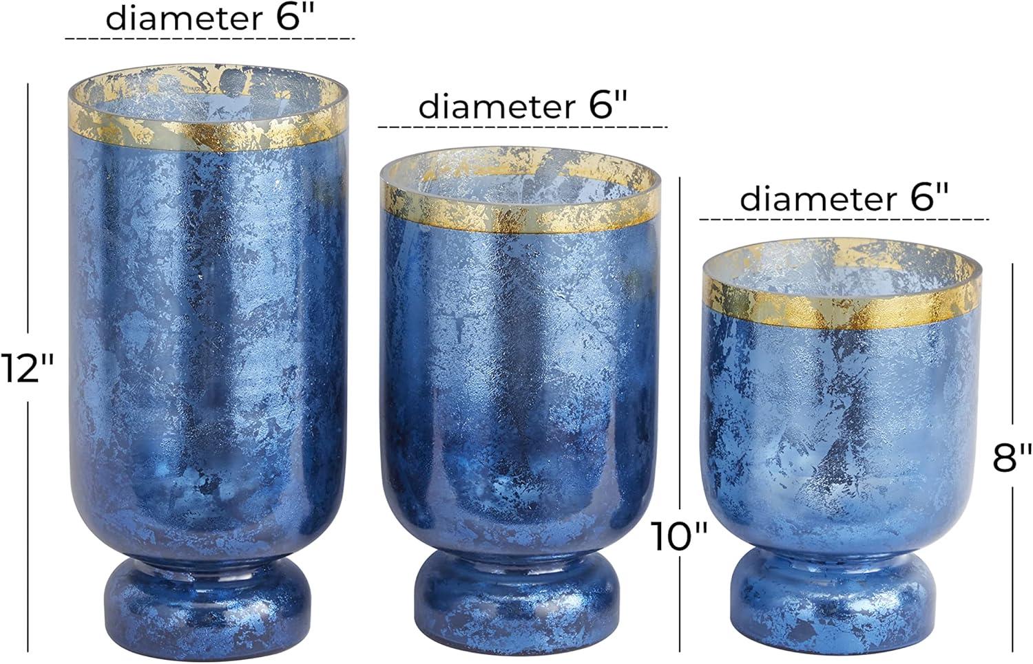 3 PIECES SMALL SIZE Each blue glass hurricane lamp measures 5.85L x 5.95W x 11.95H , 5.95L x 5.95W x 10.15H, 5.95L x 5.95W x 8.10H inches, and collectively weighs 7.07 lbs