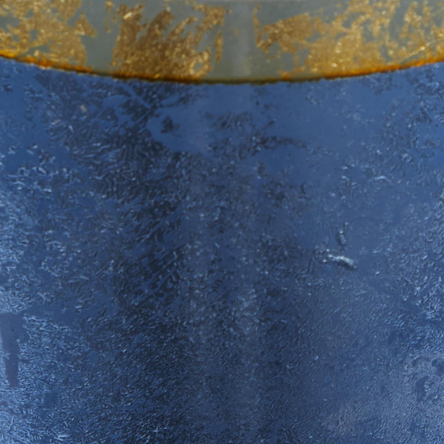 BLUE AND GOLD POLISHED FINISH Votive candle holders highlight an elegant blue and gold textured design with a smooth bubbled-inspired look