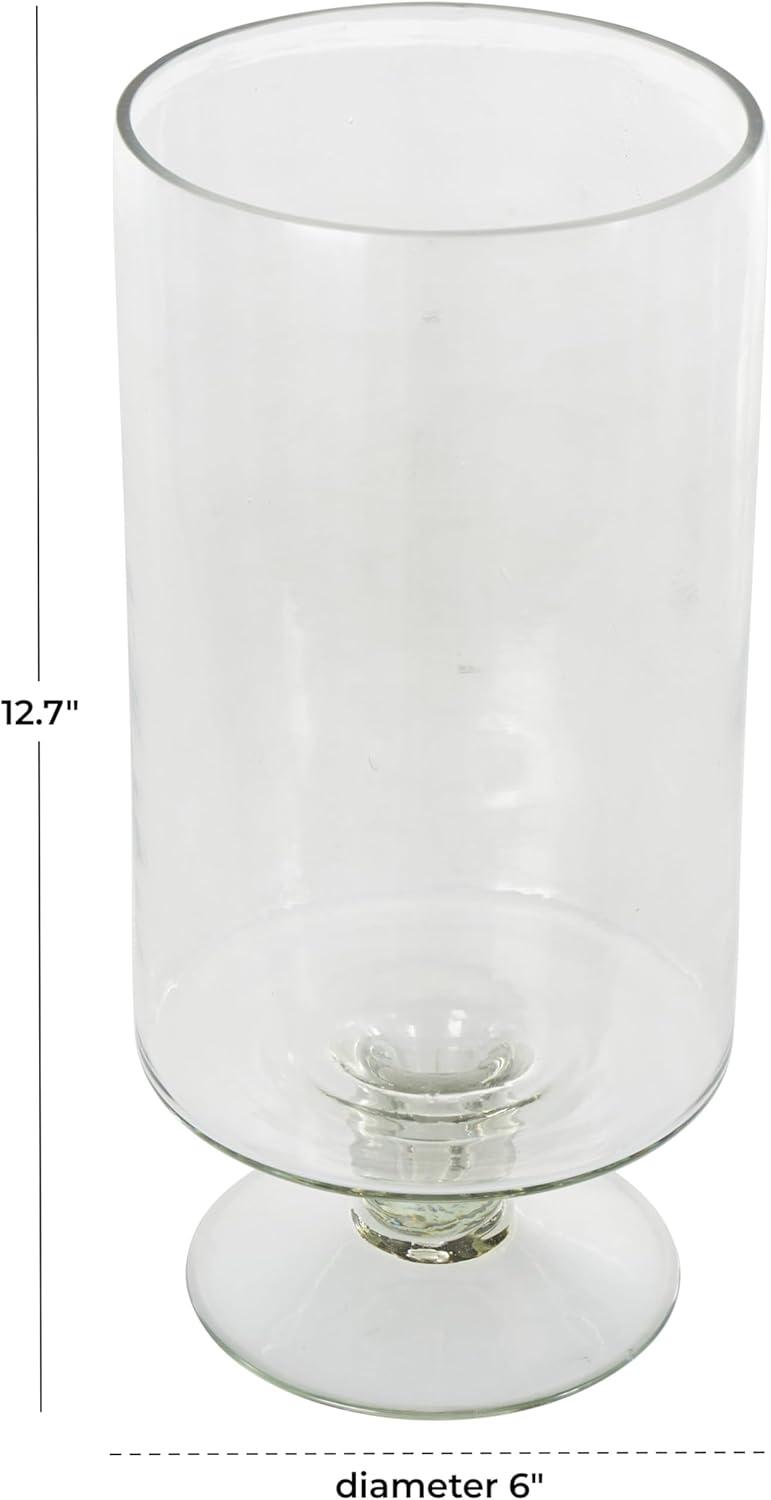 Deco 79 Glass Ribbed Fluted Candle Holder with Elevated Base, 6" x 6" x 14", Clear(6" x 6" x 12.7")