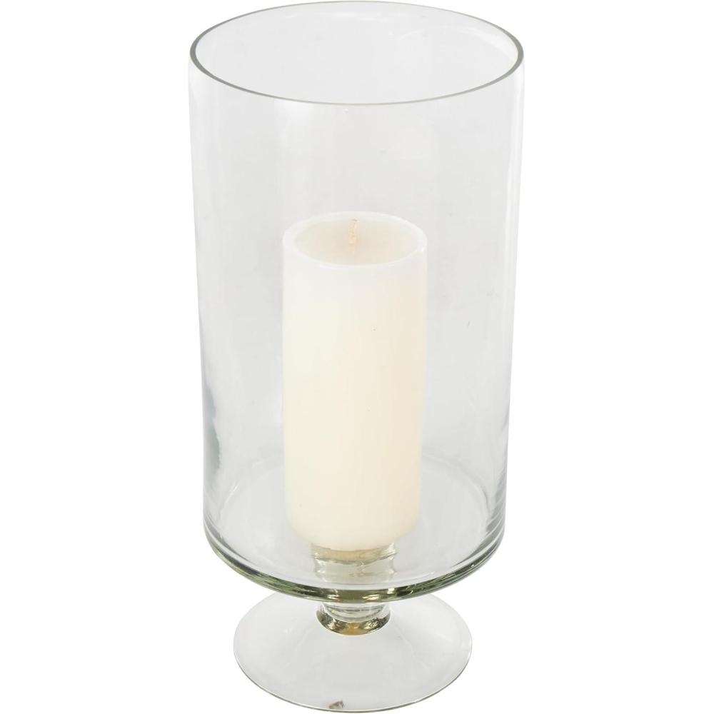 Expertly crafted, the modern candlestand features molded blown glass to create intricate ribbing, for a stunning visual piece. The polished clear candle holder has a tall rounded shape and ribbed detailing that adds a touch of refinement to any decor. Spot clean. The clear candle holder is perfect for enhancing the beauty of your living room coffee table or mantle, to create a warm and inviting aesthetic. Designed with felt or rubber stoppers at the base that prevent scratching furniture and table tops, as well as sliding around. Can hold 1 wax candle candle, not included. This item ships in 1 carton. Glass candle holder makes a great gift for any occasion. Suitable for indoor use only. This item ships fully assembled in one piece. Made in India. This is a single clear colored hurricane candle holder. Modern style.