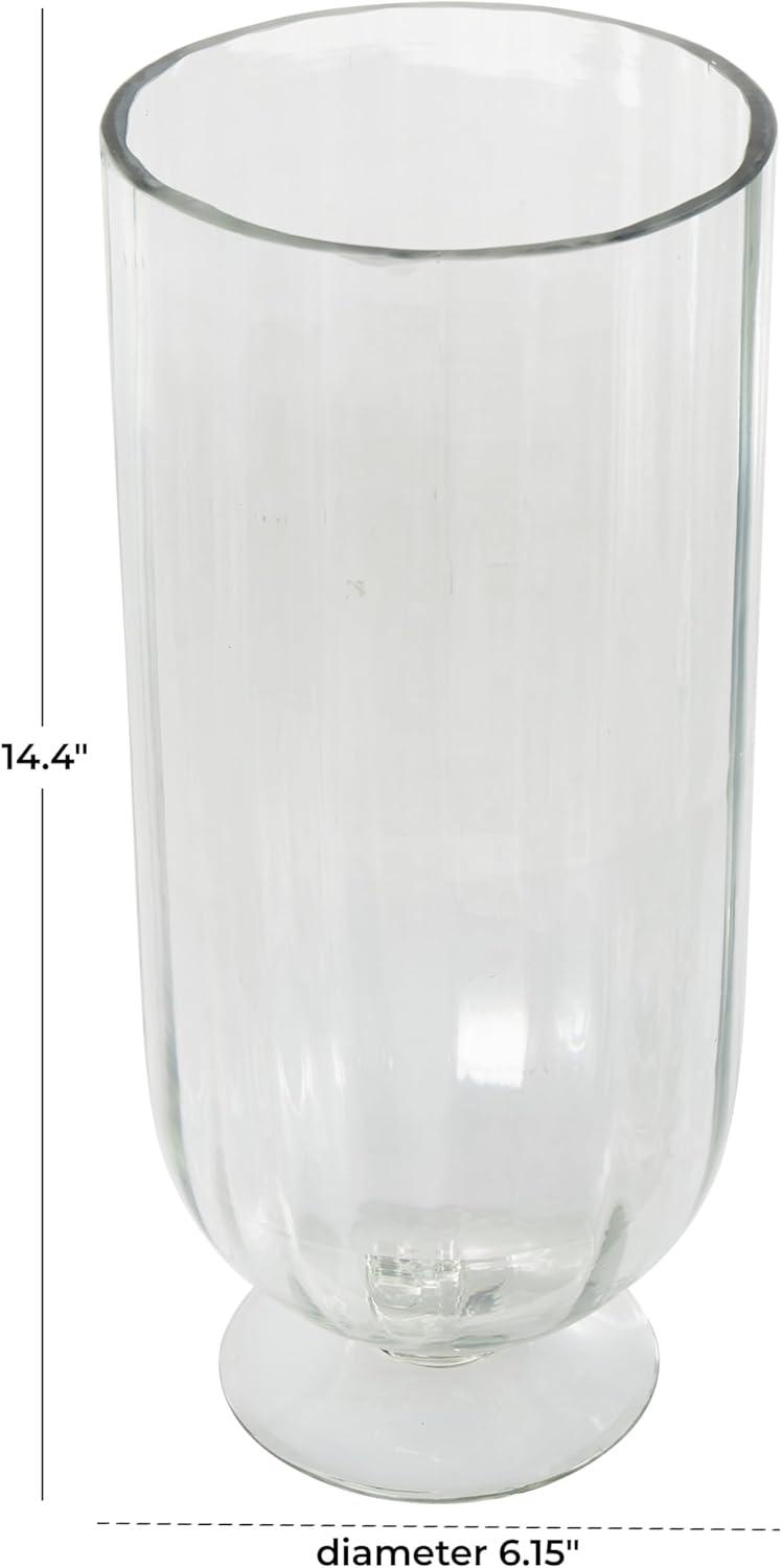 Deco 79 Glass Ribbed Fluted Candle Holder with Elevated Base, 6" x 6" x 14", Clear(6" x 6" x 14")