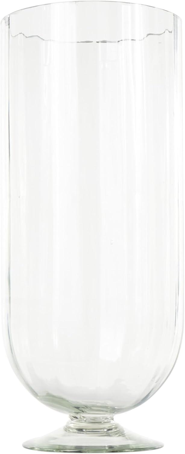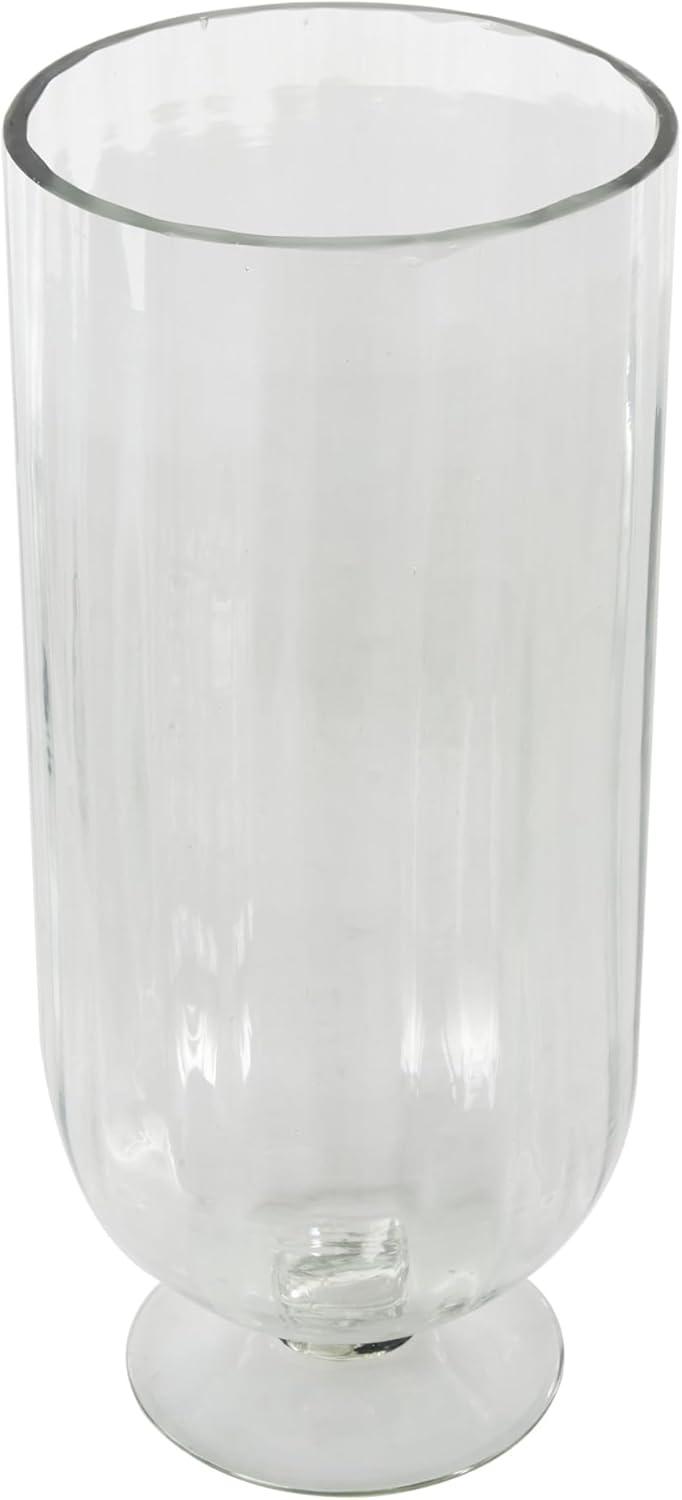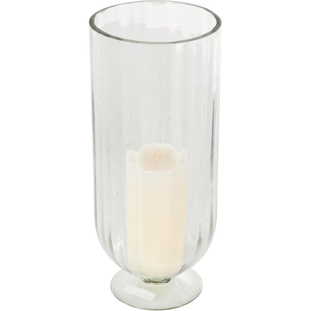 Expertly crafted, the modern candlestand features molded blown glass to create intricate ribbing, for a stunning visual piece. The polished clear candle holder has a tall rounded shape and ribbed detailing that adds a touch of refinement to any decor. Spot clean. The clear candle holder is perfect for enhancing the beauty of your living room coffee table or mantle, to create a warm and inviting aesthetic. Designed with felt or rubber stoppers at the base that prevent scratching furniture and table tops, as well as sliding around. Can hold 1 wax candle candle, not included. This item ships in 1 carton. Glass candle holder makes a great gift for any occasion. Suitable for indoor use only. This item ships fully assembled in one piece. Made in India. This is a single clear colored hurricane candle holder. Modern style.
