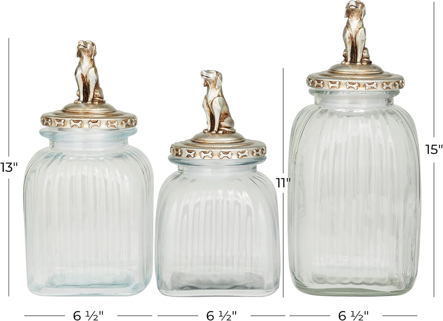 Deco 79 Glass Round Decorative Jars, Set of 3 15", 13", 11"H, Clear