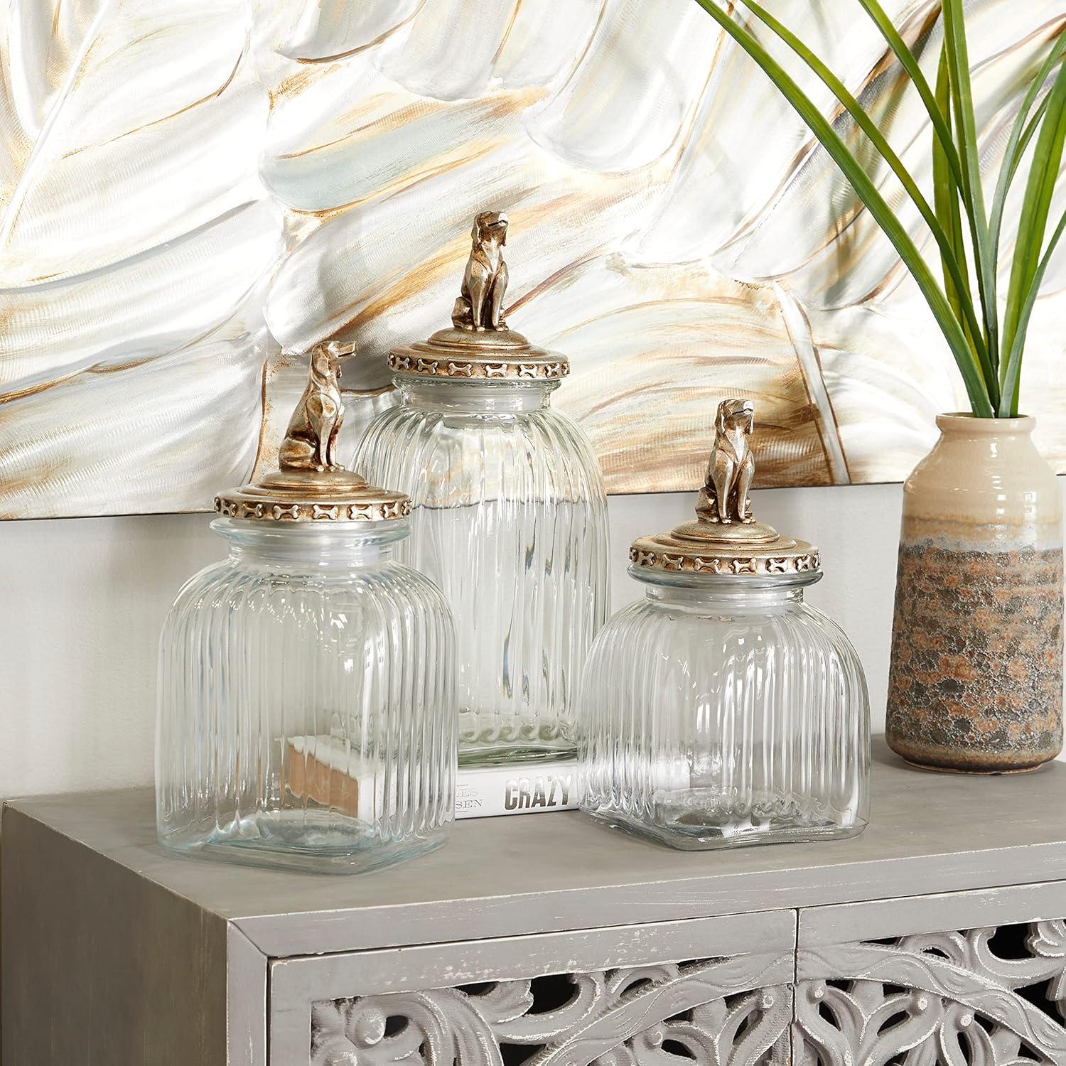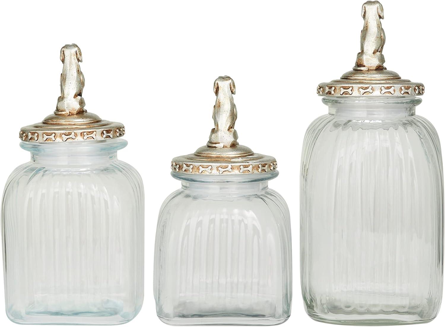 Deco 79 Glass Round Decorative Jars, Set of 3 15″, 13″, 11″ H, Clear