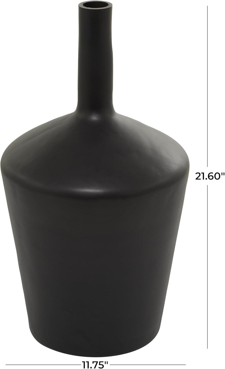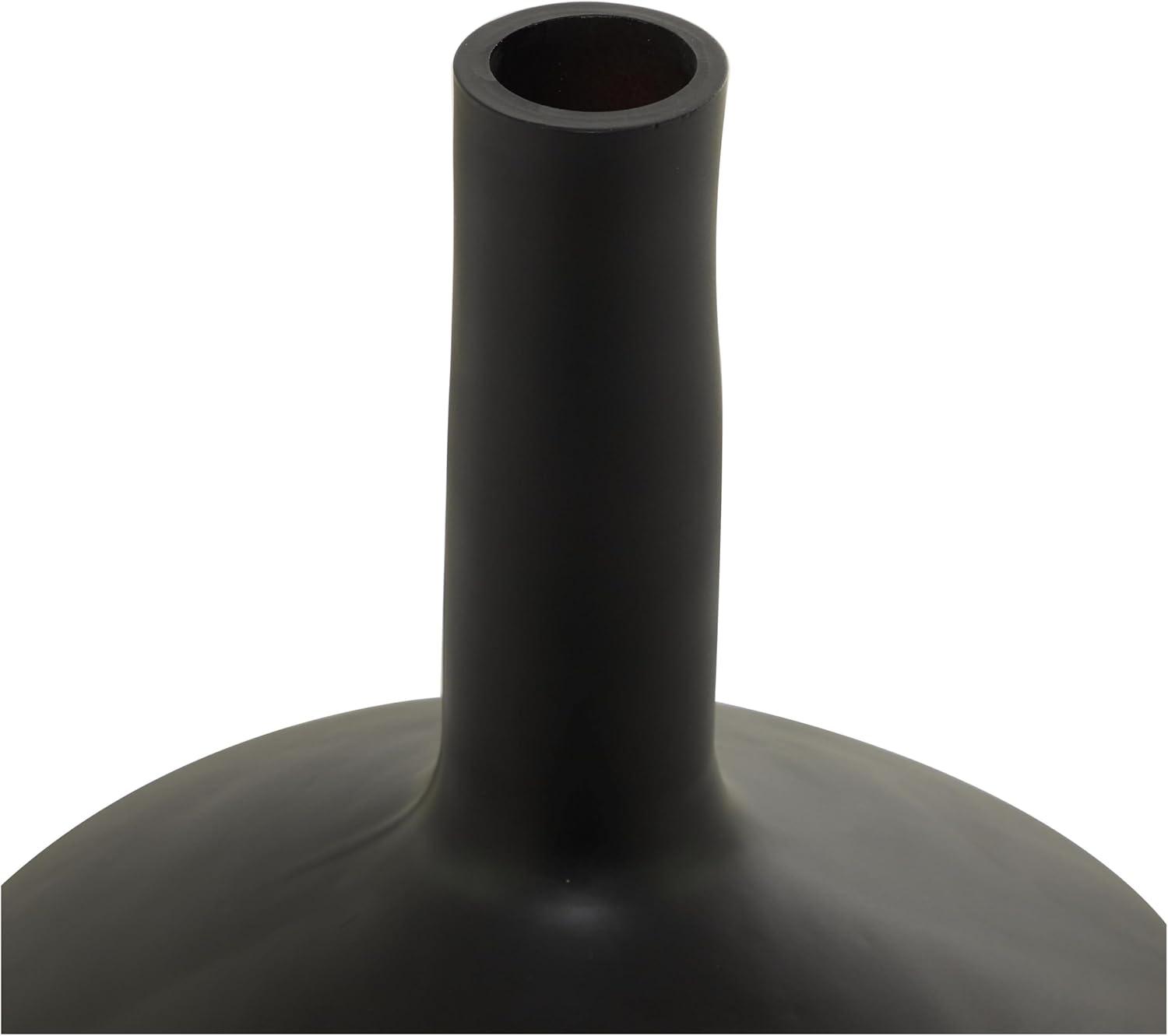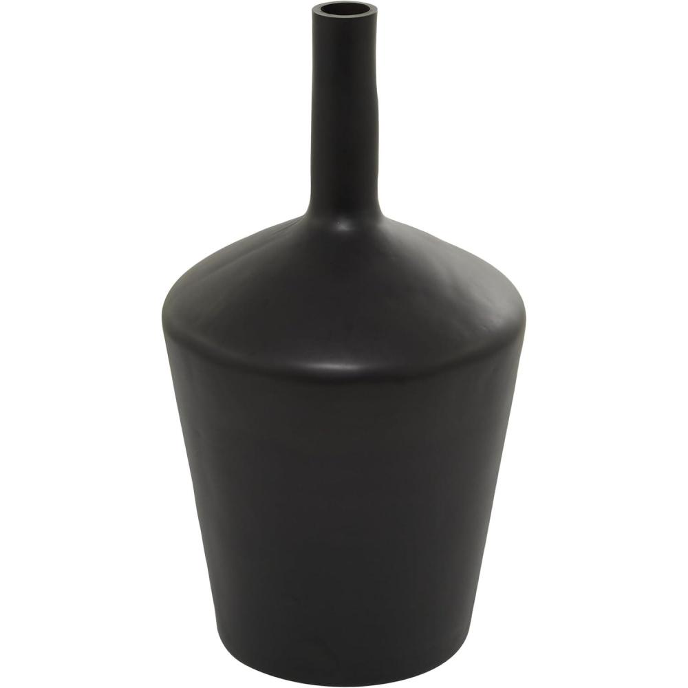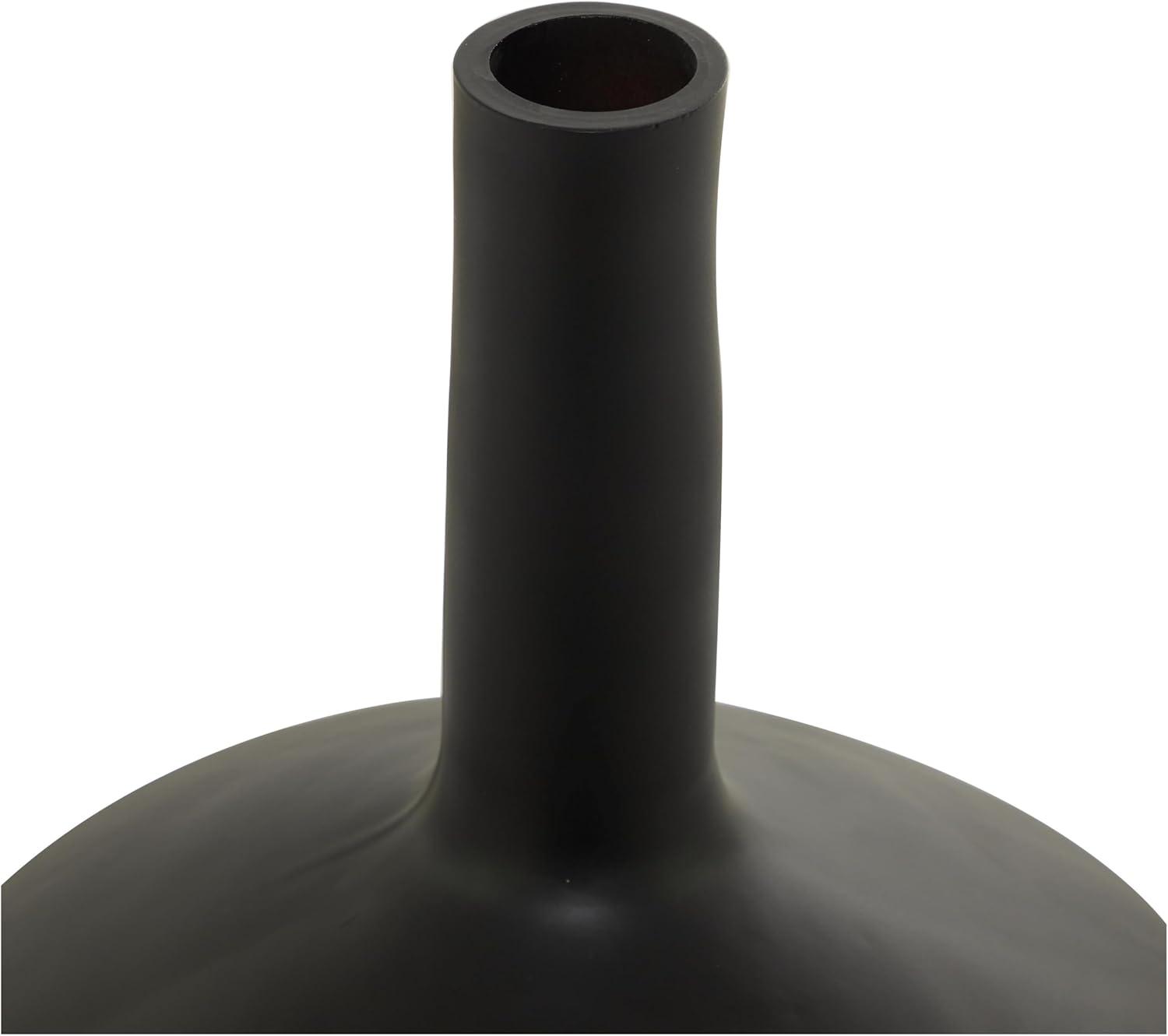 This modern vase for home decor is molded with blown glass and applied with a matte black finish. This matte black vase for dried flowers carries a gourd shape with a tall, fluted opening. Wipe clean with a dry cloth. Throw some dried flowers into this black centerpiece vase or use it as an accent piece on your coffee table or console, paired with books and an abstract sculpture. This item ships in 1 carton. Suitable for indoor use only. This item ships fully assembled in one piece. Made in India. This is a single black colored vase. Modern style. Vase has a 1 in mouth opening.