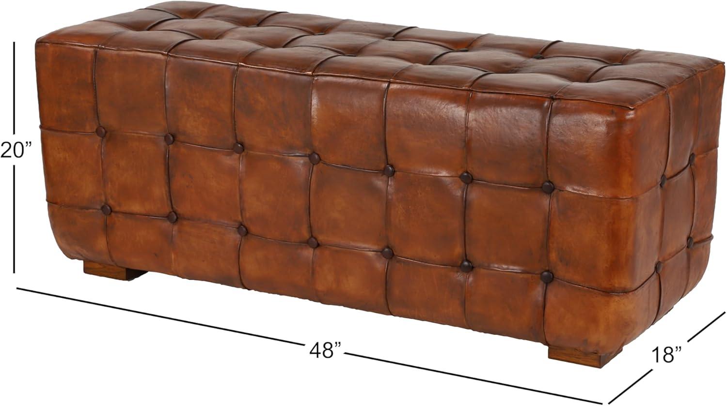 Deco 79 Leather Home Bench Tufted Upholstered Entryway Bench, Bedroom Bench 48" x 18" x 20", Brown(Brown)