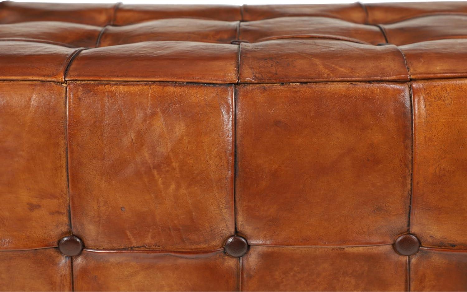 RECTANGLE BENCH FOR ENTRYWAY: This leather bench features a long rectangular silhouette upholstered with real leather in a tufted design for comfortable seating