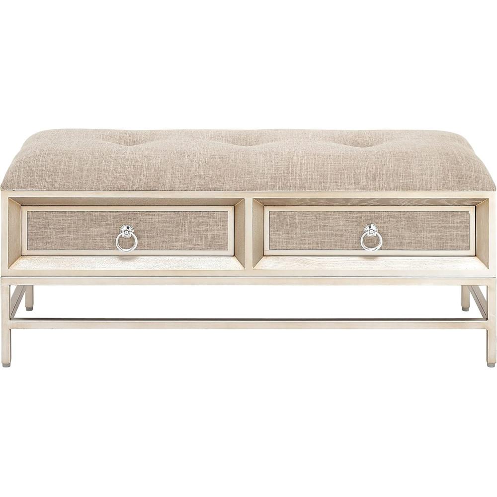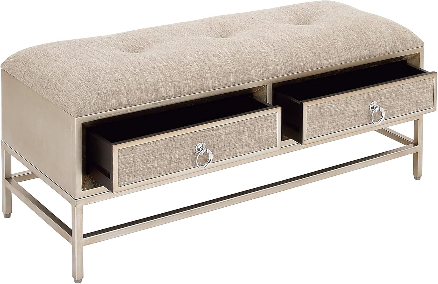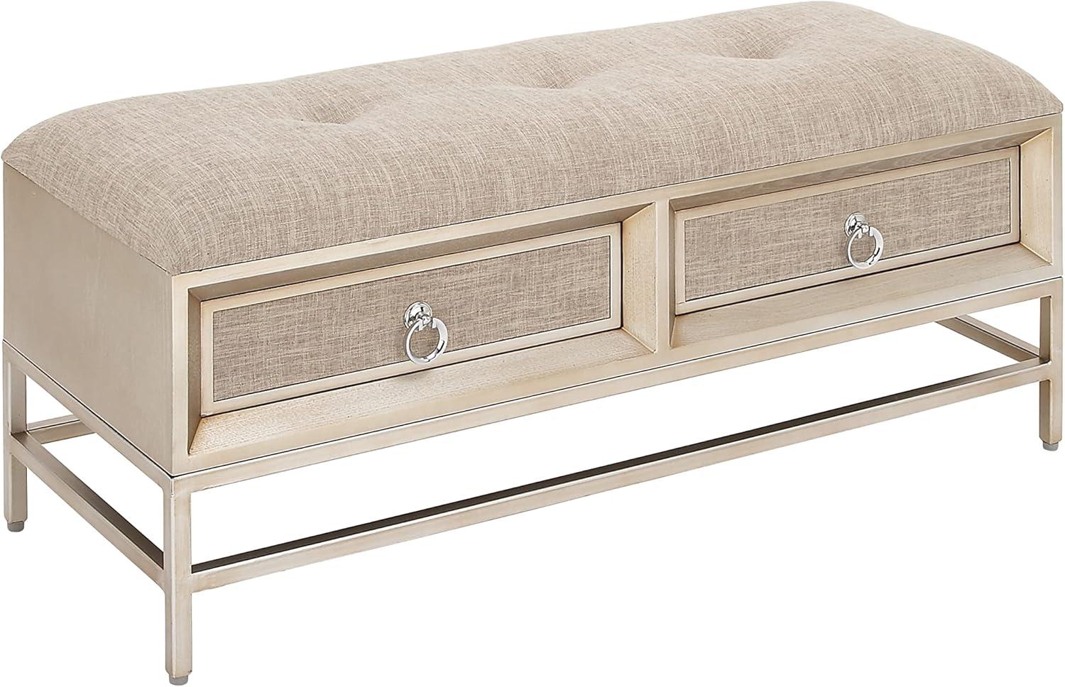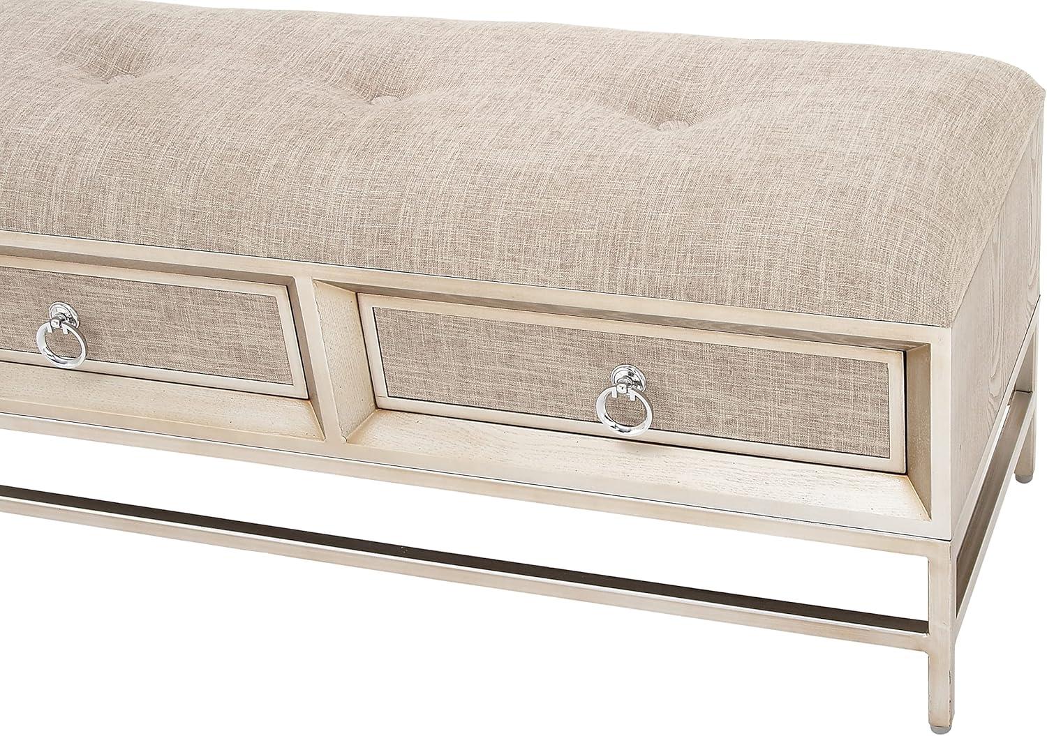 Deco 79 Linen Fabric Room Storage Bench Upholstered 2 Drawer Entryway Bench with Tufted Seat and Ring Handles, Bench 43" x 16" x 19", Beige(Beige)