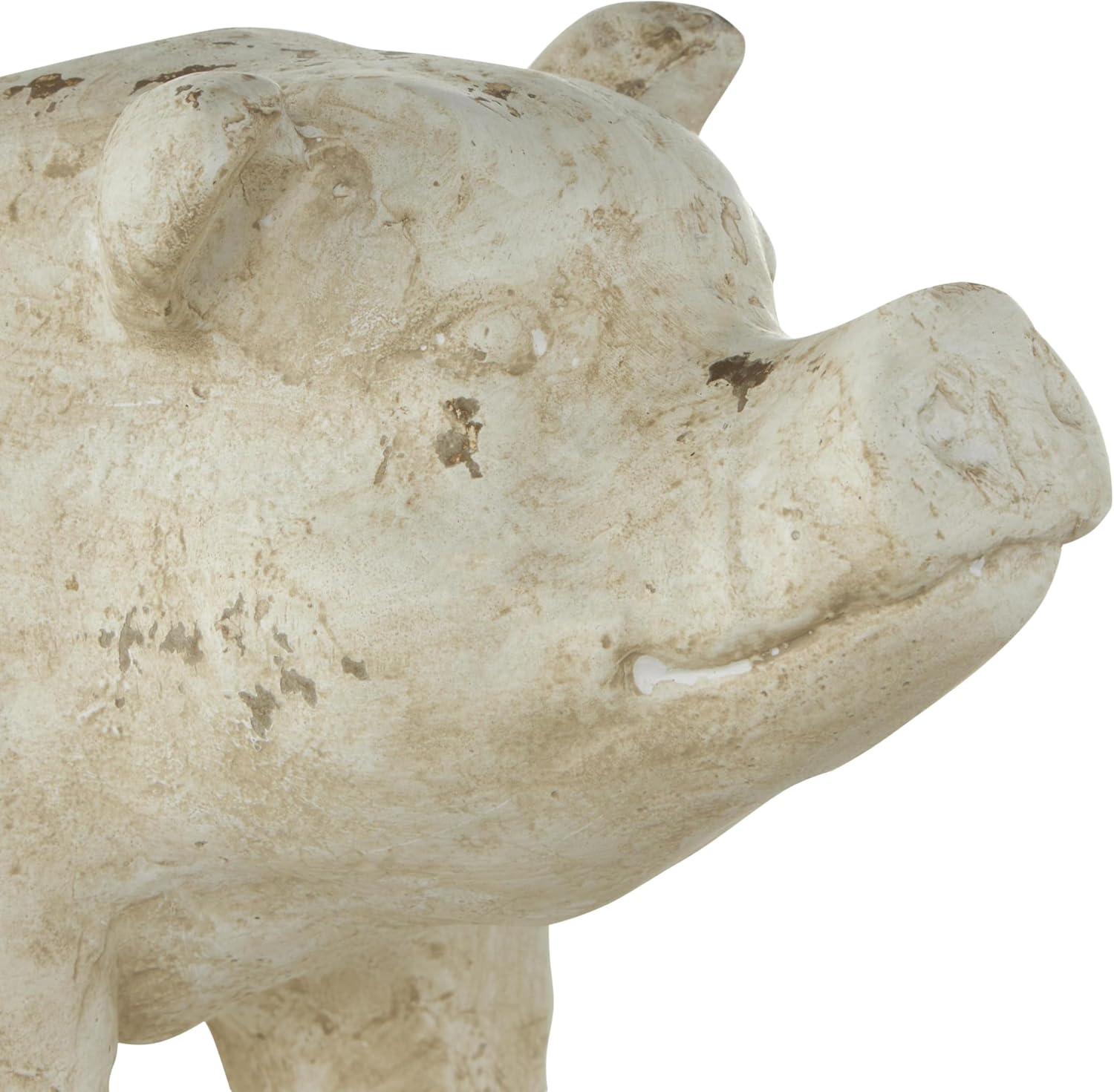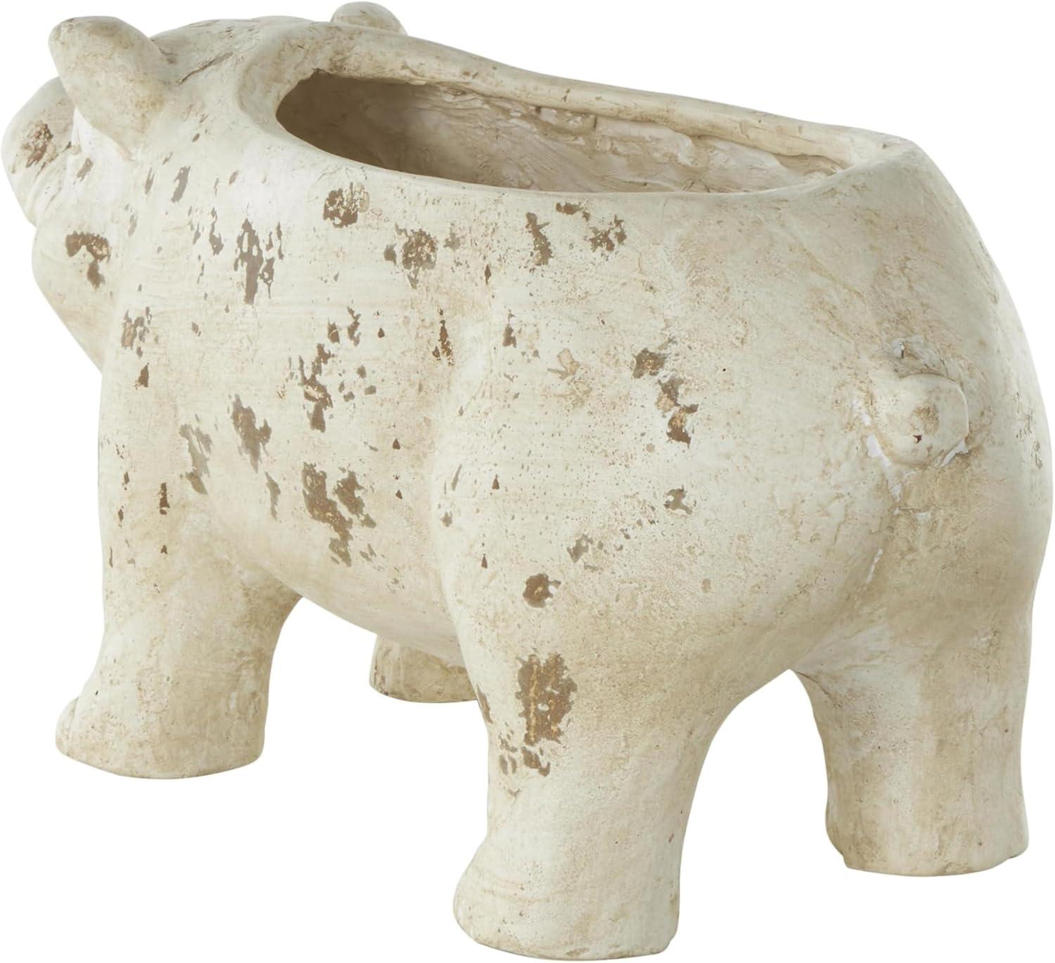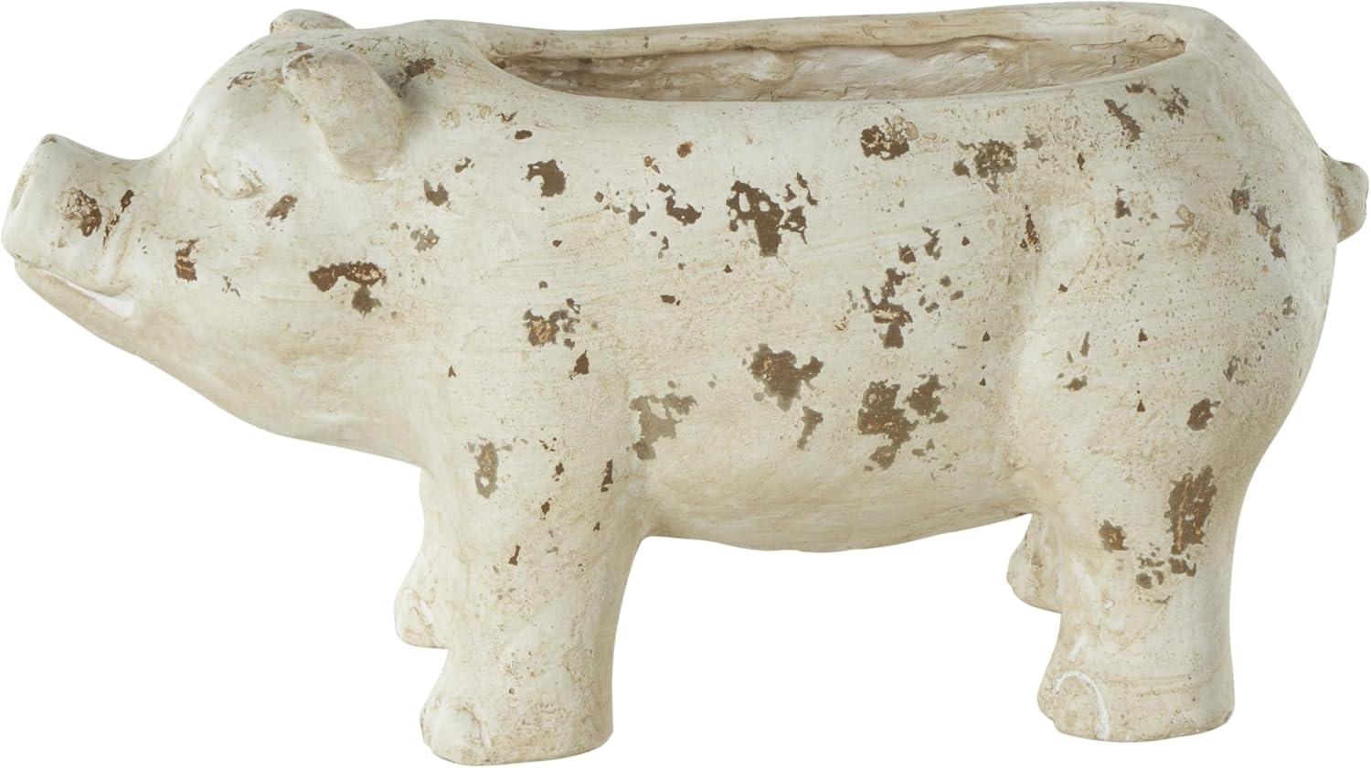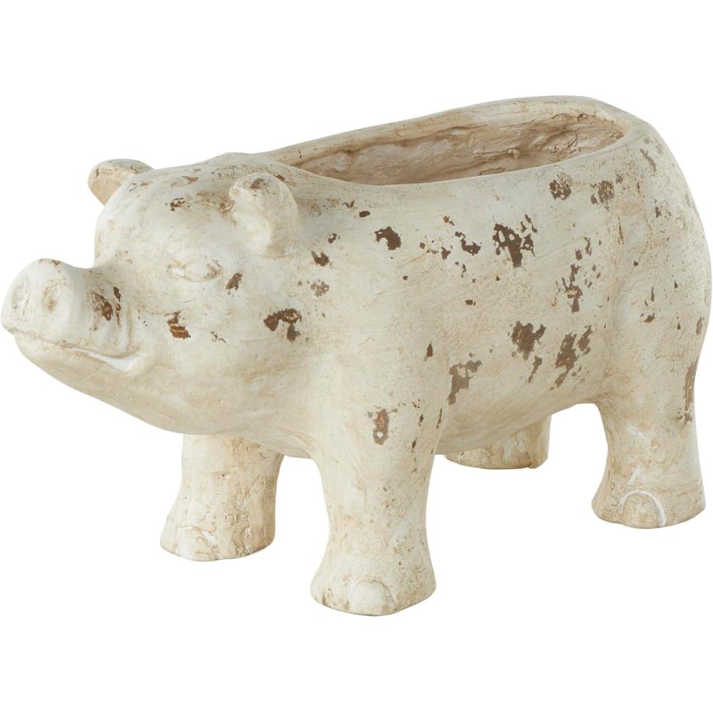 Deco 79 Magnesium Oxide Pig Indoor Outdoor Planter Small Planter Pot with Distressed Details, Planter 7″ x 17″ x 8″, Light Brown(Cream)