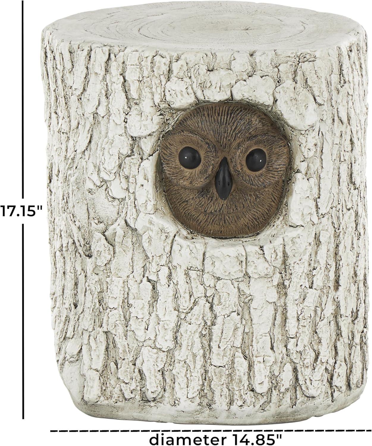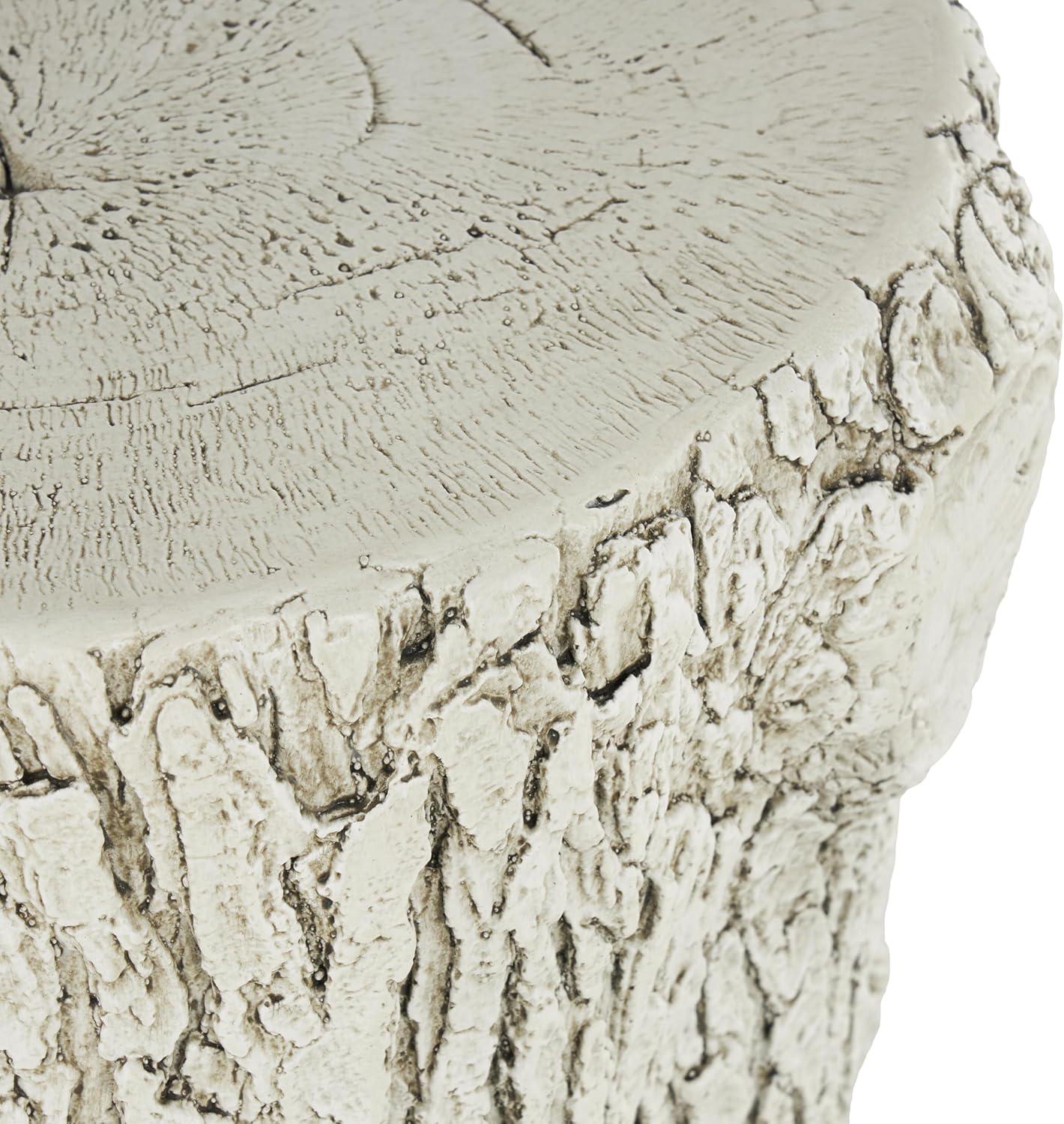 Each feature of this Contemporary stool has been carefully crafted, with the squirrels' design and tree trunk texture carved into the magnesium oxide material. Its cylindrical shape with squirrels in the middle that adds a unique touch to the textured white garden stool, making it a standout addition to any outdoor setting. Wipe clean with a dry cloth. Perfect for garden spaces or patios, this squirrel garden stool serves as both a functional piece and an artistic statement. This item ships in 1 carton. Suitable for indoor and outdoor use. This item ships fully assembled in one piece. Maximum weight limit is 50 lbs. This is a single white colored outdoor side table. Contemporary style.