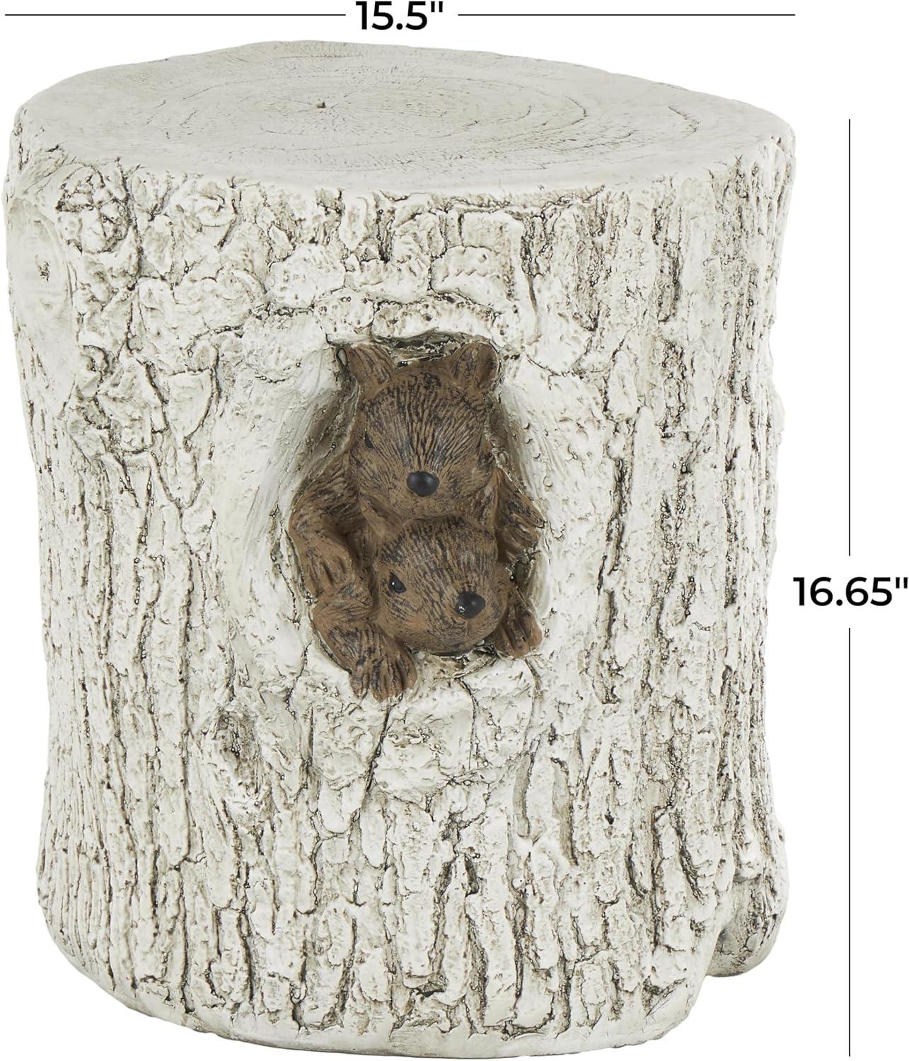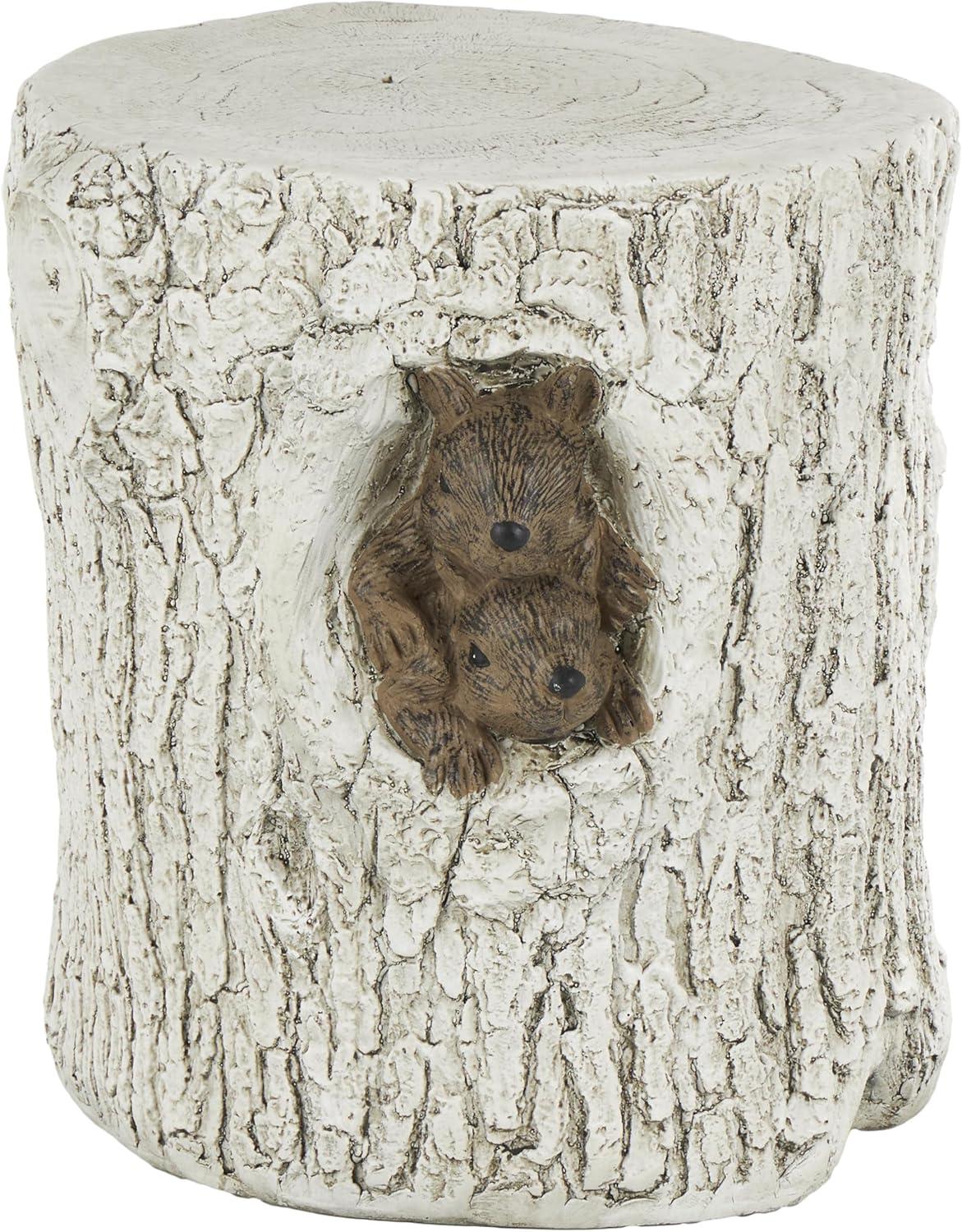 WHITE AND BROWN TEXTURED FINISH: Cylinder garden stool boasts a pristine white finish with two brown squirrels in the front, intricately textured to mimic the natural details of a tree trunk