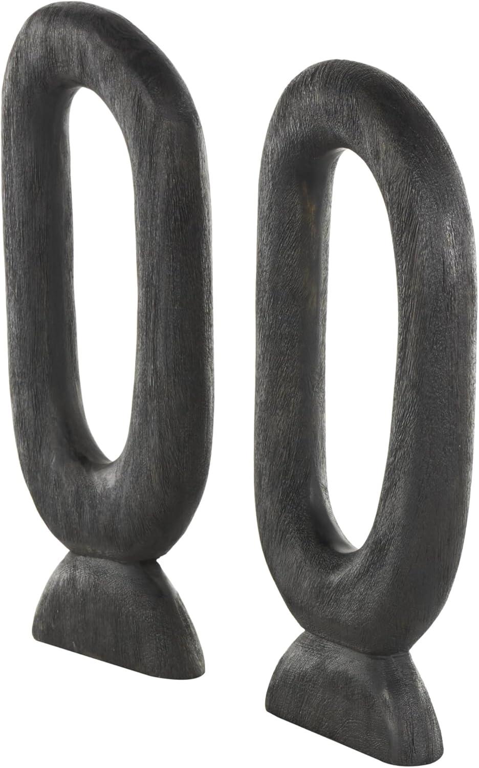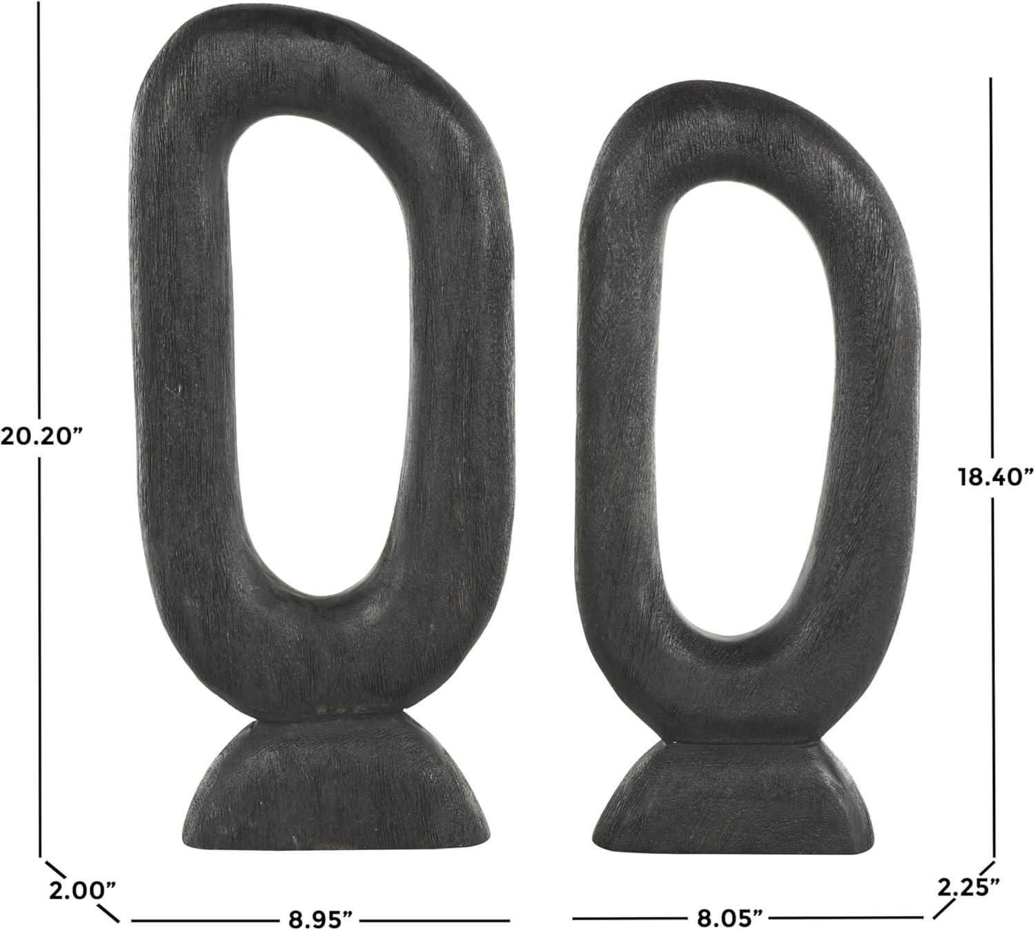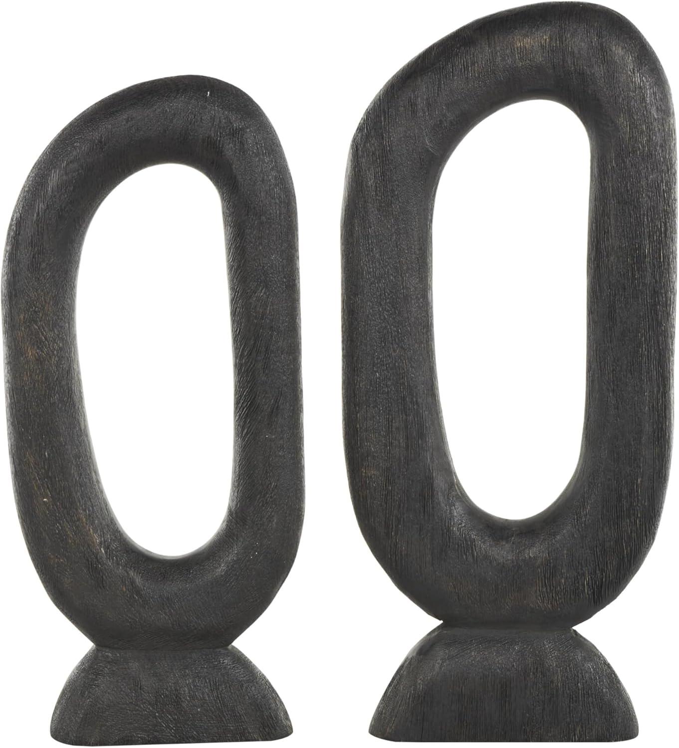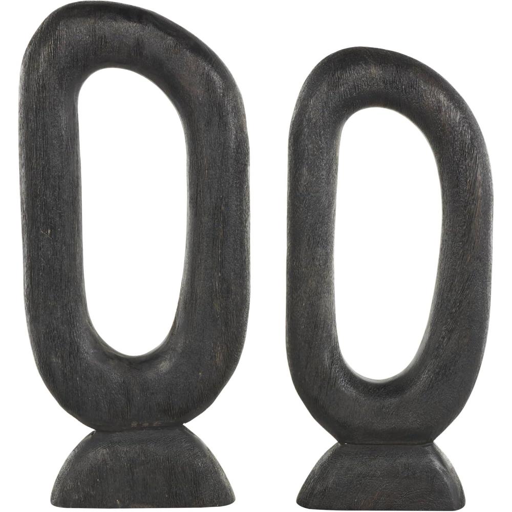 BLACK HOME DECOR FIGURINES: Oval sculpture 2-piece set showcases a natural aesthetic with its black finish, offering a bold contrast that can complement any decor