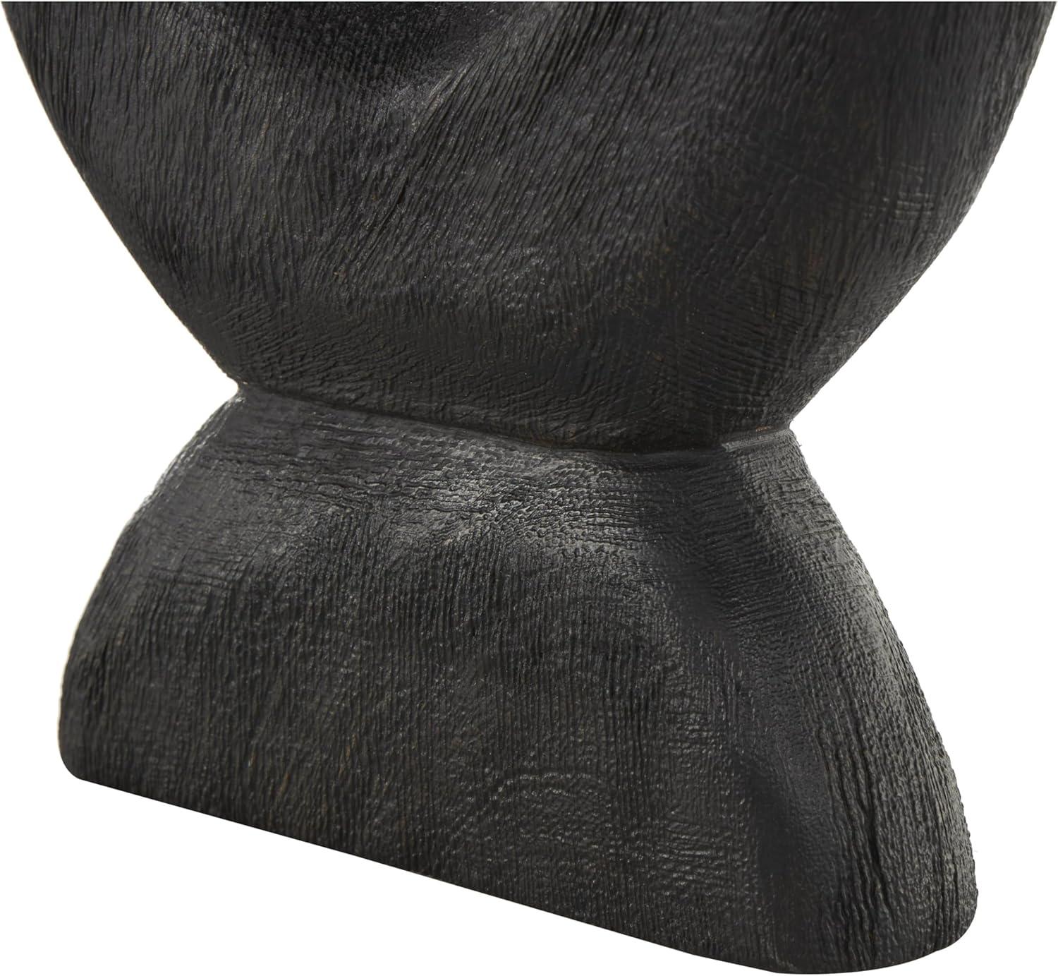 Natural sculptures in this set can be displayed together or separately on a tabletop or shelf, adding a unique artistic touch to your space. Designed with felt or rubber stoppers at the base that prevent scratching furniture and table tops, as well as sliding around. This item ships in 1 carton. Please note that this item is for decorative use only. Mango wood sculpture makes a great gift for any occasion. Suitable for indoor use only. This item ships fully assembled in one piece. Made in India. This black colored mango wood statue comes as a set of 2. Natural style.