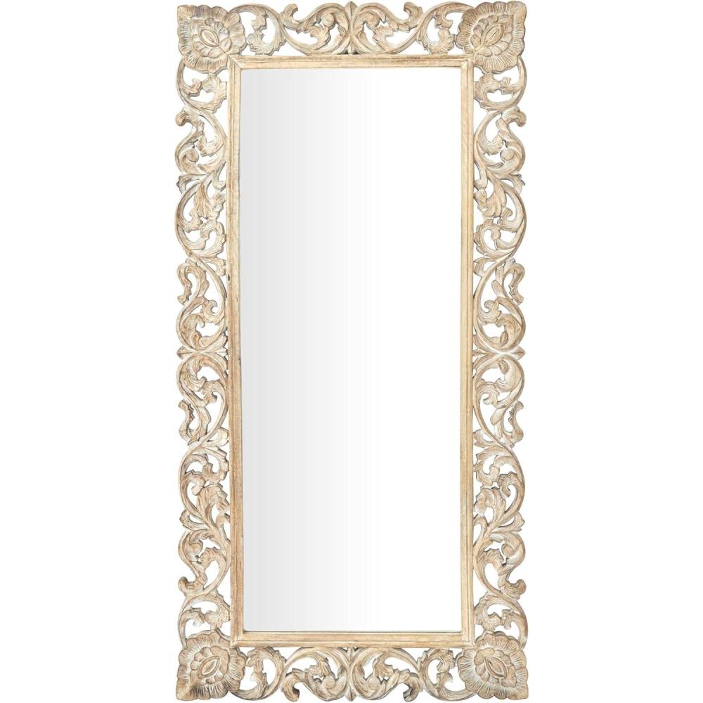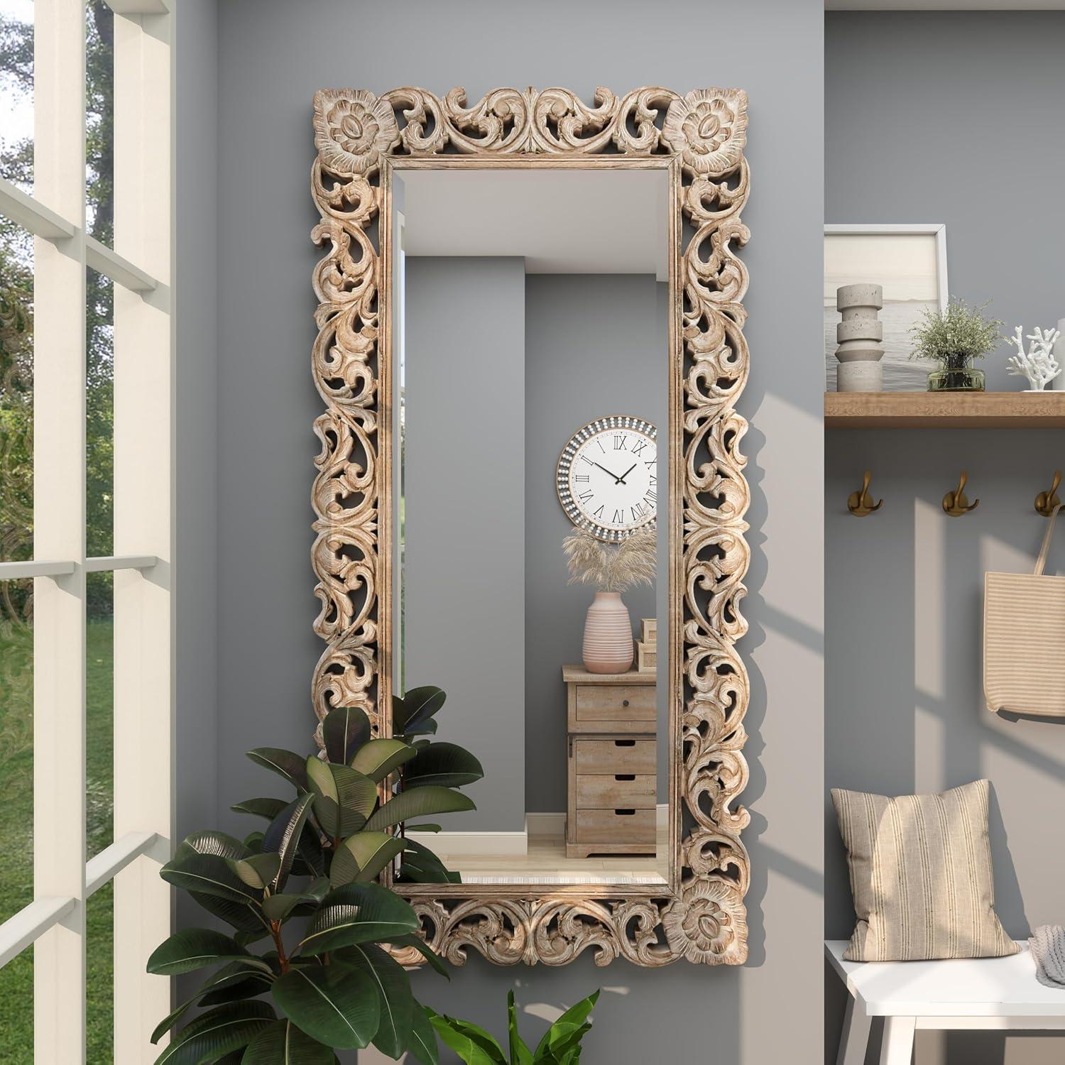 image:imageDeco 79 Mango Wood Floral Room Wall Mirror Intricately Carved Entryway Mirror Wall Mounted Mirror 36 x 2 x 72 Light Brown