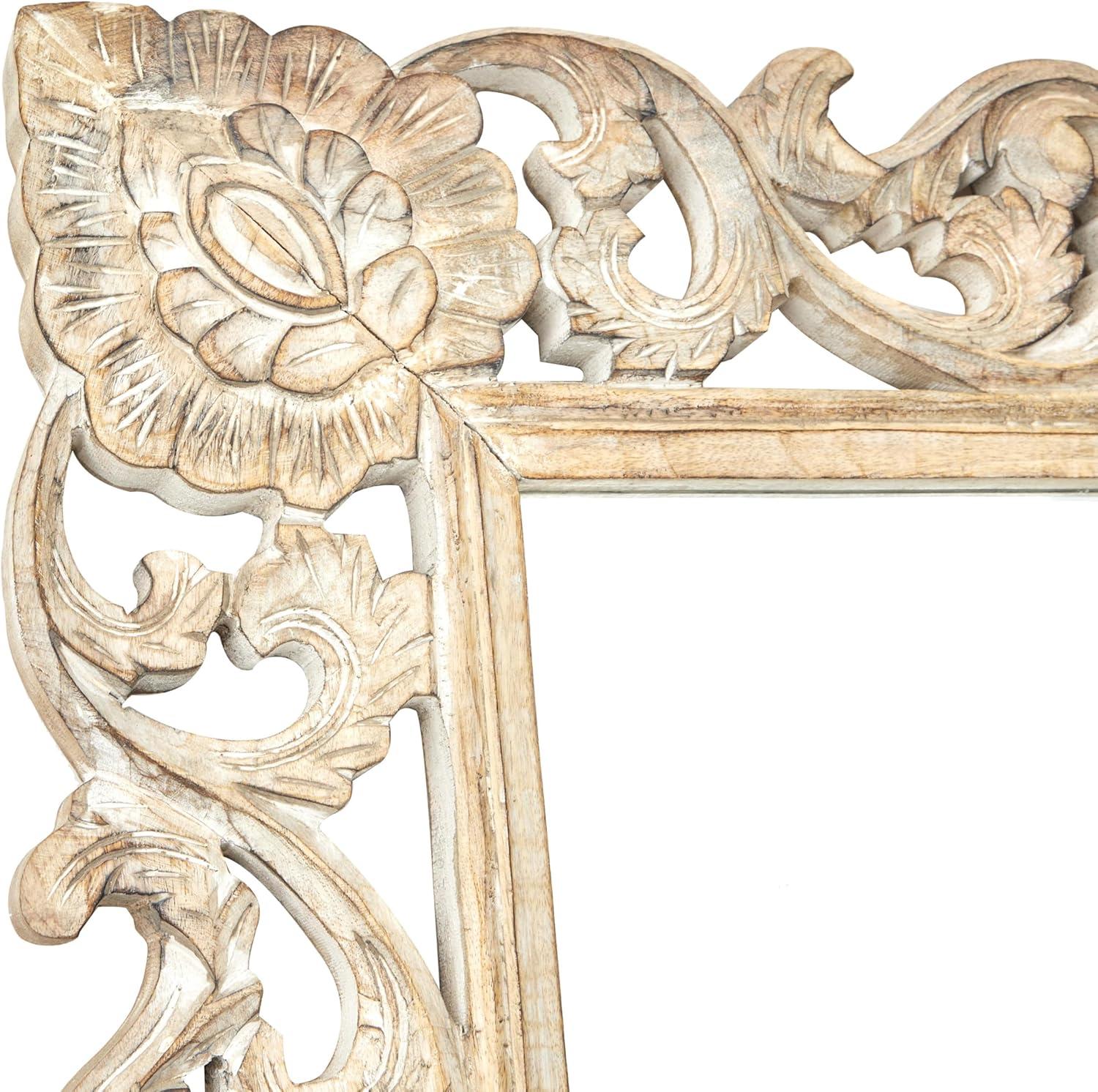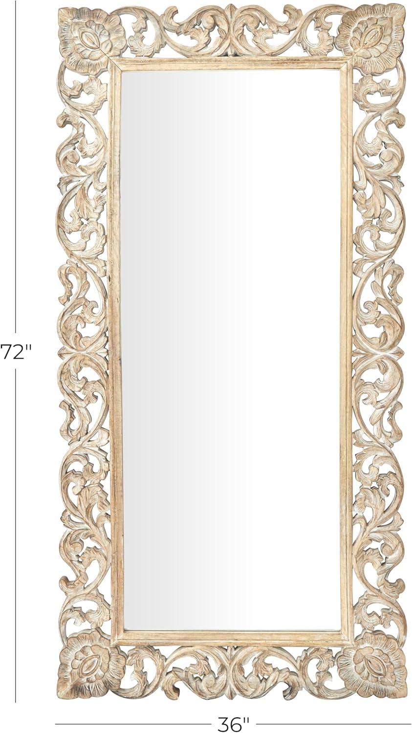 Deco 79 Mango Wood Floral Room Wall Mirror Intricately Carved Entryway Mirror, Wall Mounted Mirror 36" x 2" x 72", Light Brown