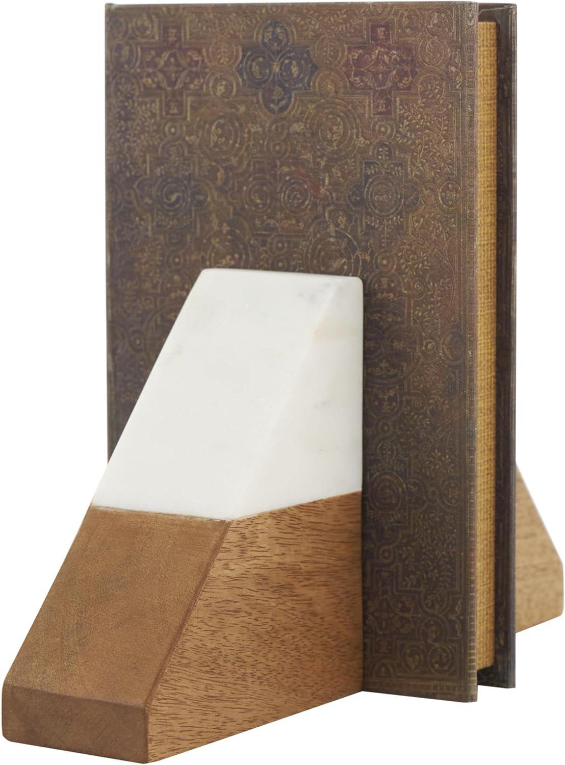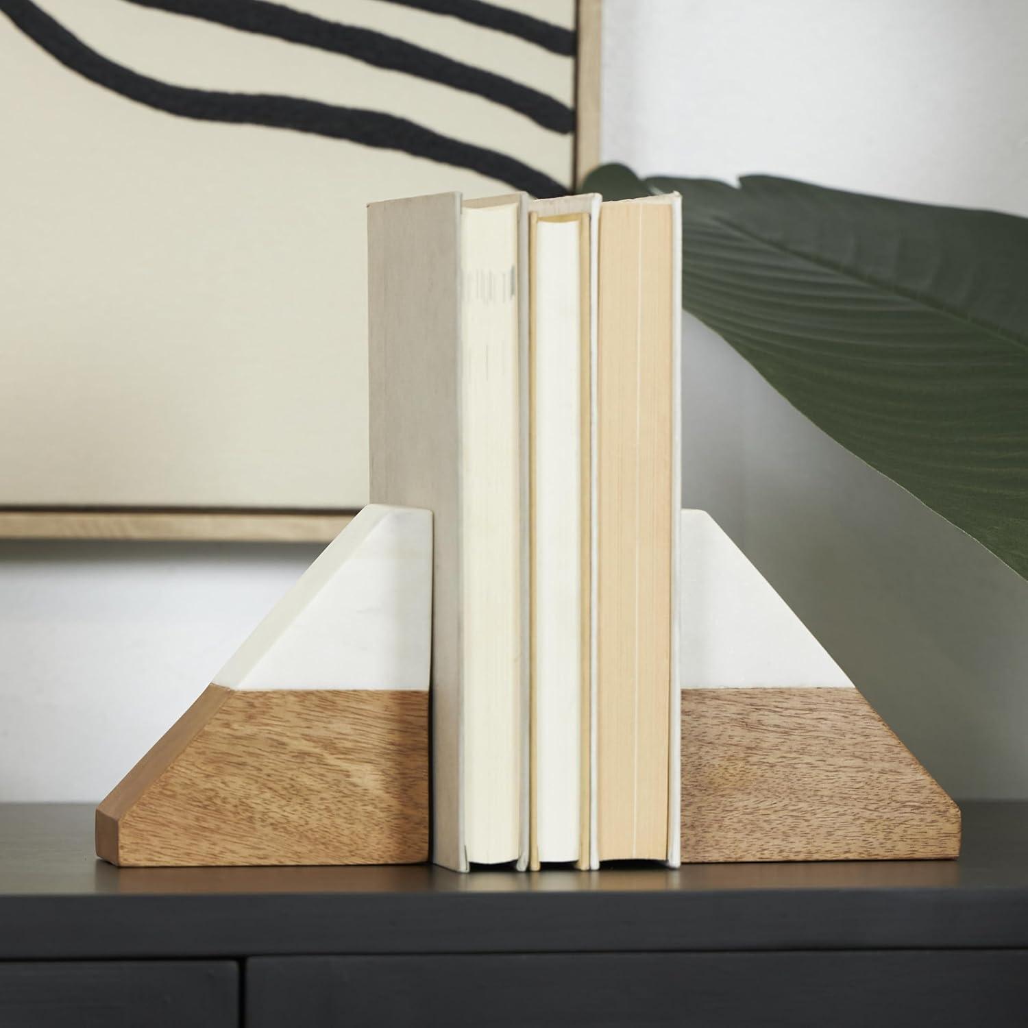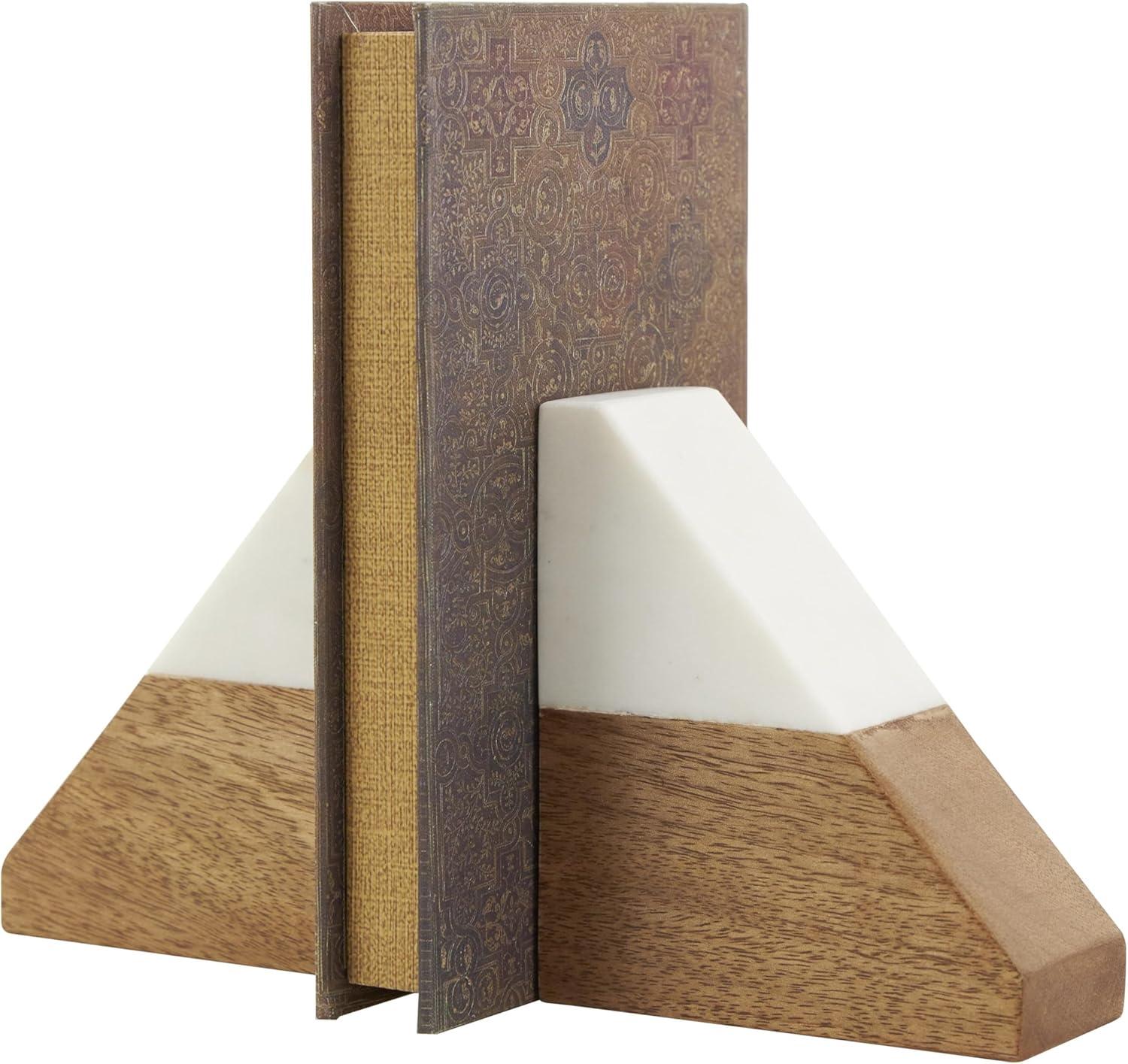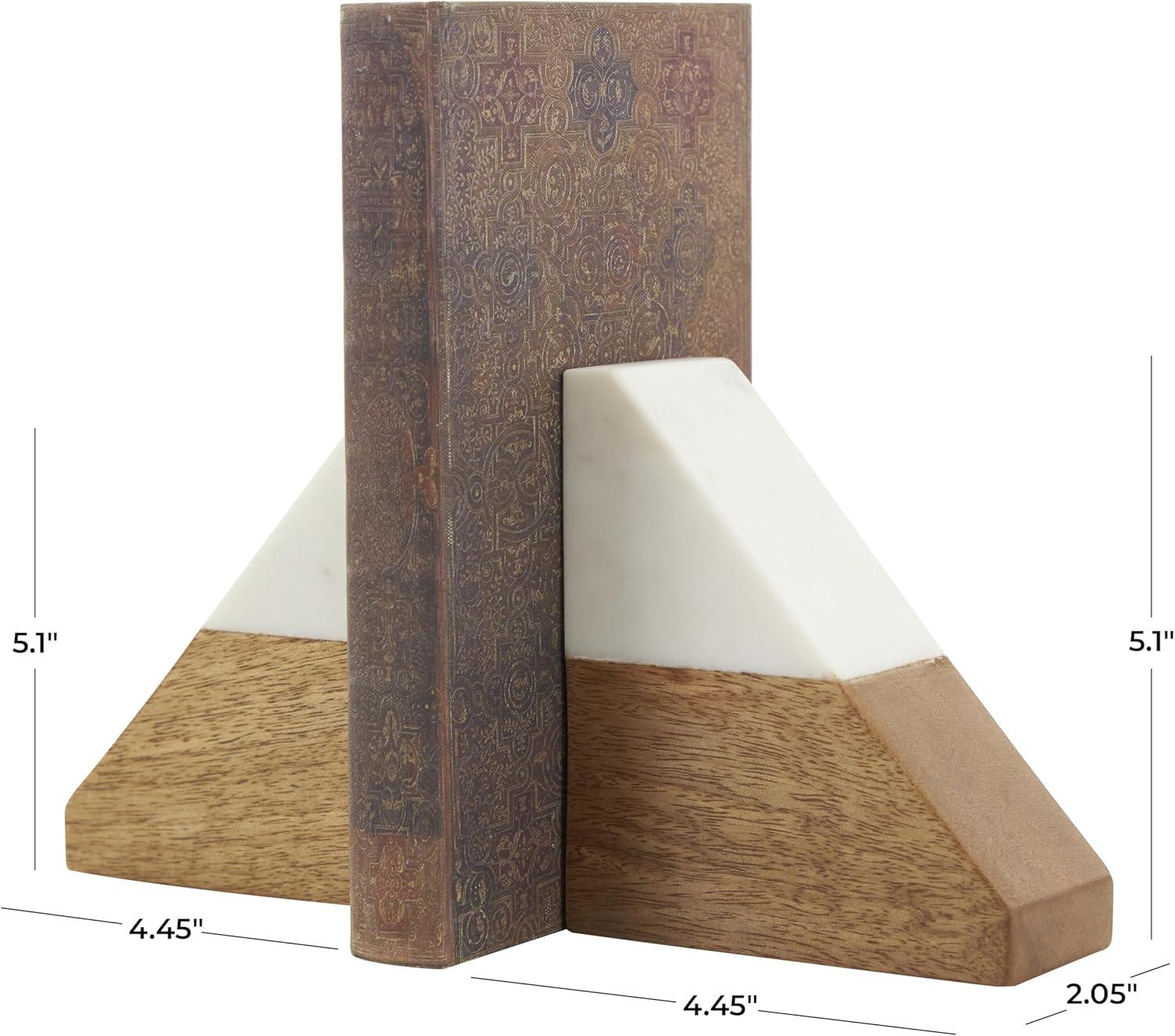 Deco 79 Mango Wood Geometric Decorative Bookends Arched 5 lbs Non Skid Bookends with White Marble Tops, Set of 2 Office Bookends5 W, 5" H, Brown(4"W 5"H)