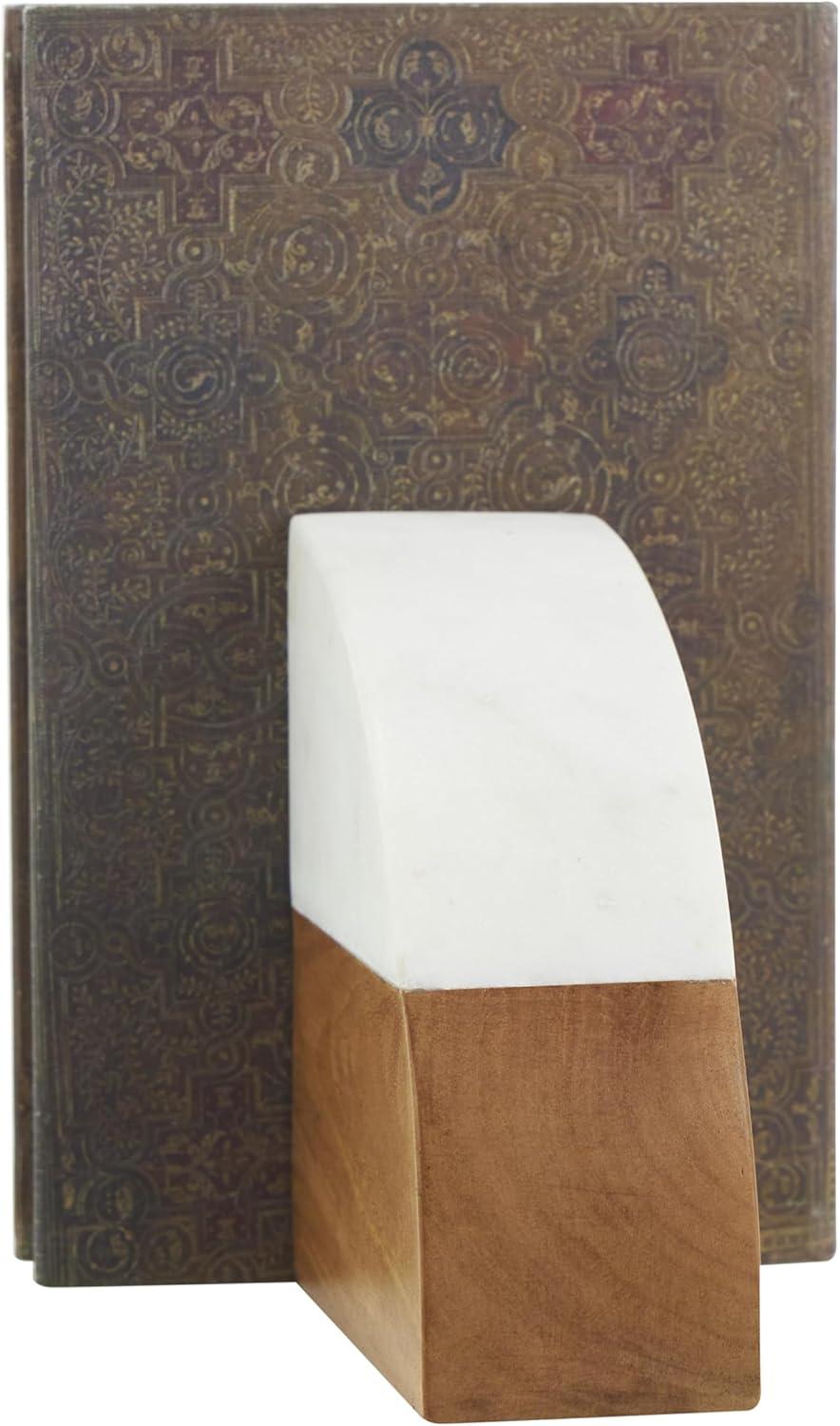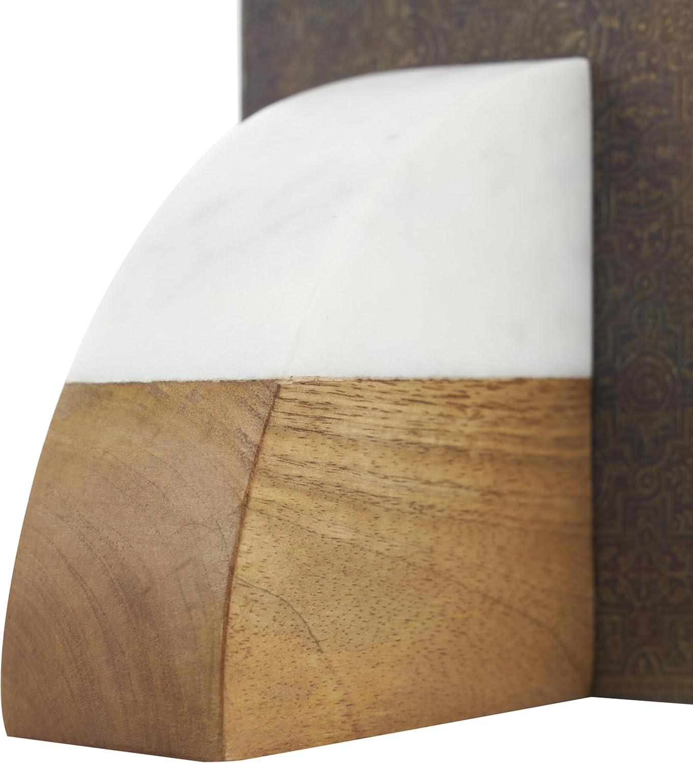 MARBLE BOOKEND FOR SHELF: Crafted from high-quality wood and polished marble, these bookends exhibit a sturdy and durable material that ensures longevity and a timeless aesthetic