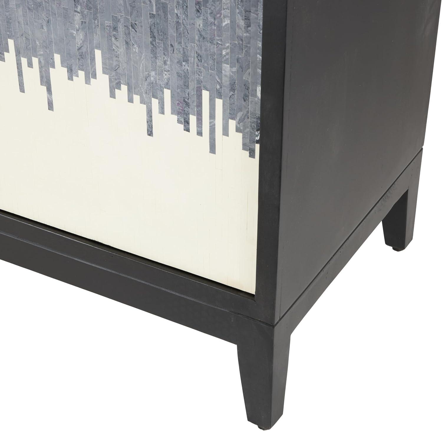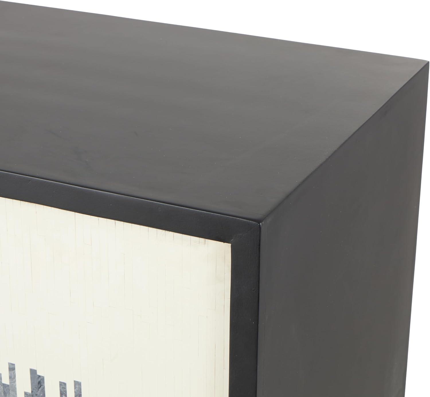Deco 79 Mango Wood Media Credenza Sideboard 3 Door and 3 Shelf Storage Cabinet with White Front and Blue Striped Pattern, Accent Cabinet 60″ x 20″ x 35″, Black