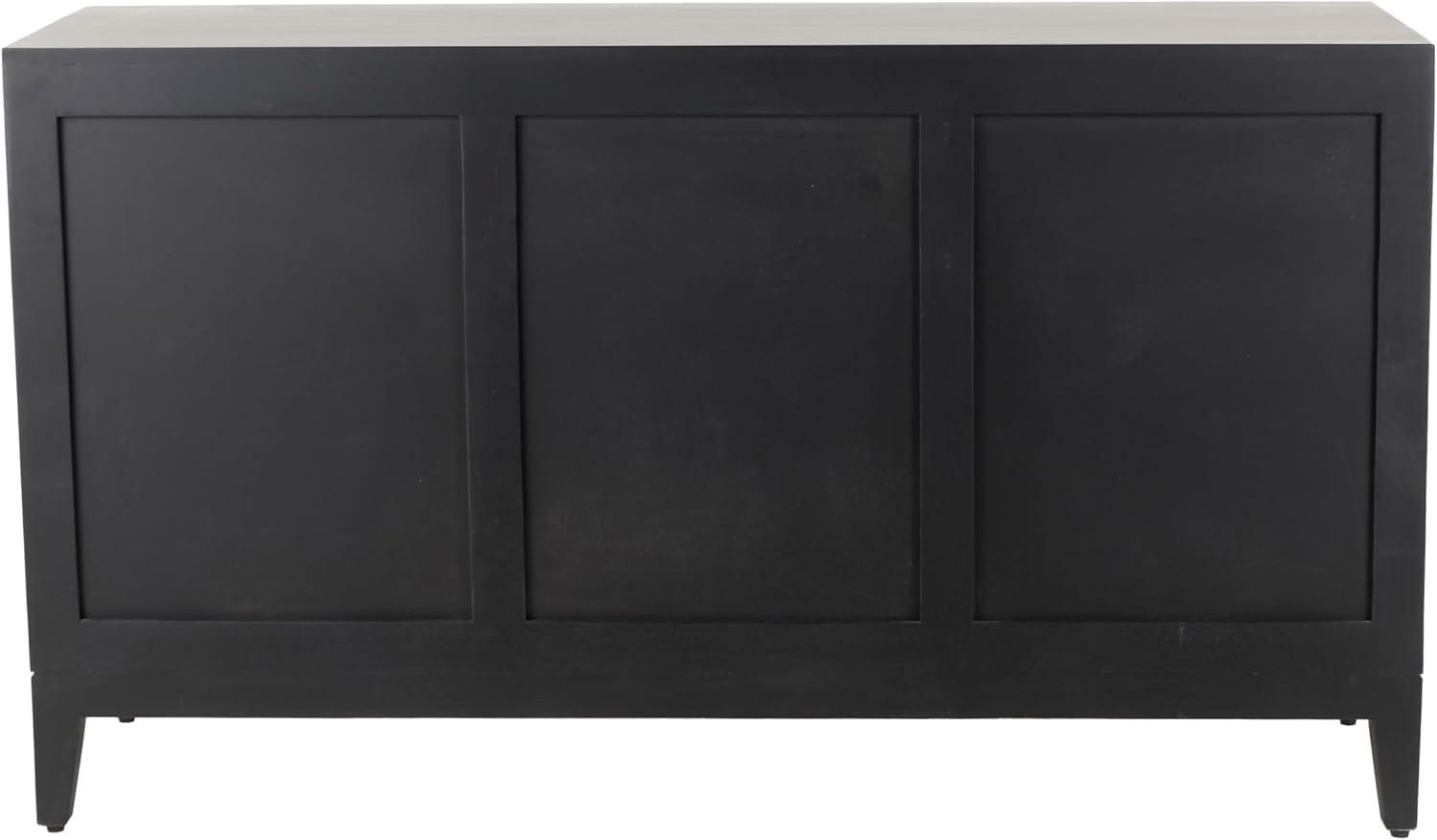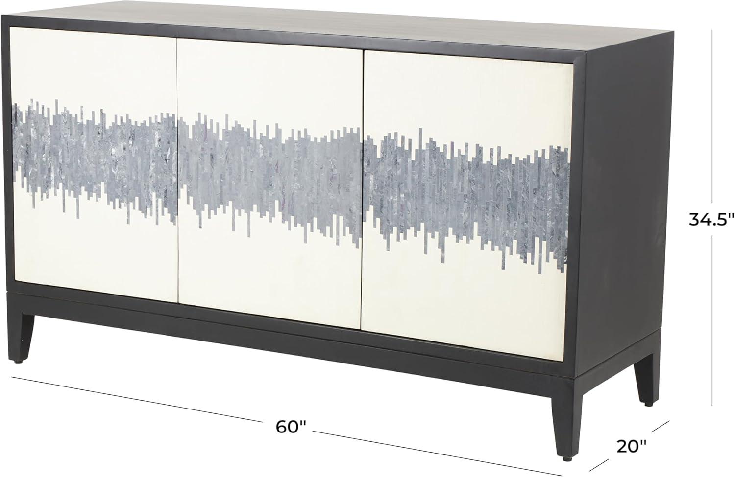 Deco 79 Mango Wood Media Credenza Sideboard 3 Door and 3 Shelf Storage Cabinet with White Front and Blue Striped Pattern, Accent Cabinet 60" x 20" x 35", Black