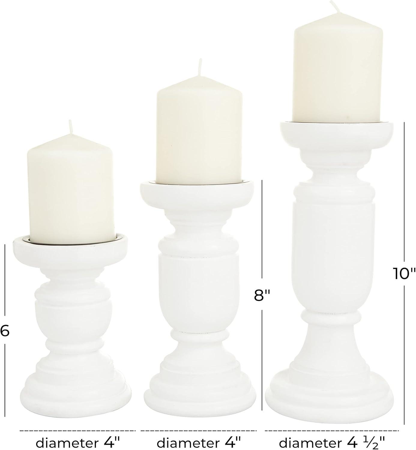 Deco 79 Mango Wood Turned Style Pillar Candle Holder, Set of 3 10", 8", 6"H, White(White)