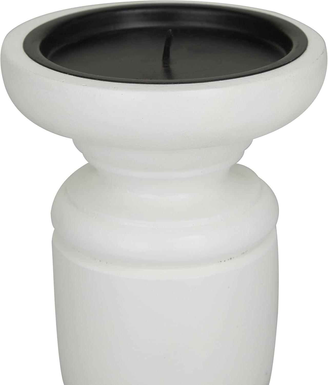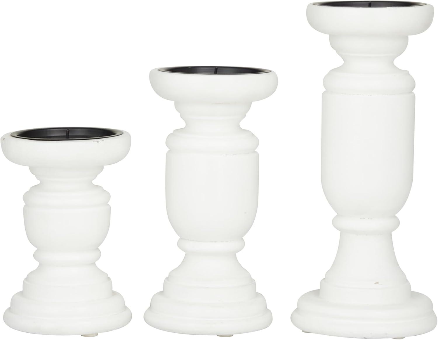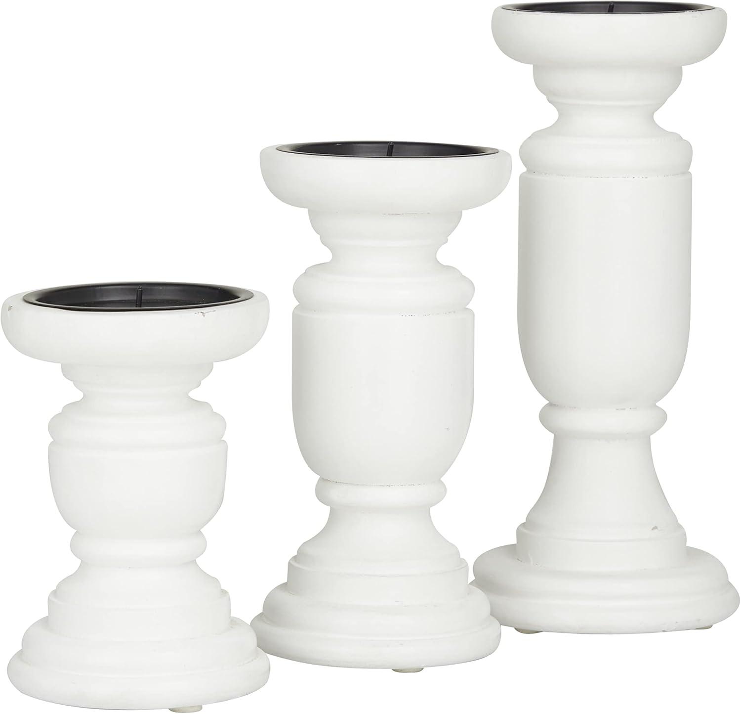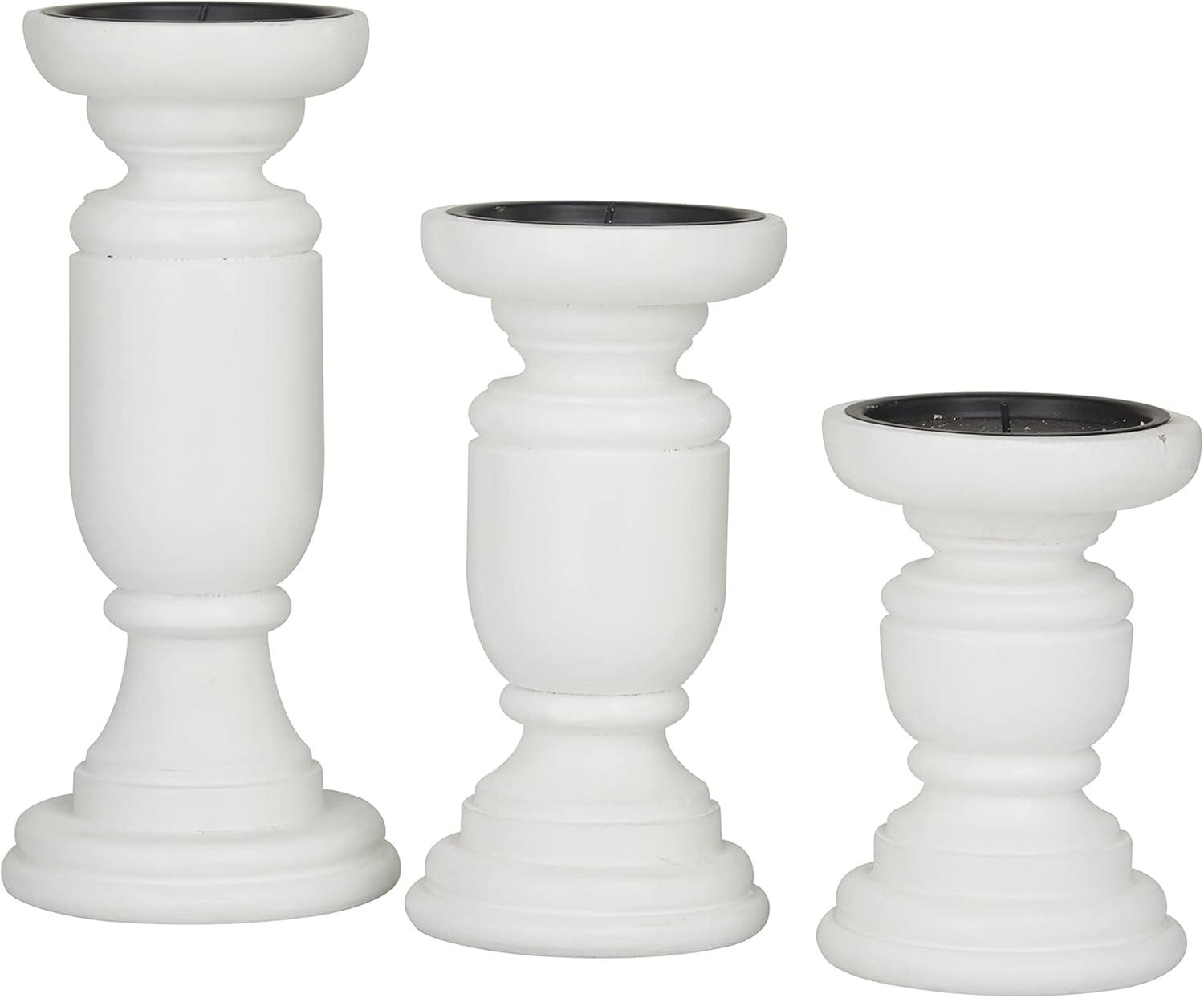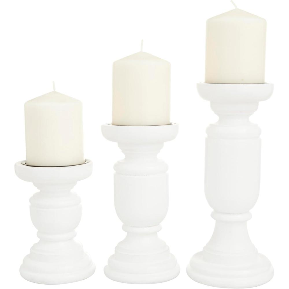 Deco 79 Mango Wood Turned Style Pillar Candle Holder, Set of 3 10″, 8″, 6″H, White(White)
