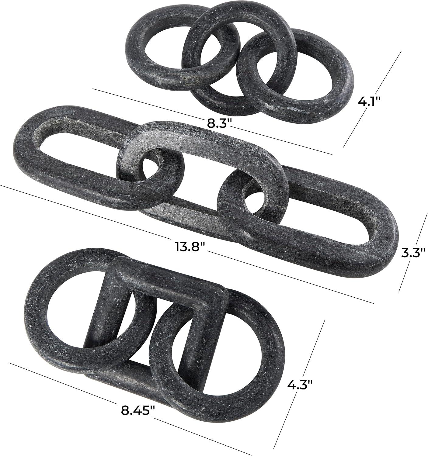 Deco 79 Marble Chain Handmade Decorative Sculpture Geometric 3 Link Home Decor Statues with Various Shapes, Set of 3 Accent Figurines 9", 9", 13"W, Gray(Black)