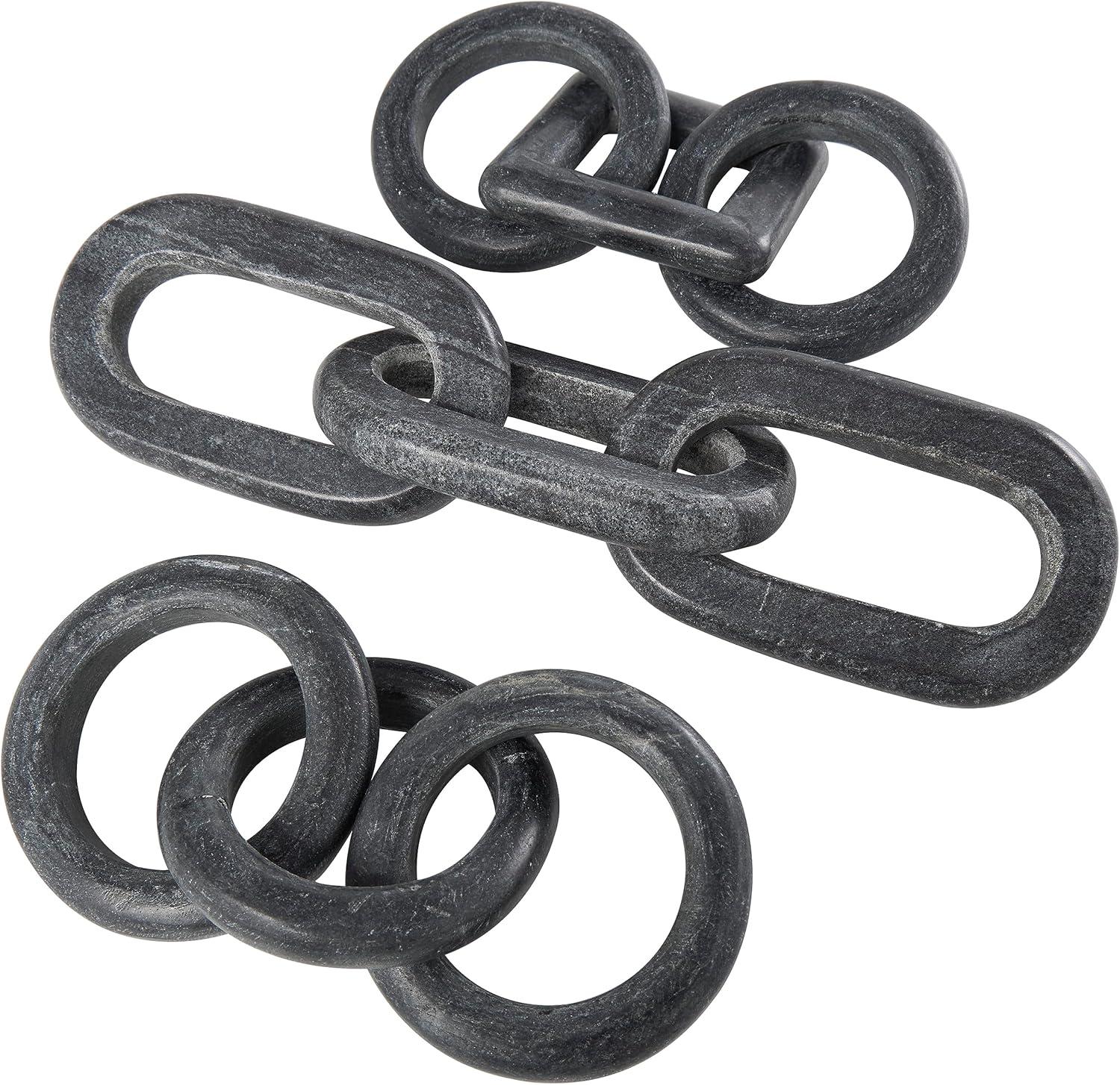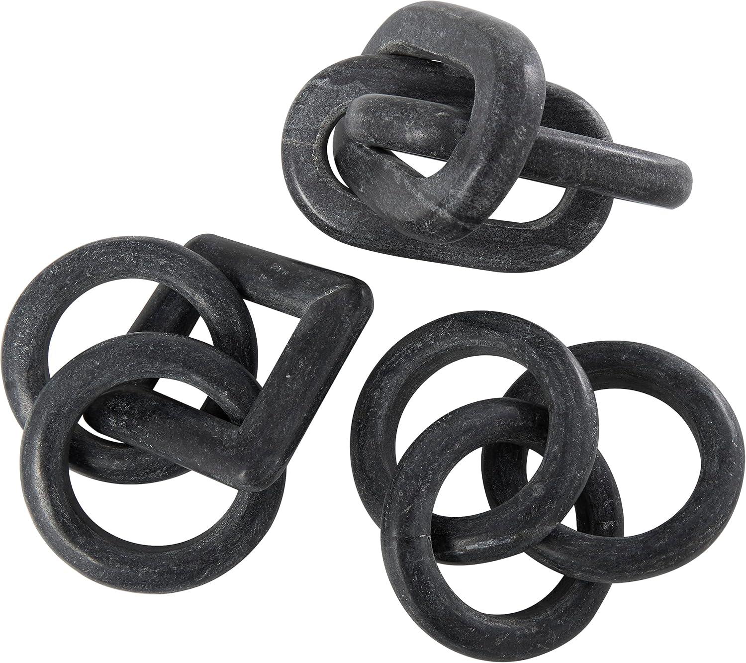 Deco 79 Marble Chain Handmade Decorative Sculpture Geometric 3 Link Home Decor Statues with Various Shapes, Set of 3 Accent Figurines 9″, 9″, 13″W, Gray(Black)