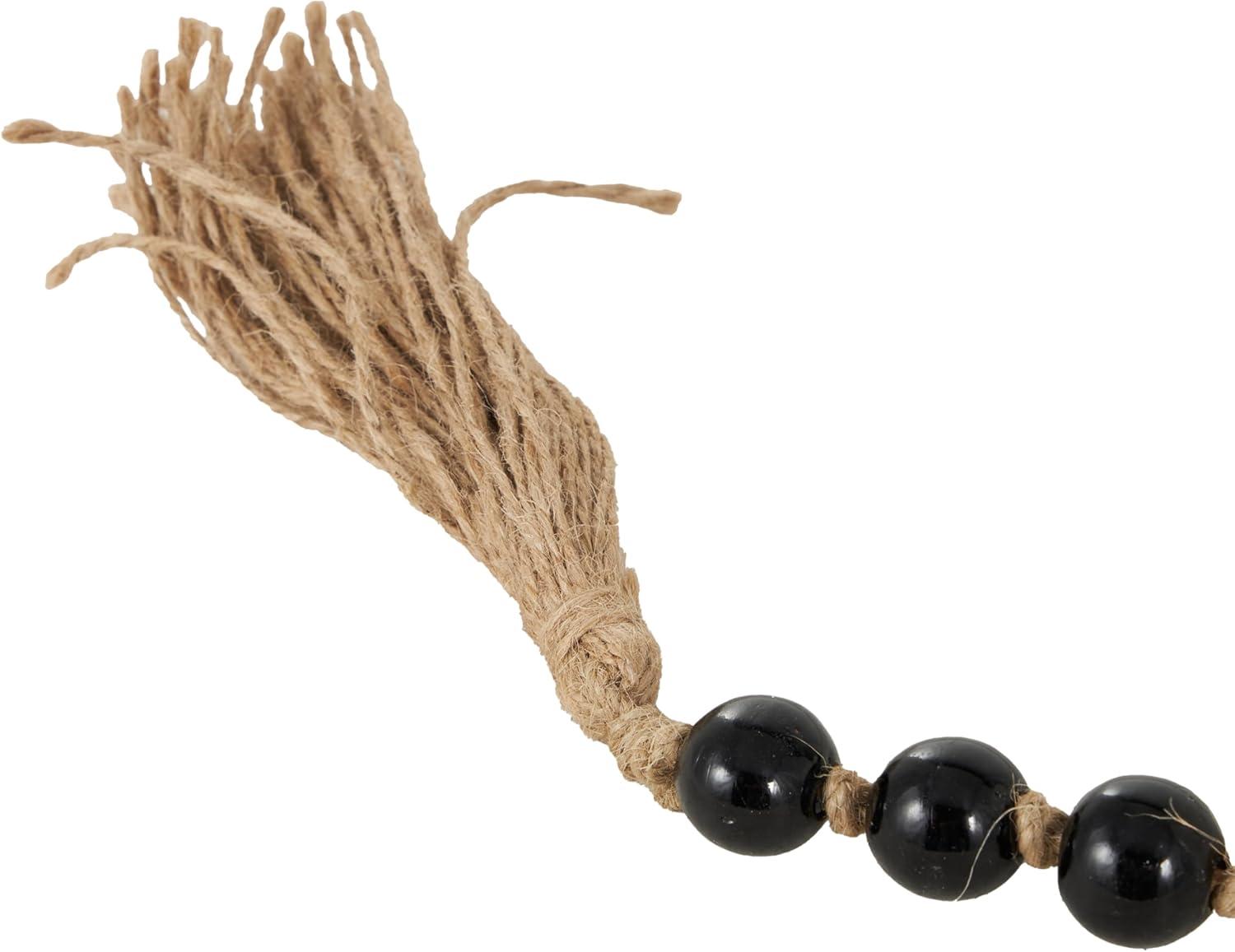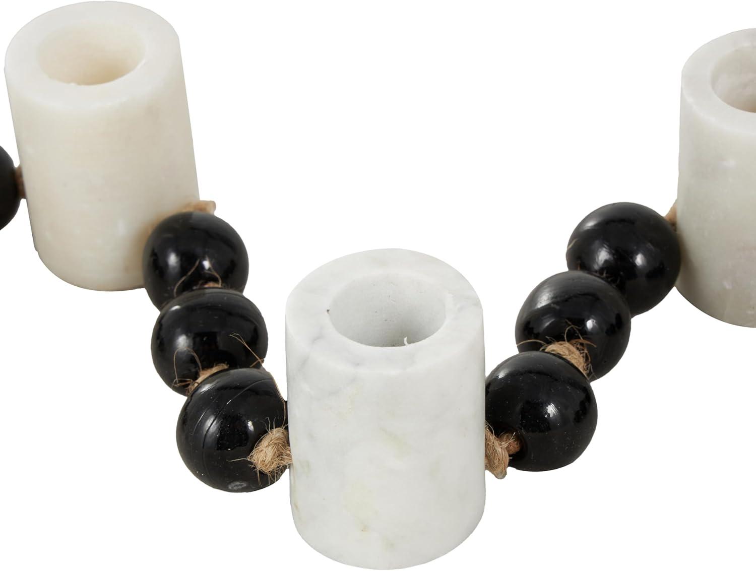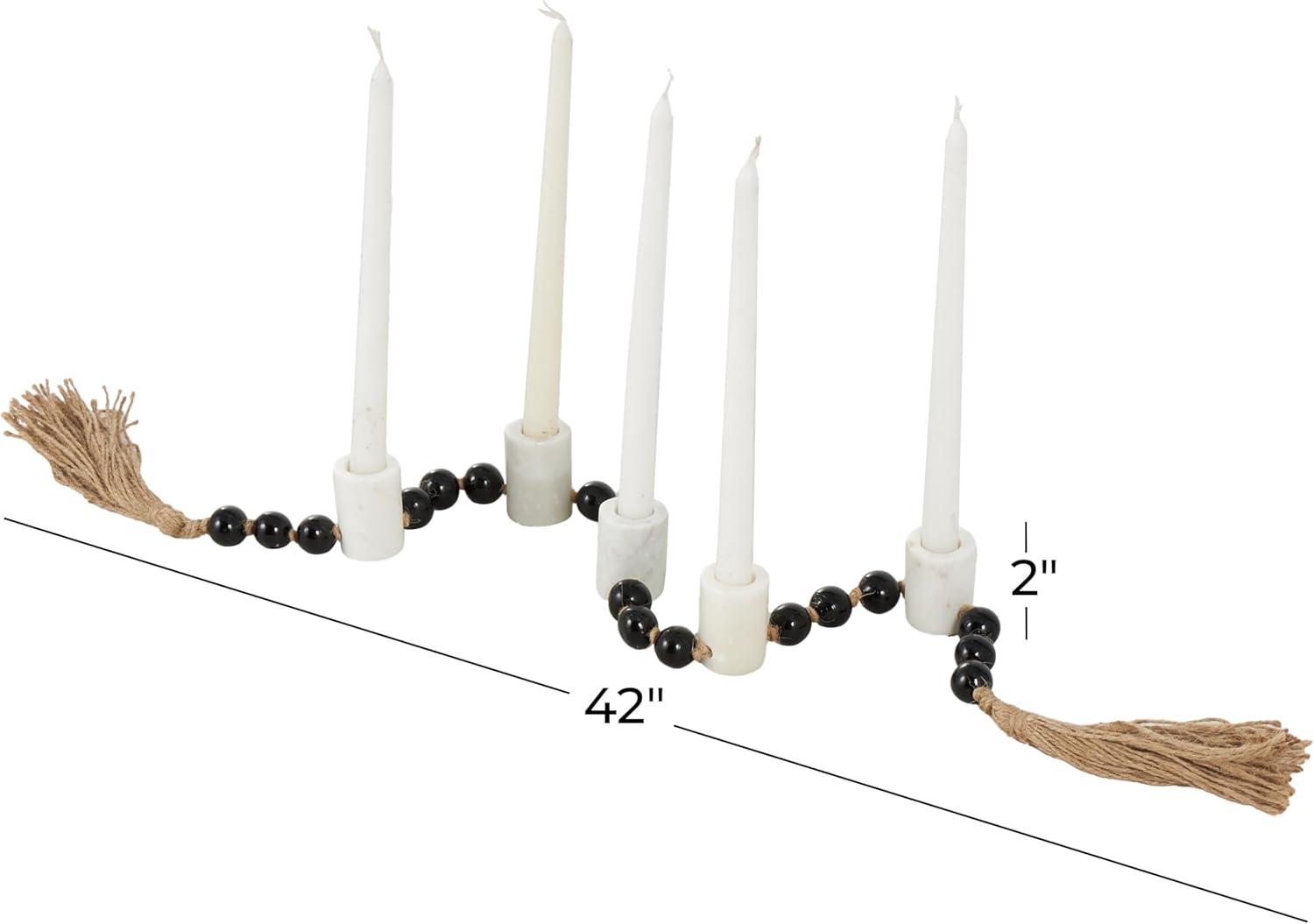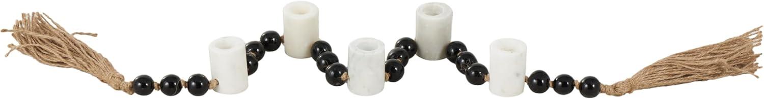 WHITE AND BLACK CANDLE HOLDER FOR CENTERPIECE: The round candle stand holder features a matte white finish with black beads and a brown tassel that exudes elegance